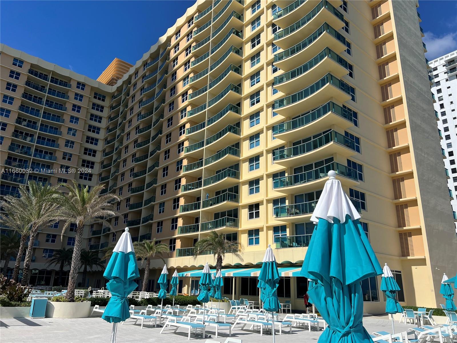 Great potential in this 1-bed, 1.5-bath unit with stunning ocean views in Hollywood Beach. This condo features tile floors throughout, spacious balcony, combo washer/dryer in the unit, large walking closet, convenient storage on the same floor. This Hollywood Beach building with resort-style amenities, includes 24/7 concierge, heated pool, jacuzzi, fitness center, beach service with chairs and umbrellas, café, convenience store, aerobic room, and nail salon. Pet-friendly for 2 pets up to 40 lbs. Prime location near shopping, dining, and the soon-to-open Publix, with easy access to the Hollywood Beach Boardwalk, Aventura Mall, and Fort Lauderdale Airport. Perfect for investors with short-term rental options or as an ideal vacation home.
