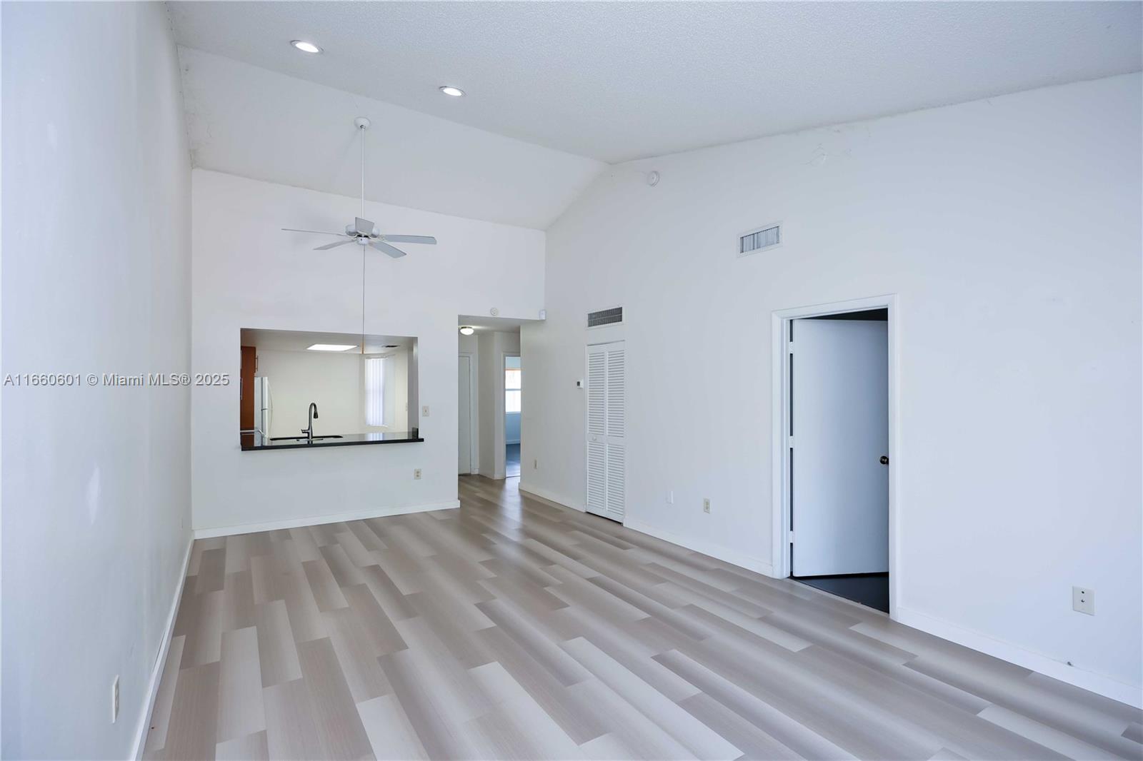 Spacious 2-bed, 2-bath apartment on the second floor with vaulted ceilings, creating a roomy and open feel. Located in a gated community, walking distance to Pembroke Lakes Mall, shopping centers, and elementary school. Features an updated kitchen with granite countertops, laminate flooring, in-unit washer and dryer, and 2 assigned parking spaces. Community amenities include a clubhouse, children’s playground, pool, and tennis court. View the community pool and playground from your balcony. Ideal for comfortable, convenient living!