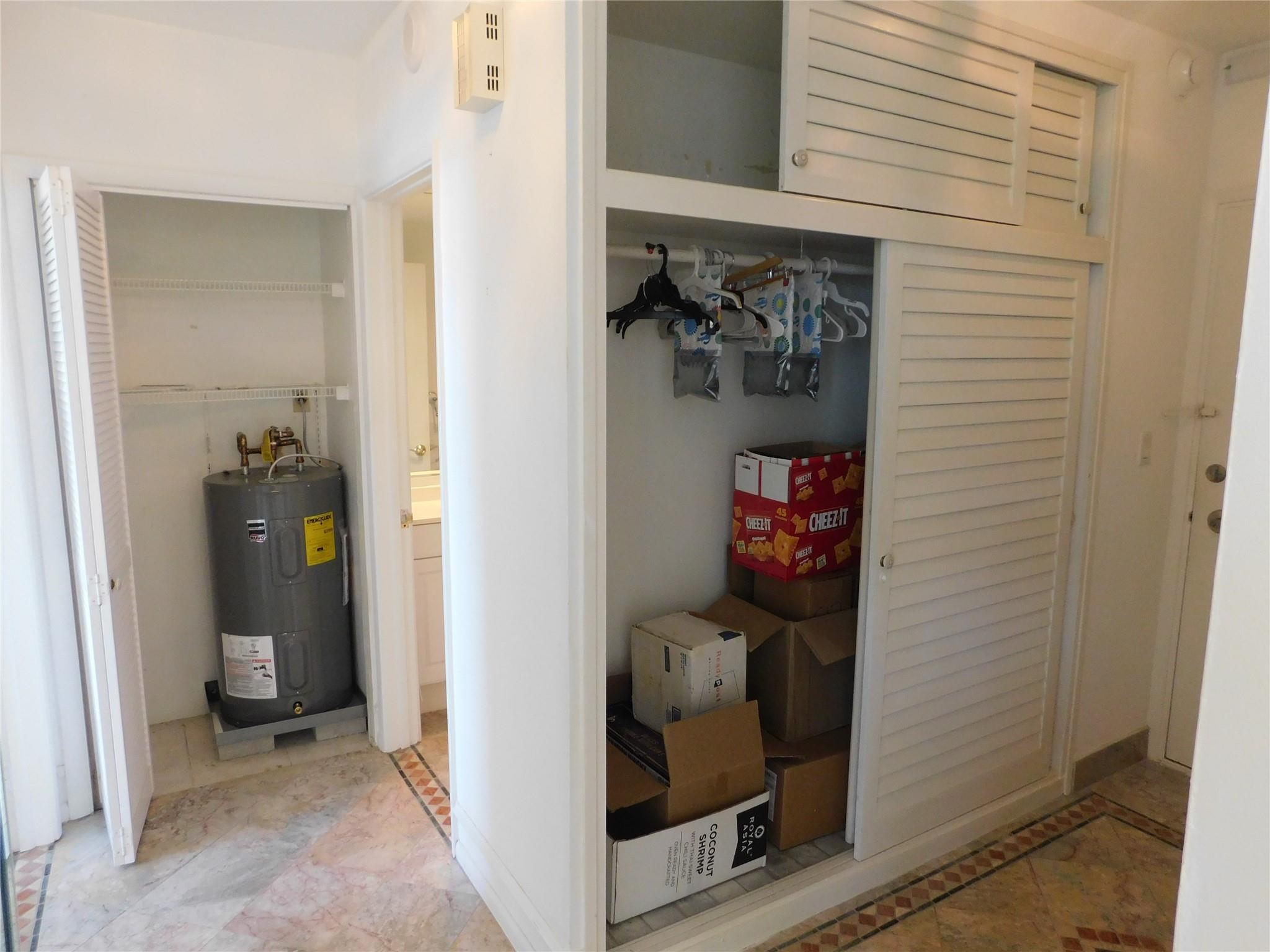 Marble floors throughout. A 10-minute walk to the public beach at Earl Lifshey Ocean Park. The combo of easy walking to a beach (that also has paid parking and two free handicap parking spots) and of a peaceful pool on the intracoastal, contributes a lot to a great lifestyle. Downstairs, the 60 ft by 30 ft pool on the intracoastal is heated at 88F=31C for about 6 months; during Summer it's probably colder than 88F, but it's still slightly heated - water doesn't feel cold in any season. Nice gym and library rooms. The meeting/activities/card room was just remodeled. Shuffleboard game.