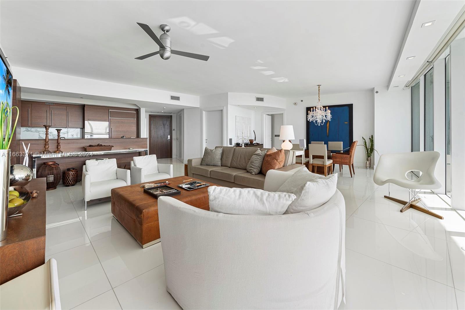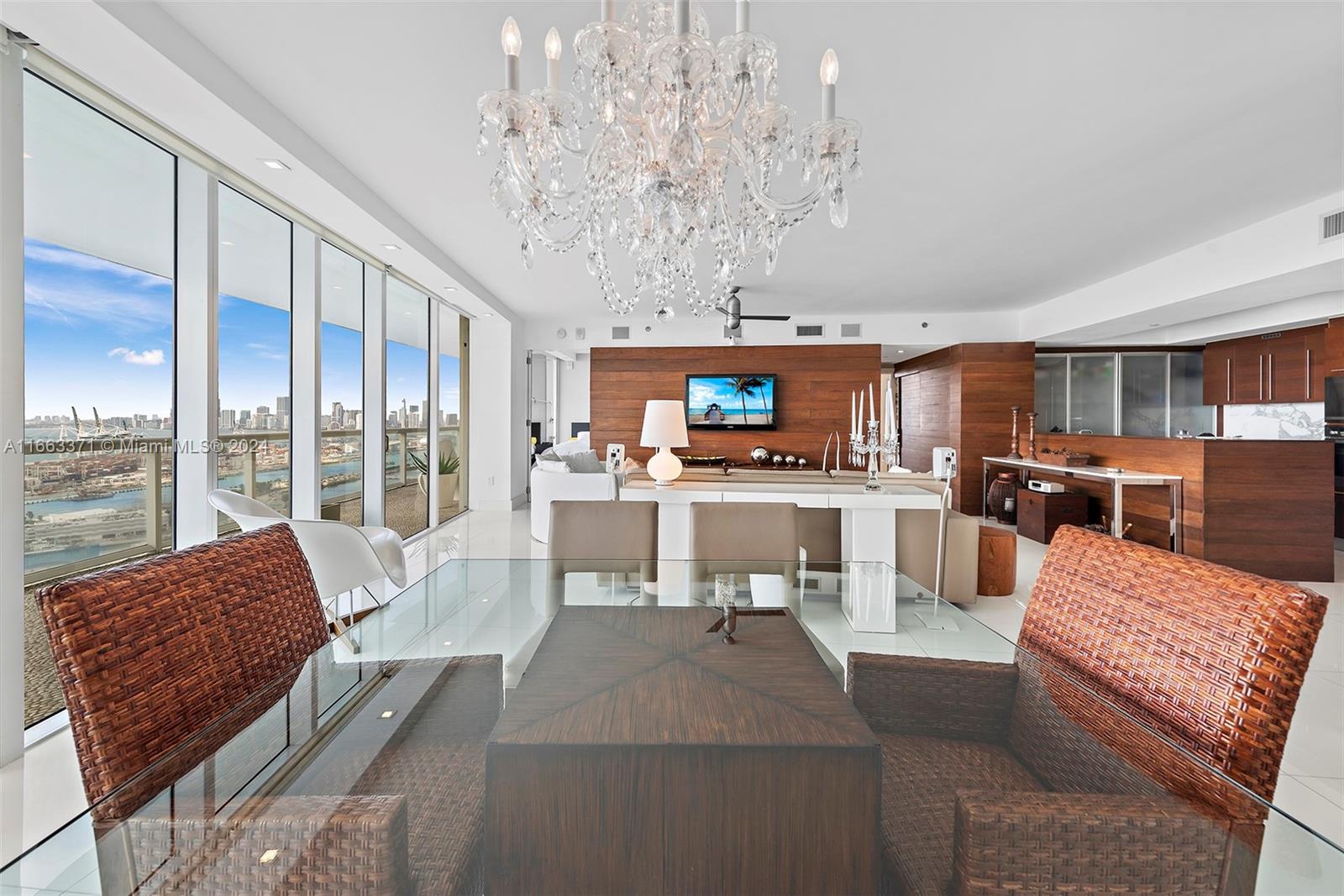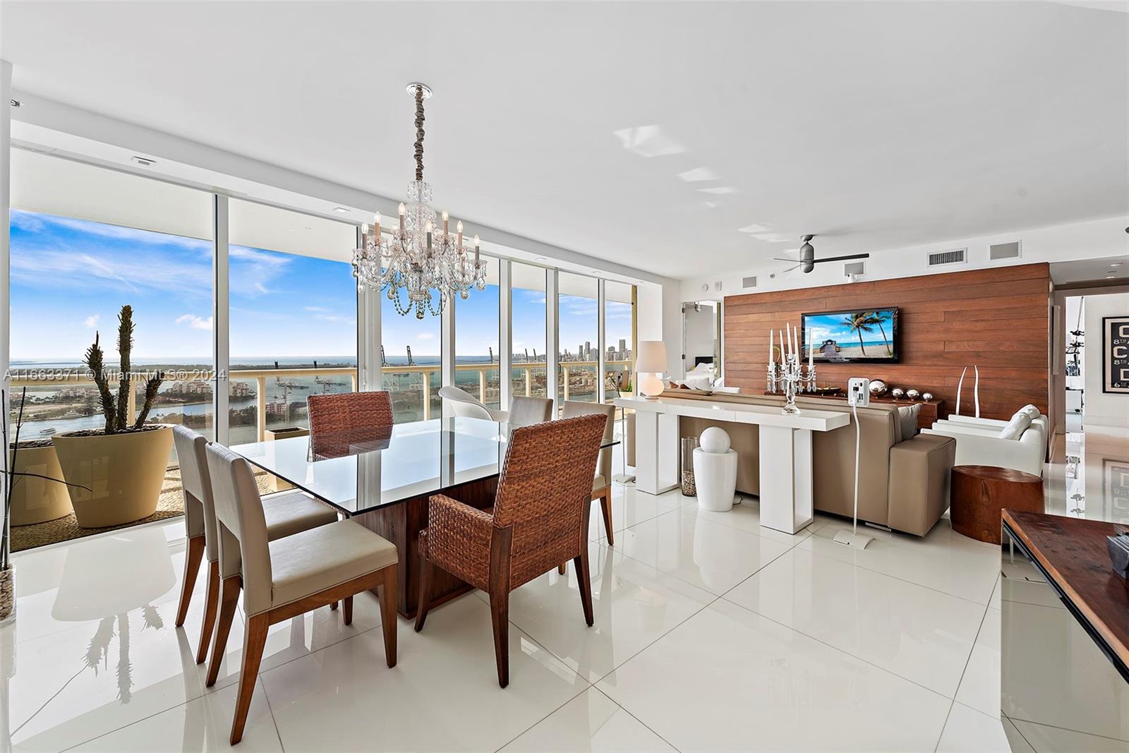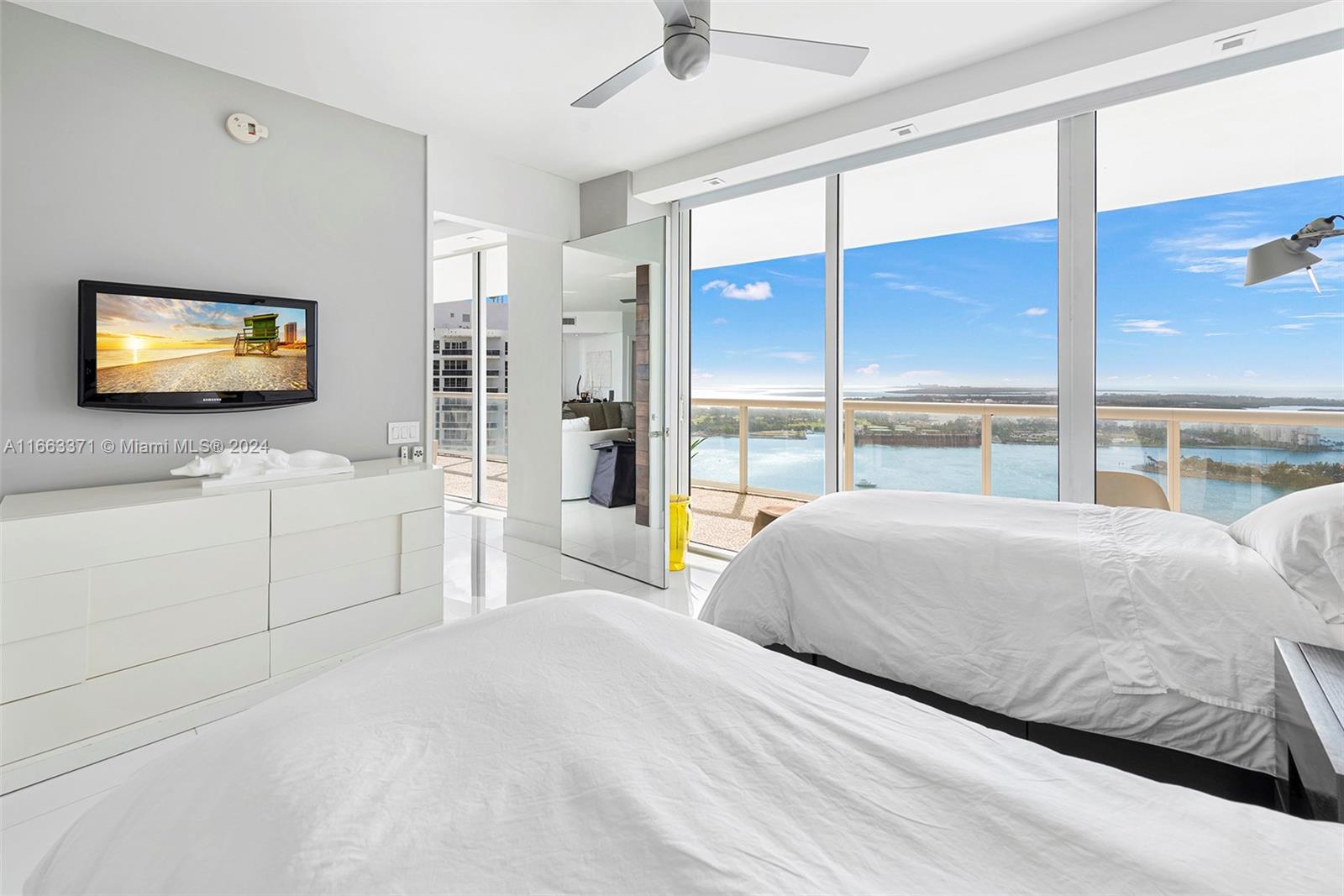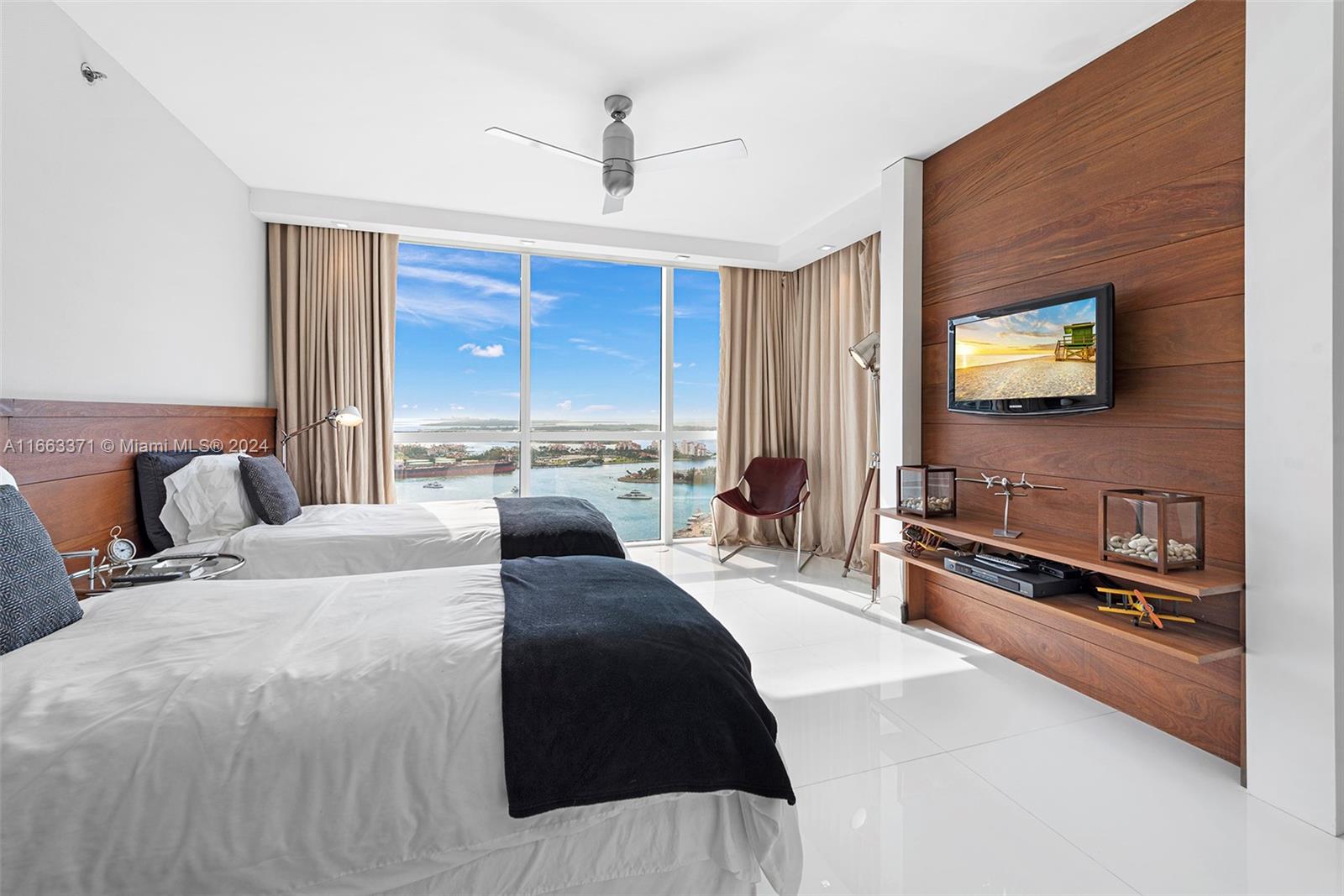 A must see unique unit! This professionally furnished high floor corner unit has it all. Located at of one of the most sought for buildings in the "South of 5th" neighborhood, with an oversized wrap around balcony, floor to ceiling windows and sliding doors, that allow for panoramic views of the ocean and of the Miami skyline. Designed by Phillippe Starck, the amenities are gorgeous, including a world class gym & spa, 2 pools, library, massage room, and charming outdoor restaurant/cafe. Unit has white marble flooring through out, solid wood TV wall in the living room, motorized screens and roller shade blackouts and top of the line appliances. Walking distance to the beach, to shops, and lots of cafes and restaurants. Close to South Point Park, and 15 mins to Miami International Airport.