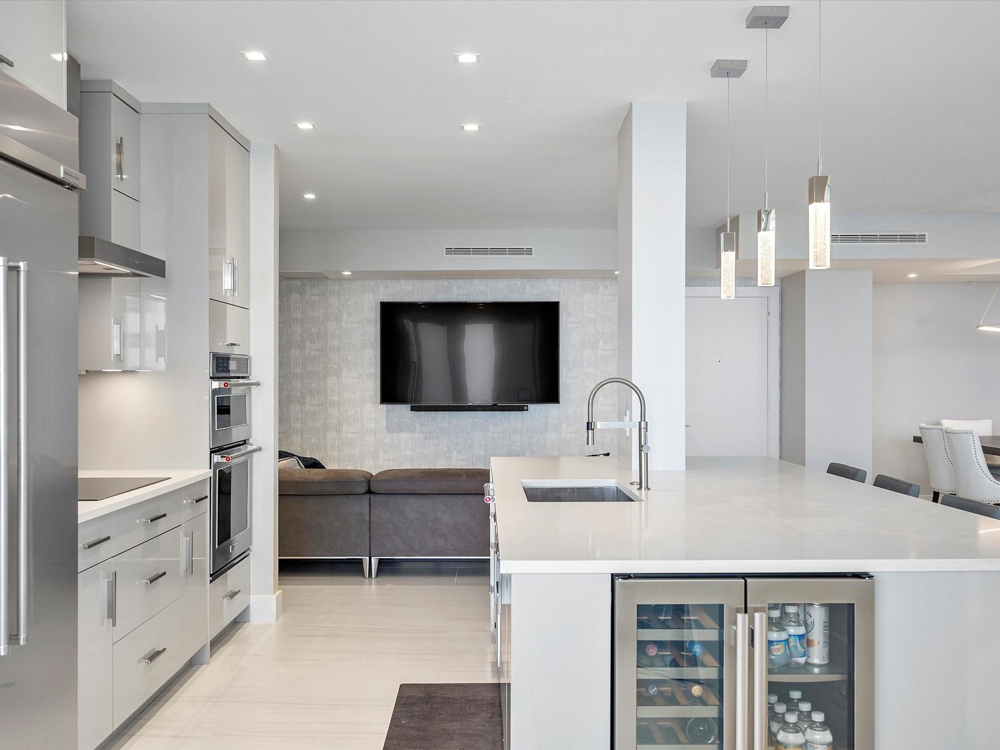 This fully renovated condo boasts top-of-the-line features and gorgeous direct ocean views. Spacious open kitchen with eating area, wine fridge, induction range, convection oven, and ample counter space. The master bath been redesigned with large shower and a separate enclosed toilet. 2nd bedroom has ocean views, and renovated 2nd bathroom includes a tub. New den with oversized TV and large seating area. Formal dining room, raised ceilings, high-impact glass, and remote-controlled window treatments. New laundry room with sink. L'Hermitage, a premier luxury resort-like condominium complex that spans over 10 acres of oceanfront property and includes amenities such as tennis courts, fitness center, secured complex, sanas/steam rooms, a beach with service, a pool deck restaurant. Pets are OK.