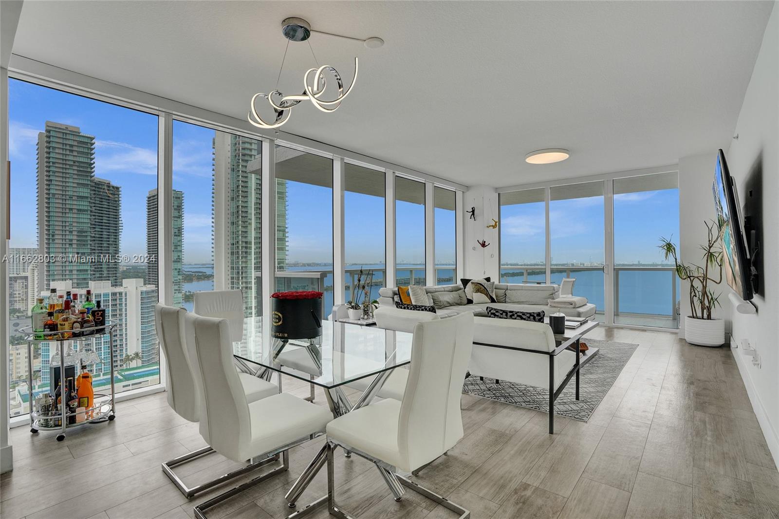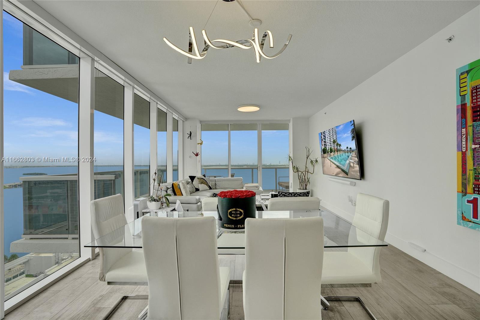 This RARELY AVAILABLE and highly sought after Northeast corner line unit on a high floor is in IMPECCABLE condition. It has a spacious flow through floor plan occupying the entire north side of the building. Two adjacent parking spaces and a storage space are included in the sale. Enjoy BREATHTAKING VIEWS of the Biscayne Bay & Miami Beach skyline from the spacious wrap-around balcony. Floor to ceiling windows provide lots of natural light and allow you to constantly enjoy the MILLION DOLLAR VIEWS! The sellers upgraded this condo beautifully. It features a full smart home system by Brilliant, a built-in butler pantry, LED energy efficient lighting, custom screen shades in the main area & black-out shades in all bedrooms. Maintenance includes water, basic cable & internet. Great amenities!