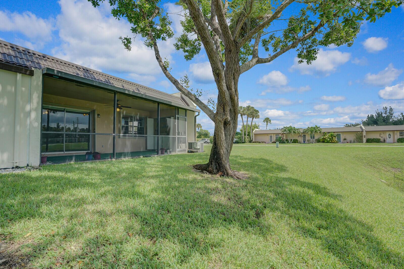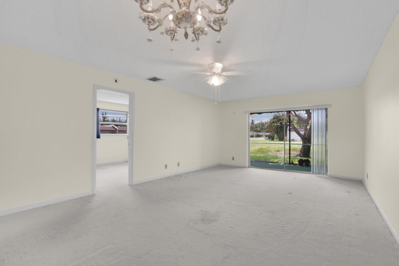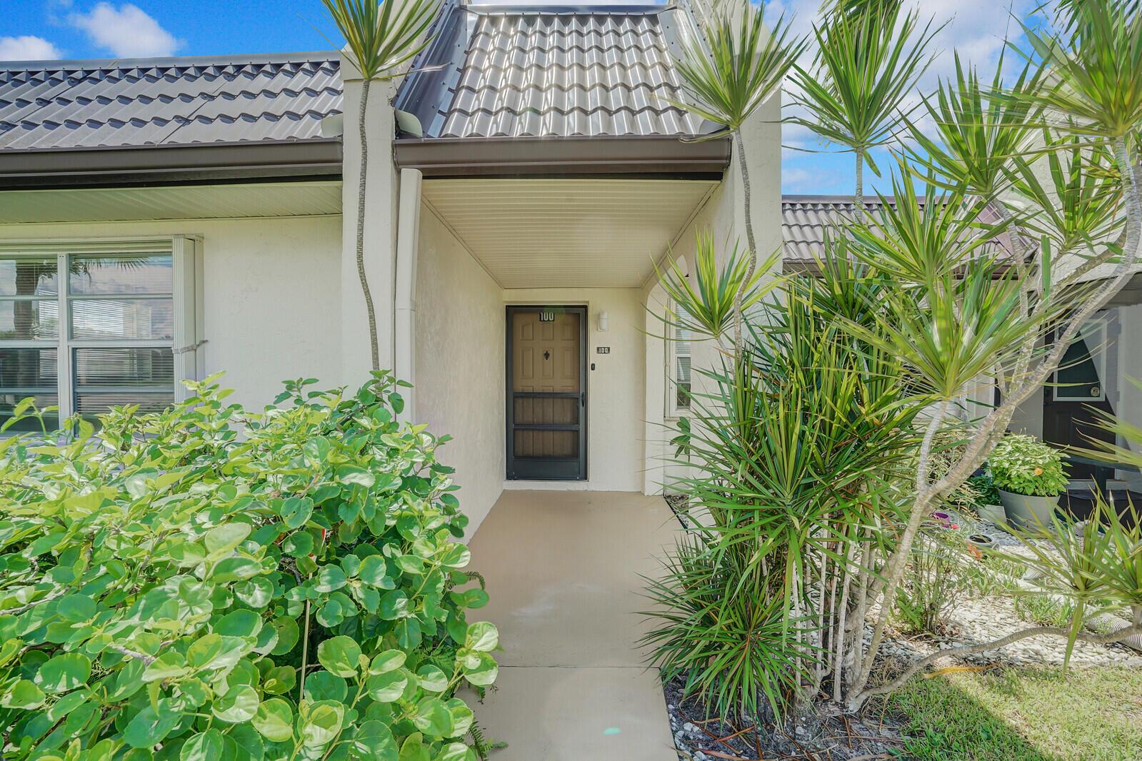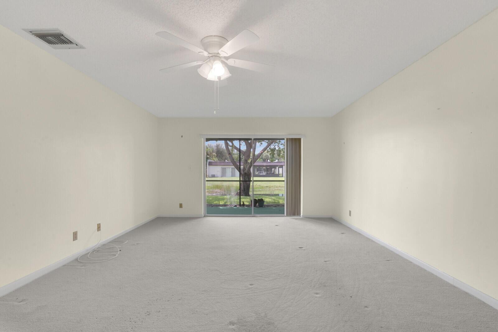 Spacious 2/2 villa with beautiful lake-front views in the desirable 55+ community of Golden Lakes Village. Must sought after corner unit. Come put your finishing touches on this unit and make it your own! Accordion shutters on all windows. Amenities are fantastic which include 24/7 gated security, Olympic size pool, hot tub, tennis, pickleball, shuffleboard, cafe, billiards room, bocce, business center, meeting room, card/game room, library, gym, grand clubhouse with auditorium/stage and social director scheduling shows and social events. There is even an additional pool on Lake Rebecca Dr. Great location close to shopping, turnpike, restaurants and airport. HOA includes water, cable, internet. 1 pet allowed.