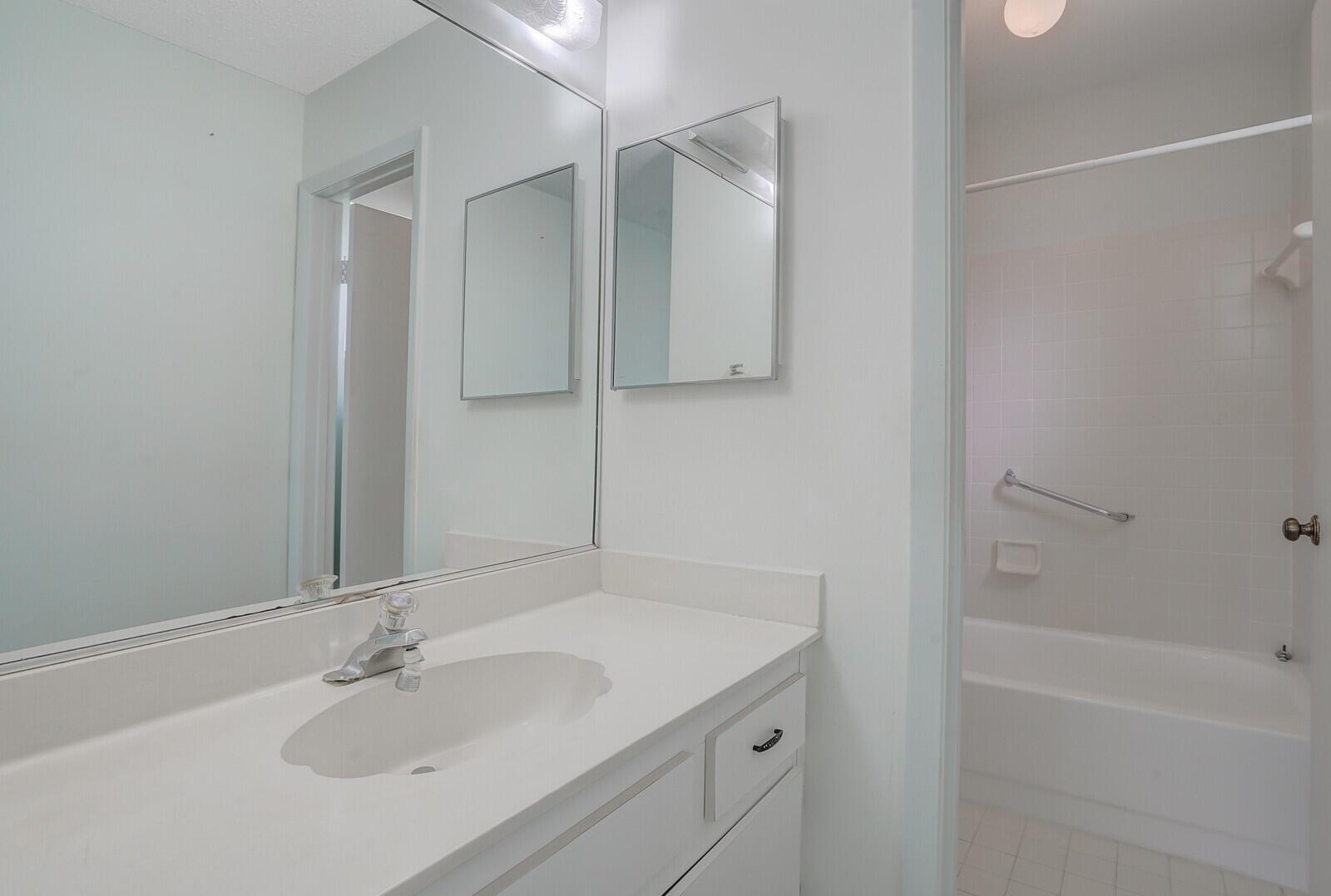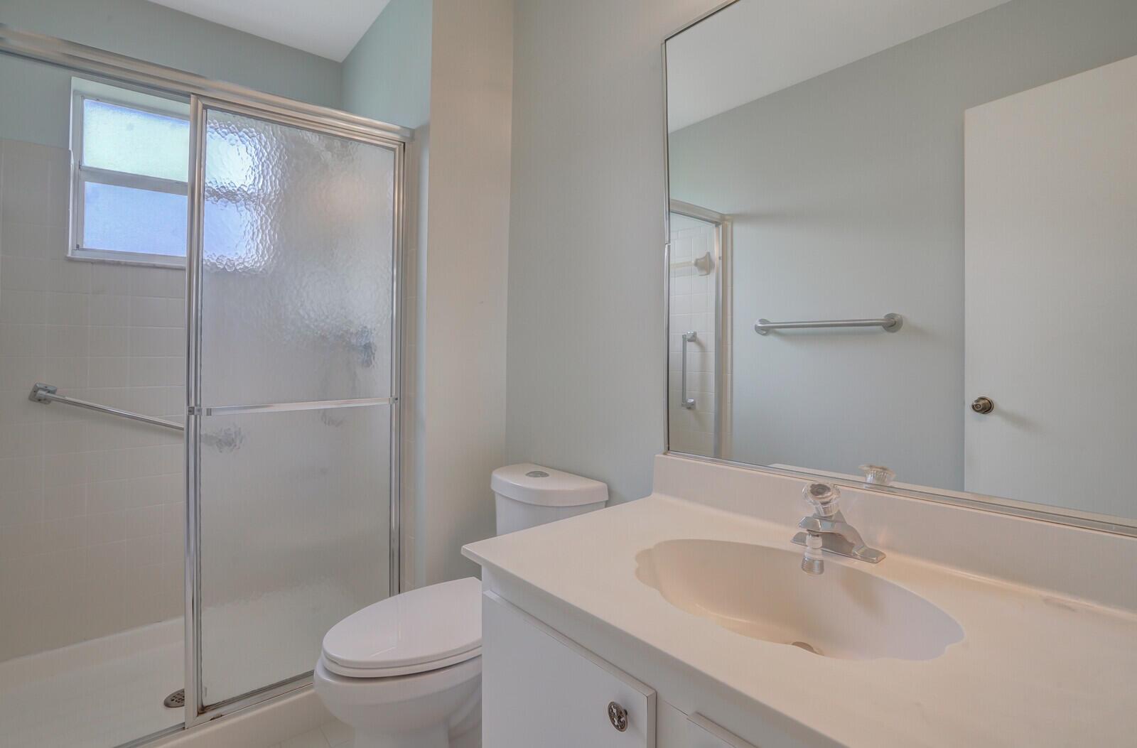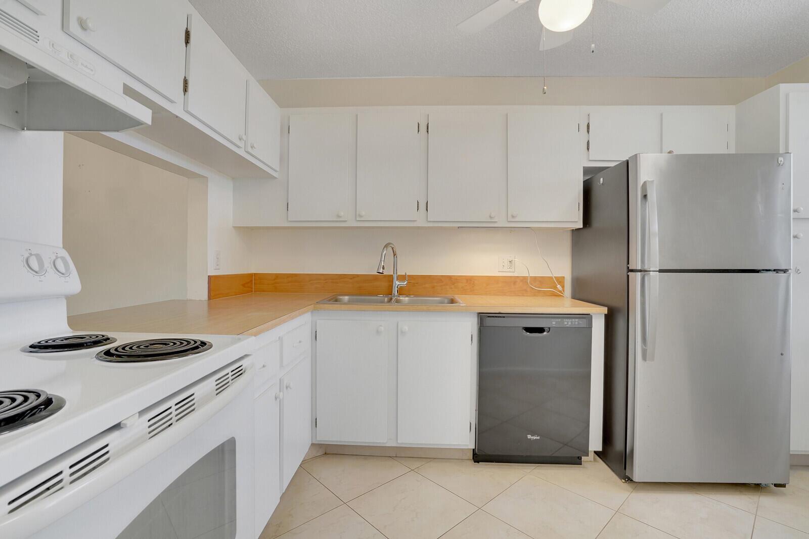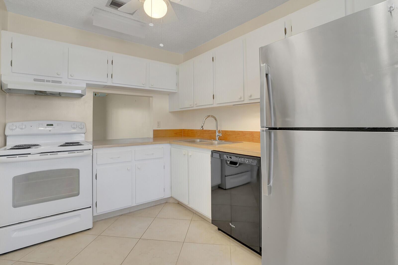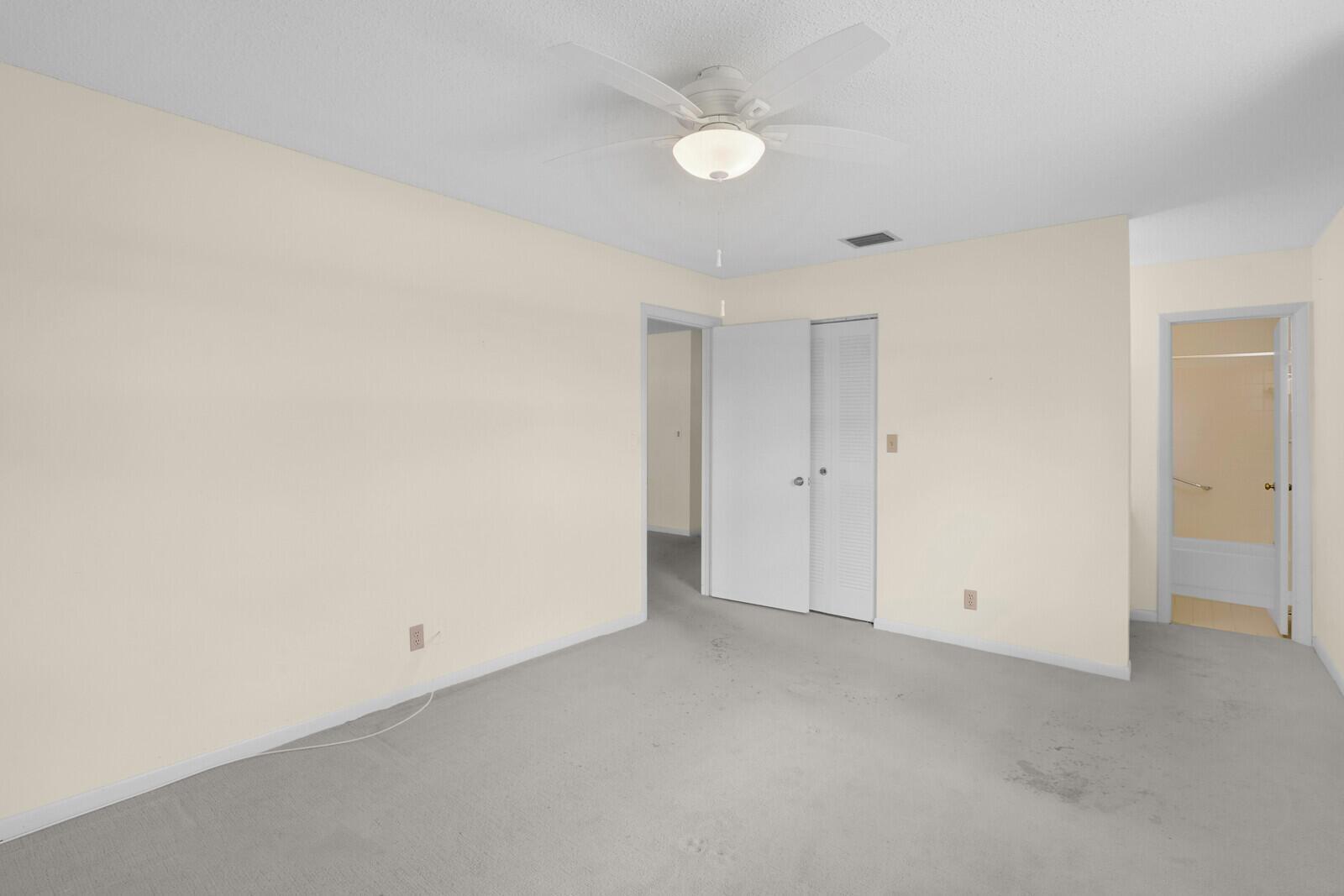 Spacious 2/2 villa with beautiful lake-front views in the desirable 55+ community of Golden Lakes Village. Must sought after corner unit. Come put your finishing touches on this unit and make it your own! Accordion shutters on all windows. Amenities are fantastic which include 24/7 gated security, Olympic size pool, hot tub, tennis, pickleball, shuffleboard, cafe, billiards room, bocce, business center, meeting room, card/game room, library, gym, grand clubhouse with auditorium/stage and social director scheduling shows and social events. There is even an additional pool on Lake Rebecca Dr. Great location close to shopping, turnpike, restaurants and airport. HOA includes water, cable, internet. 1 pet allowed.