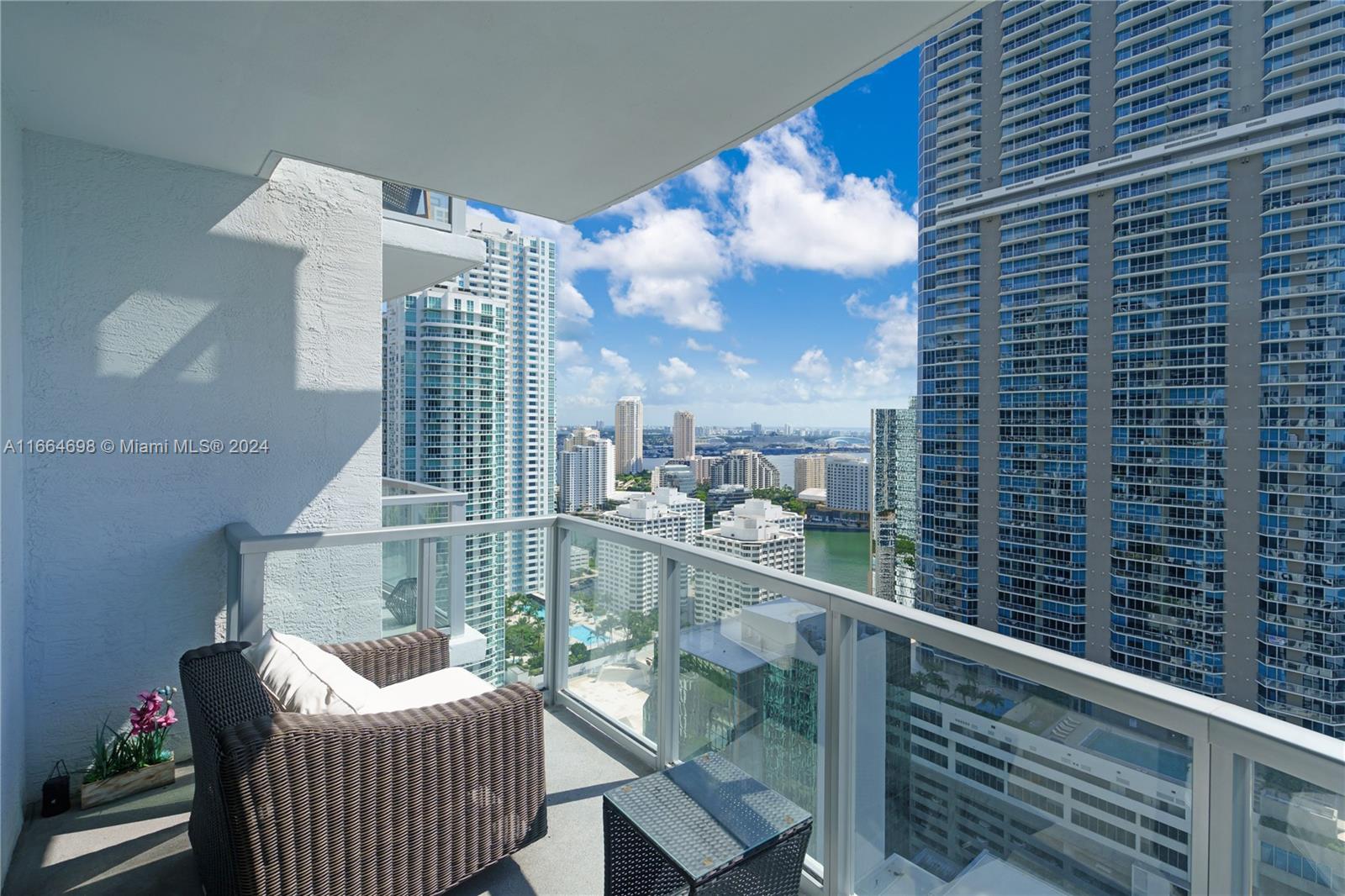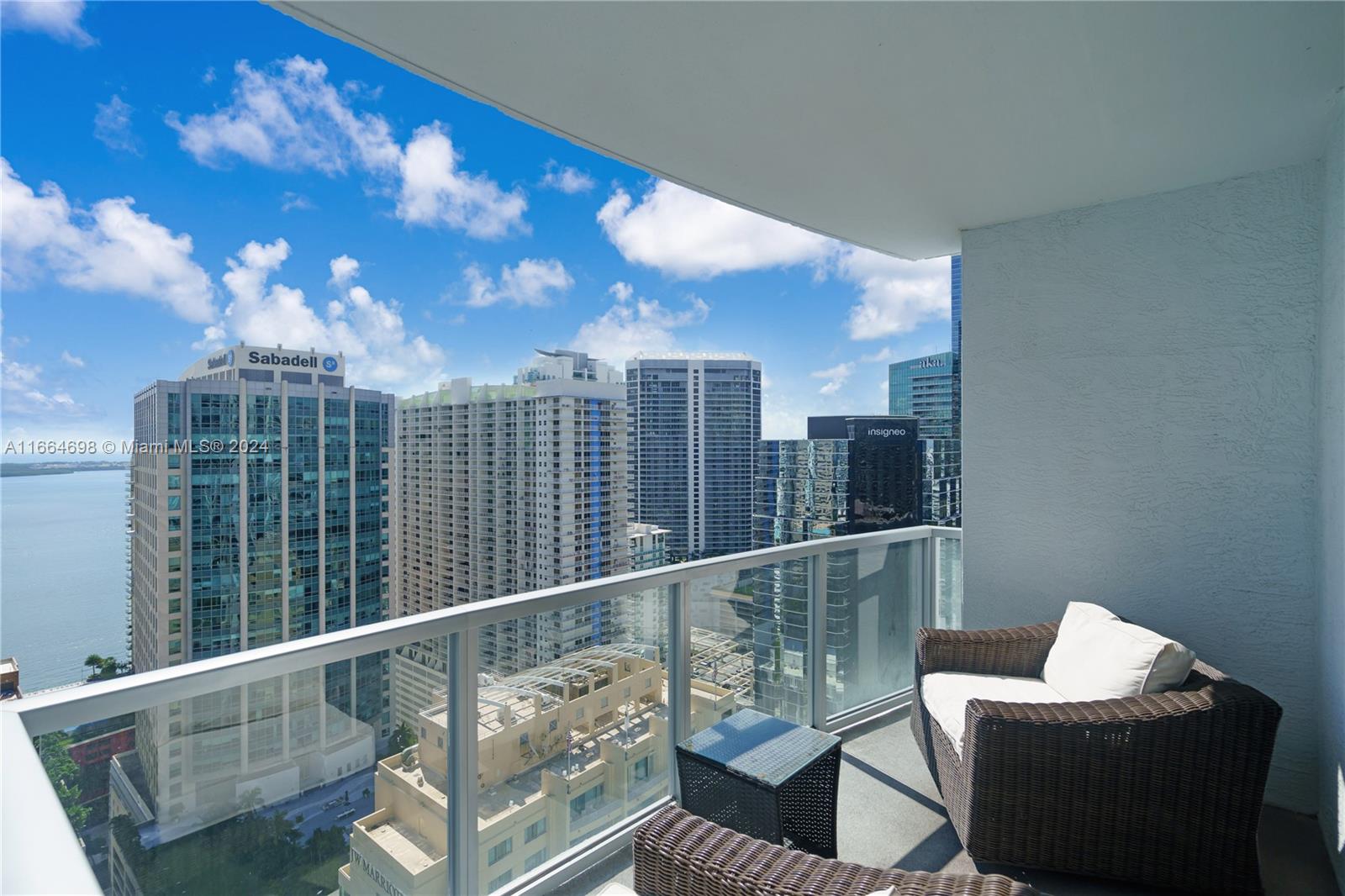 Spacious and light filled on the 33rd floor! 1BD/1.5BA apartment overlooks Brickell Avenue, views of the Bay and City. It features Italian cabinets in the kitchen and bathrooms, marble flooring throughout, stainless steel appliances, and an in-unit washer and dryer. The luxury building boasts a wealth of amenities including a pool, spa, gym, sauna, conference room, virtual golf, cigar and wine cellar, and more. Services include 24/7 valet and a front desk attendant. It's pet-friendly and situated in the heart of Brickell's financial district, just steps from fine dining, shopping, public transport, nightlife, and the financial district. The condominium is well-regarded and meticulously maintained.