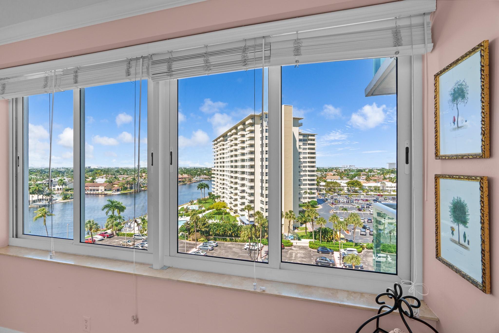 Welcome to 3233 NE 34th St #905, where luxury living meets breathtaking views. This beautifully renovated two-bedroom, two-bathroom condo offers panoramic vistas of both the Intracoastal and the ocean from your private balcony. The open kitchen features granite countertops and ample cabinetry, while the bathrooms boast unique counters and a Kohler whirlpool tub.. The master bedroom is larger than other units, and porcelain tile floors run throughout. Impact windows, a central air system, and ceiling fans, comfort is guaranteed. Highlights include crown moldings, and a washer and dryer. Located just two blocks from the beach, this north-side unit offers the perfect blend of style, convenience, and location. Don't miss this opportunity to enjoy coastal living at its finest!