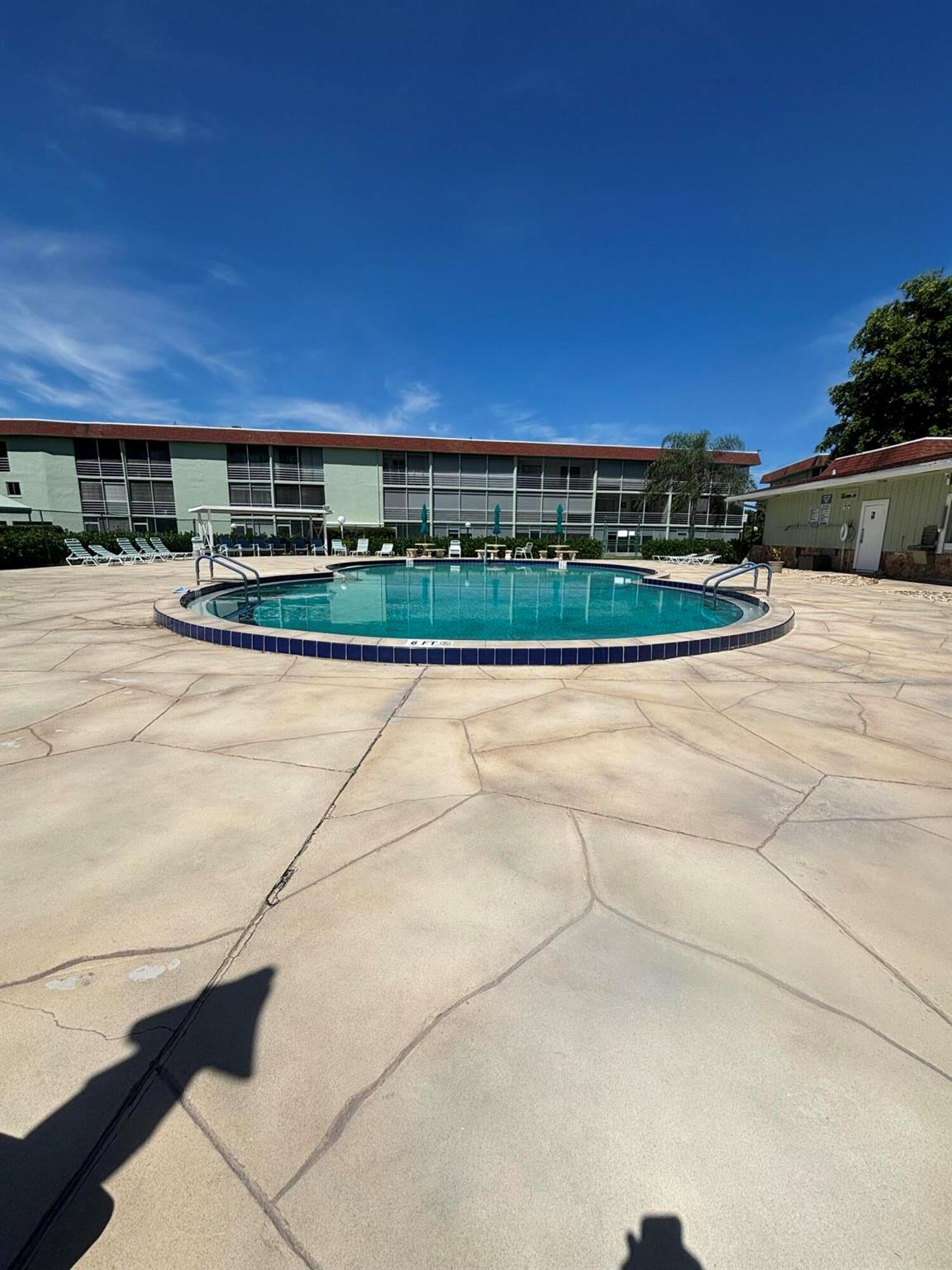 Serene 55+ community of Regal Palms! This third-floor unit boasts an incredible pool view, offering relaxing vibes right from your private screened-in patio. Ideally located near Palm Beach Airport, the community features manicured grounds, a clubhouse, pool, and more. The unit is sold as-is, ready for your personal touch. On-site laundry adds convenience to this tranquil escape!