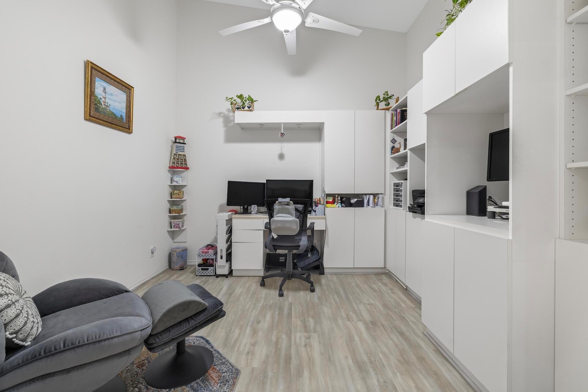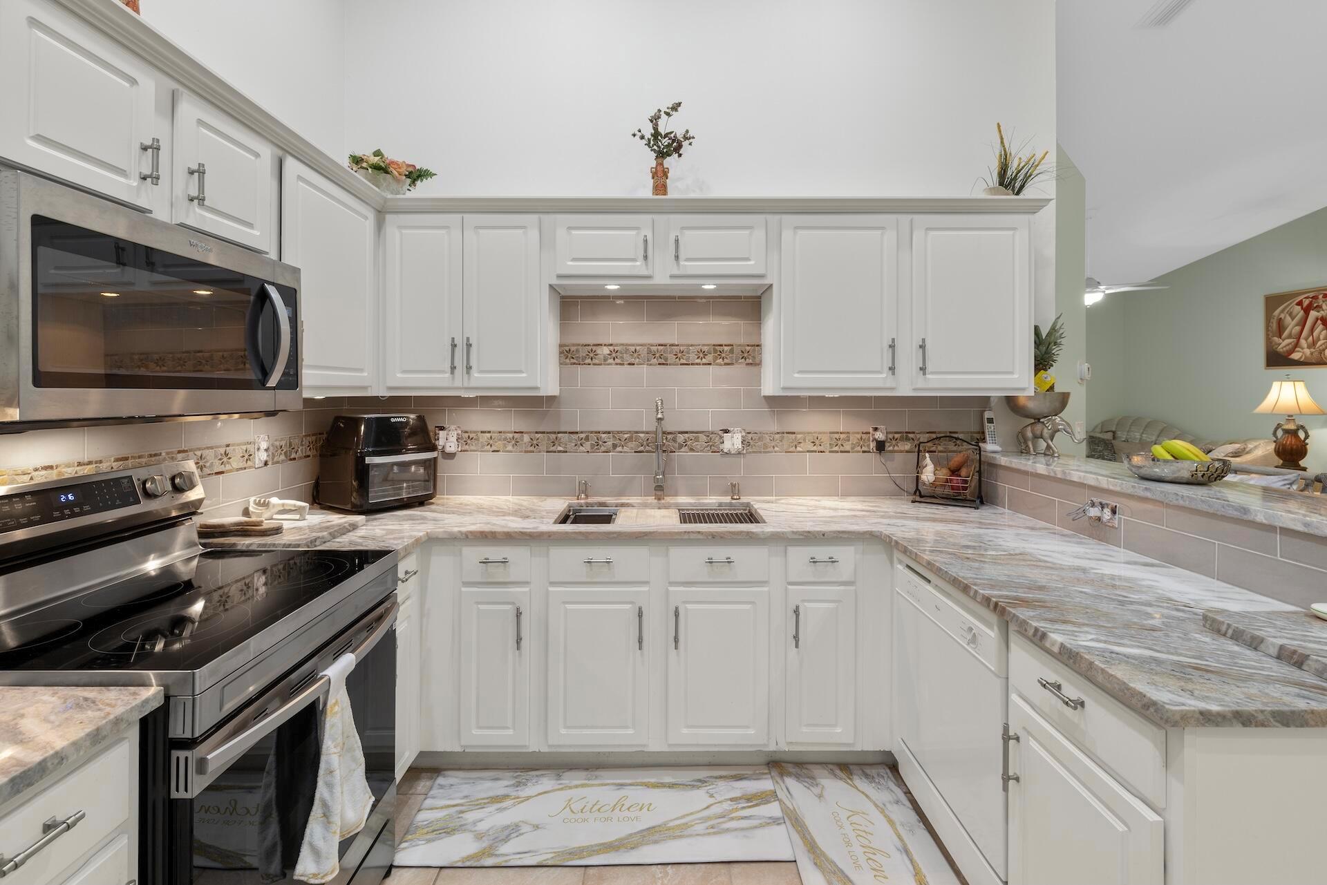 Charming 2BR/2BA Villa with Den in prestigious 55+ pet-friendly, resort style, Baywinds Community. Open plan, Great room, Eat-in Kitchen with generous cabinets and pantry. Den/office with built-ins and desk area. Great room with double sliders to screened in patio with garden view. Large walk-in closet in primary BD. Laundry room. Split BR plan. Pergo outlast + waterproof laminate wood flooring in bedrooms and den. Vaulted ceilings, 1 car garage. Accordion shutters throughout. Don't miss the chance to make it yours!Room sizes approx.