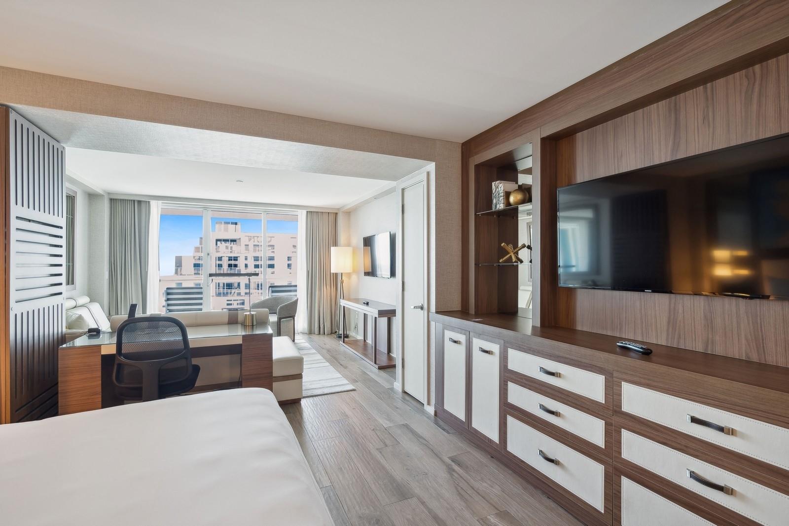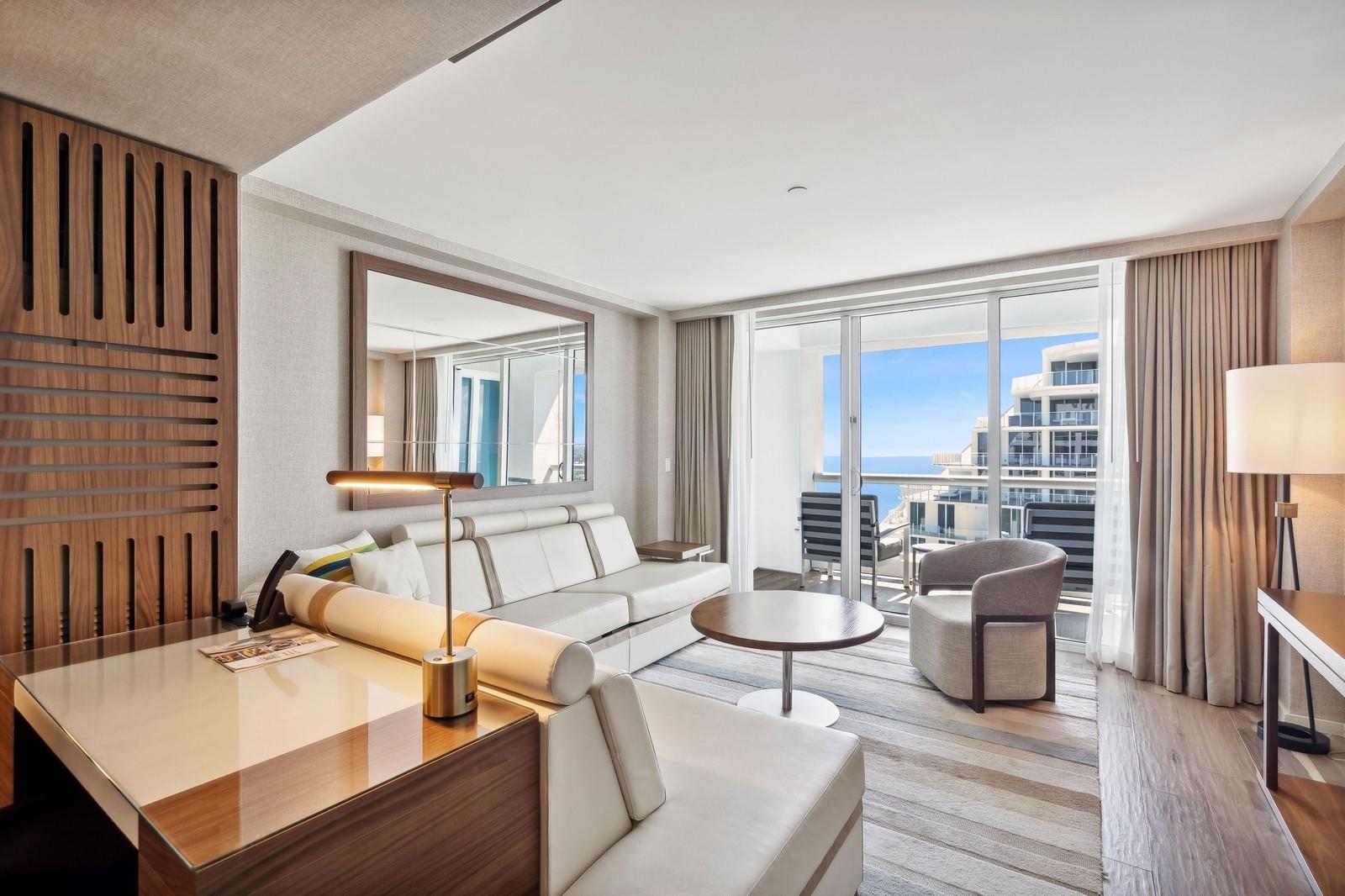 Indulge in the epitome of beachfront living in this spacious Conrad managed studio residence, located adjacent to the Four Seasons, offering unparalleled ocean and intracoastal views. Immerse yourself in a world of elegance with a fully furnished residence by Arte Facto, complete with marble bathrooms and a gourmet kitchen featuring Sub-Zero and Wolf appliances. Enjoy the ultimate in convenience with 24-hr valet, daily housekeeping, room service, laundry services, state-of-the-art gym, rejuvenating spa, inviting pool, 2 signature restaurants and beach chair services. This pet-friendly oasis presents the flexibility of daily rentals through the hotel program to offset ownership costs or as a full time Florida residence.