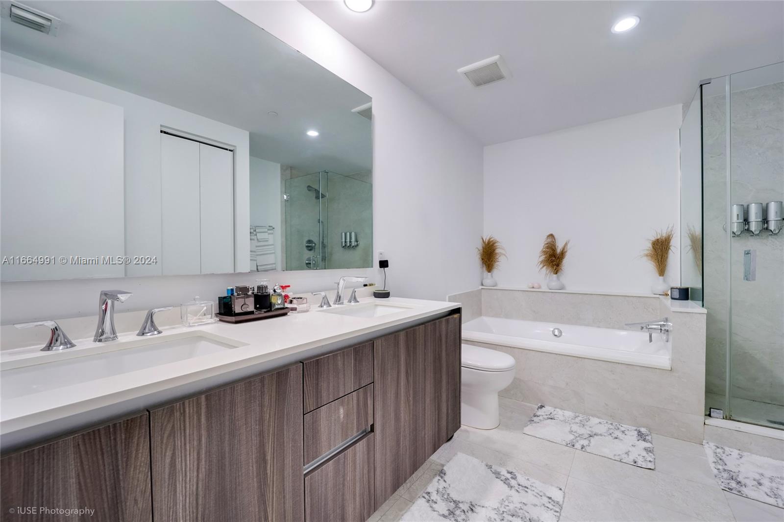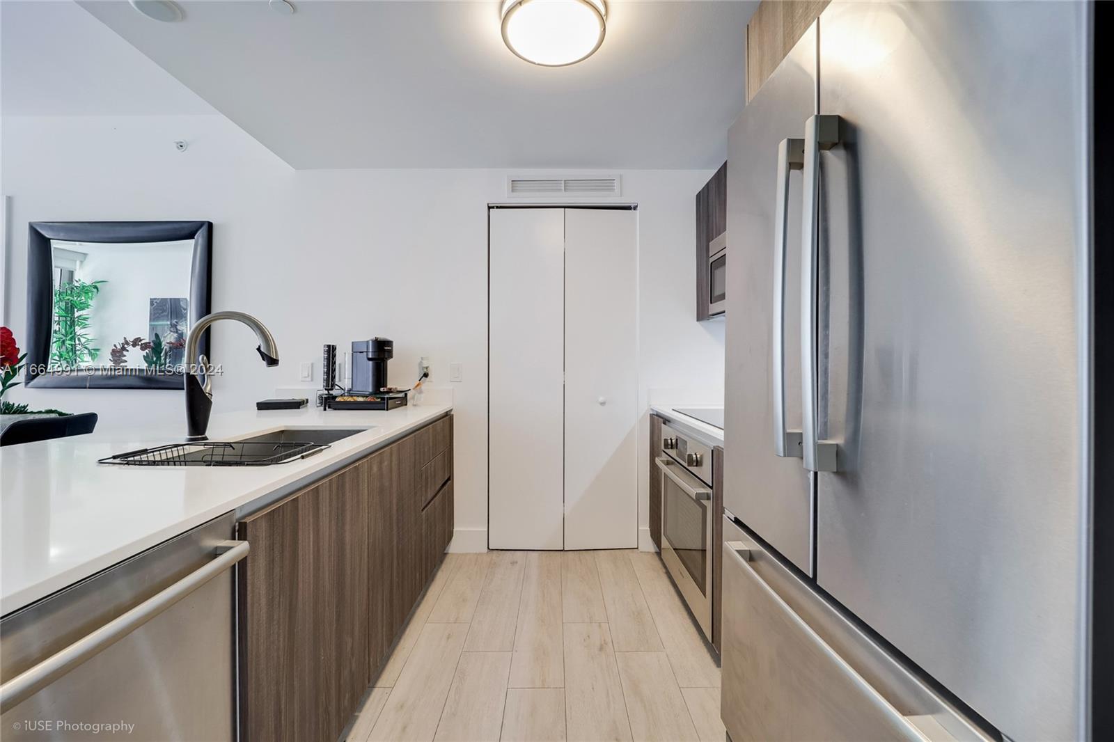 Luxurious 1 bed + den, 2 bath condo with private elevator and foyer, spanning 888 sq. ft. The den easily converts to a second bedroom or office with its own full bath. Enjoy spacious closets, top-tier appliances, and access to three floors of premier amenities, including pools, a gym, yoga studio, game room, and sports courts. Located waterfront in Edgewater’s Arts & Entertainment District, just minutes from Brickell, Wynwood, and the Design District.