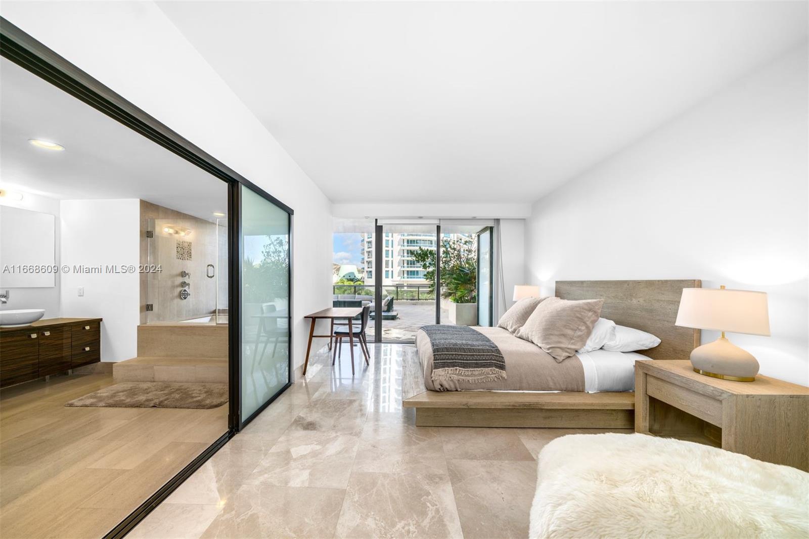 Enjoy this rarely available corner Lanai unit at the boutique MEi Miami Beach. This stunning 2 bed, 2.5 bath residence includes an expansive 1500 sqft terrace. Ideal for entertaining and sunrise and sunset views. The second bedroom features a murphy bed. The MEi is a boutique condominium with 134 residences, offering 5-star service, valet parking, beach access + service, a state-of-the-art pool, fitness center, library, steam room, spa, and more.