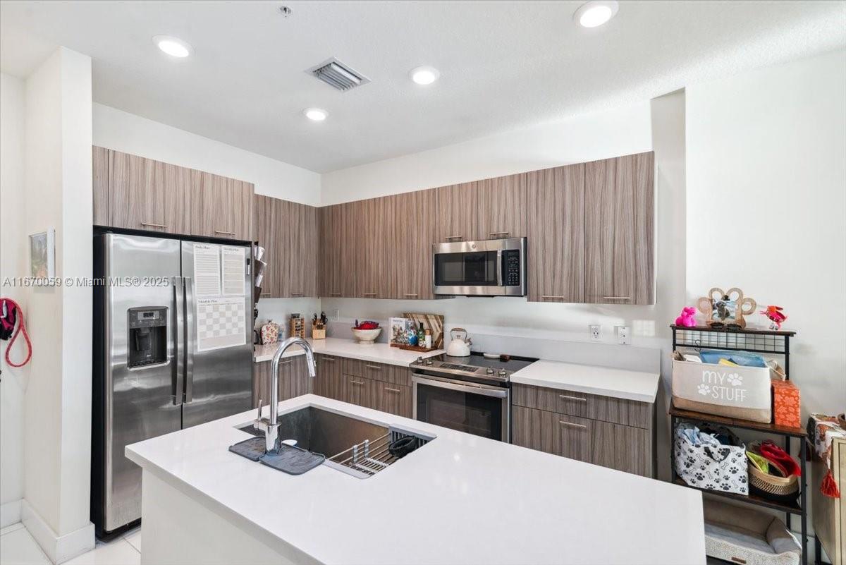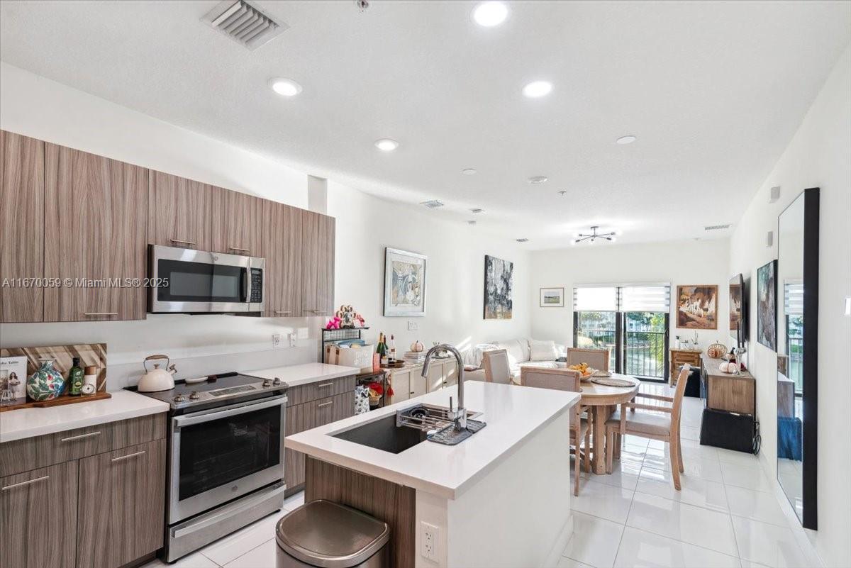 Why settle for ordinary when you can have lakefront living in Downtown Doral? This unique 2-bedroom, 2-bath NEXTGEN model is basically two homes in one: a cozy studio with a kitchen and full bath, plus a separate 1-bedroom unit featuring its own kitchen, washer/dryer, and a balcony with stunning lake views that scream, “I made it!” Located on the 4th floor, you’ll be just steps from two parks—one for kids (bring the snacks) and one for dogs (because they deserve it). As part of the Urbana community, you’ll also enjoy premium perks like pools, a gym, indoor basketball courts, mini golf, and more. It’s like living at a resort without the room service fees.