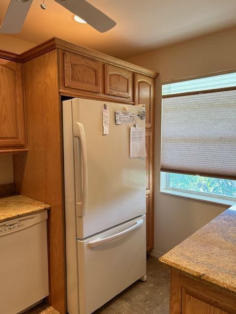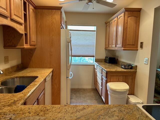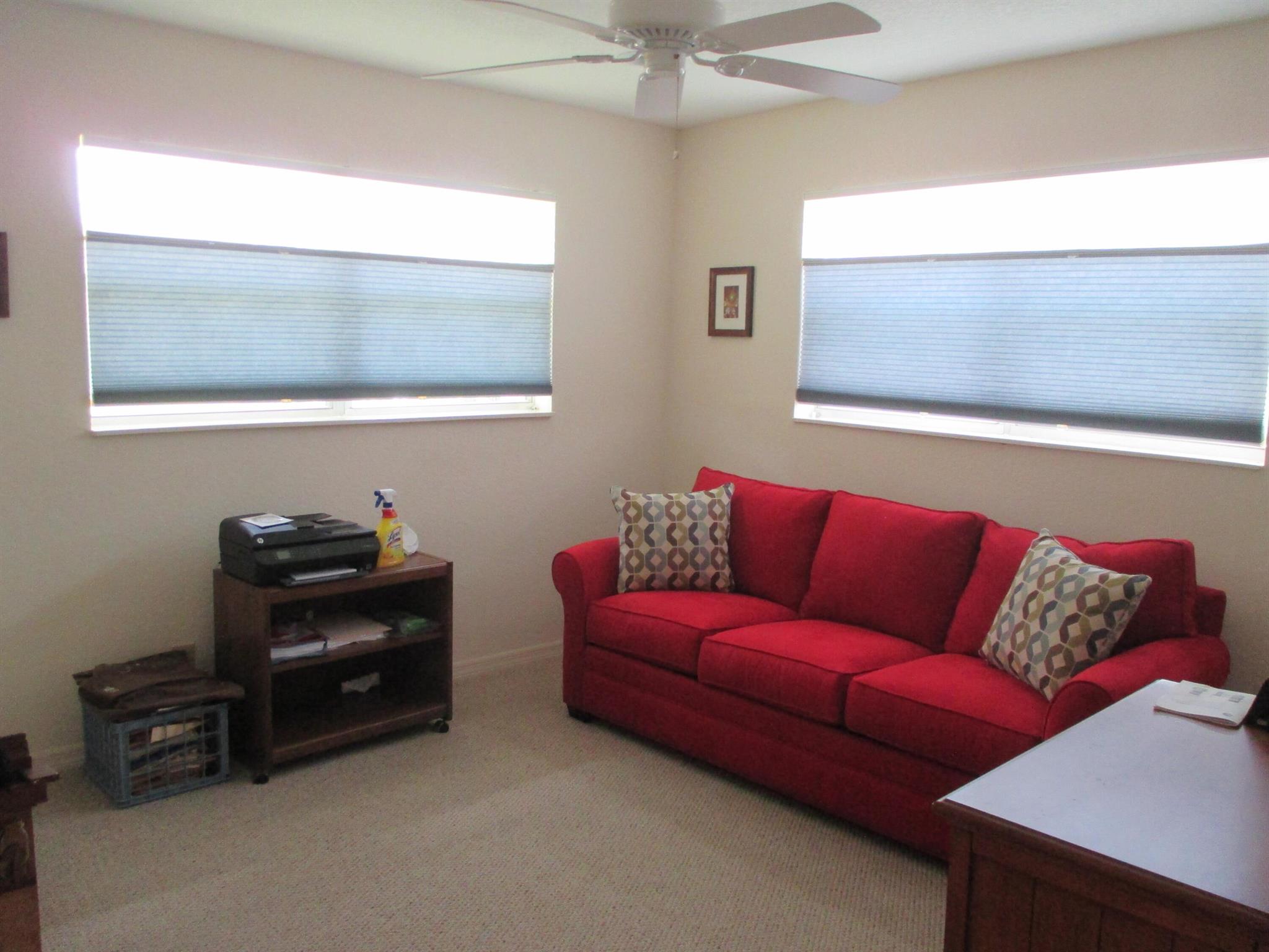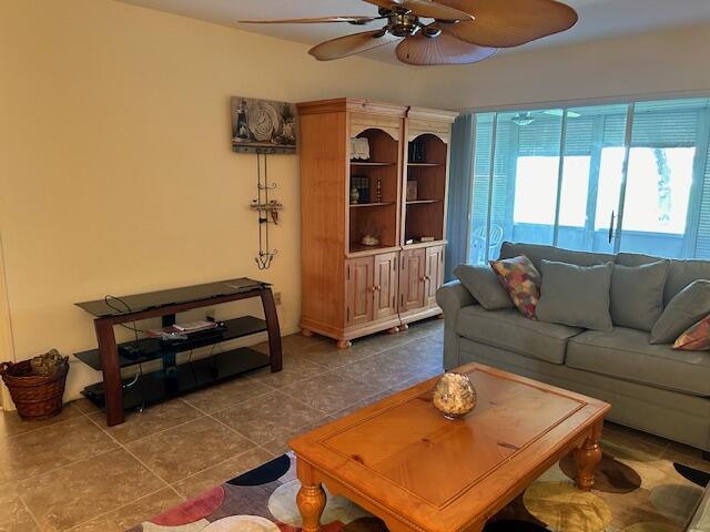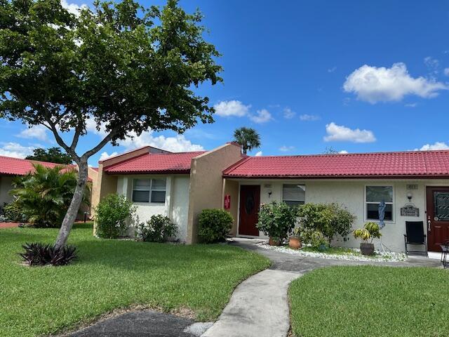 Updated corner 2/2 Villa with large 18' long patio which overlooks waterway. Knock down ceilings and walls. (no popcorn) Updated kitchen cabinets with granite counters. Amana bottom freezer refrigerator, EnergyStar Frigidaire stackable washer/dryer. Screened patio (18.5x7.5) with storage closet. Raised panel doors with newer door casings, updated baths, all tiled except for bedrooms which have Berber carpeting. Tankless Hot water heater and newer A/C. Lake Helen has a satellite Pool used by Lk Helen residents only. Come see this move in ready Villa. Golden Lakes is a gated 55+ active community with full time social director. Great location, short drive to grocery stores, big box stores & 2 mi to FL Turnpike. Approx 15 min drive to downtown WPB, Kravis Center for Performing Arts, etc