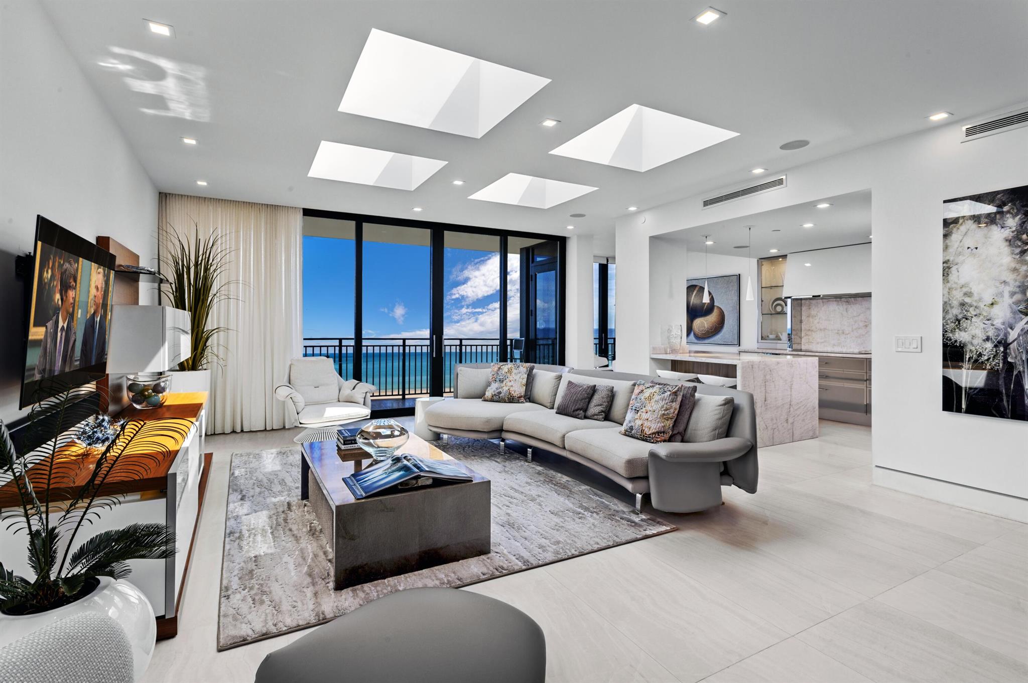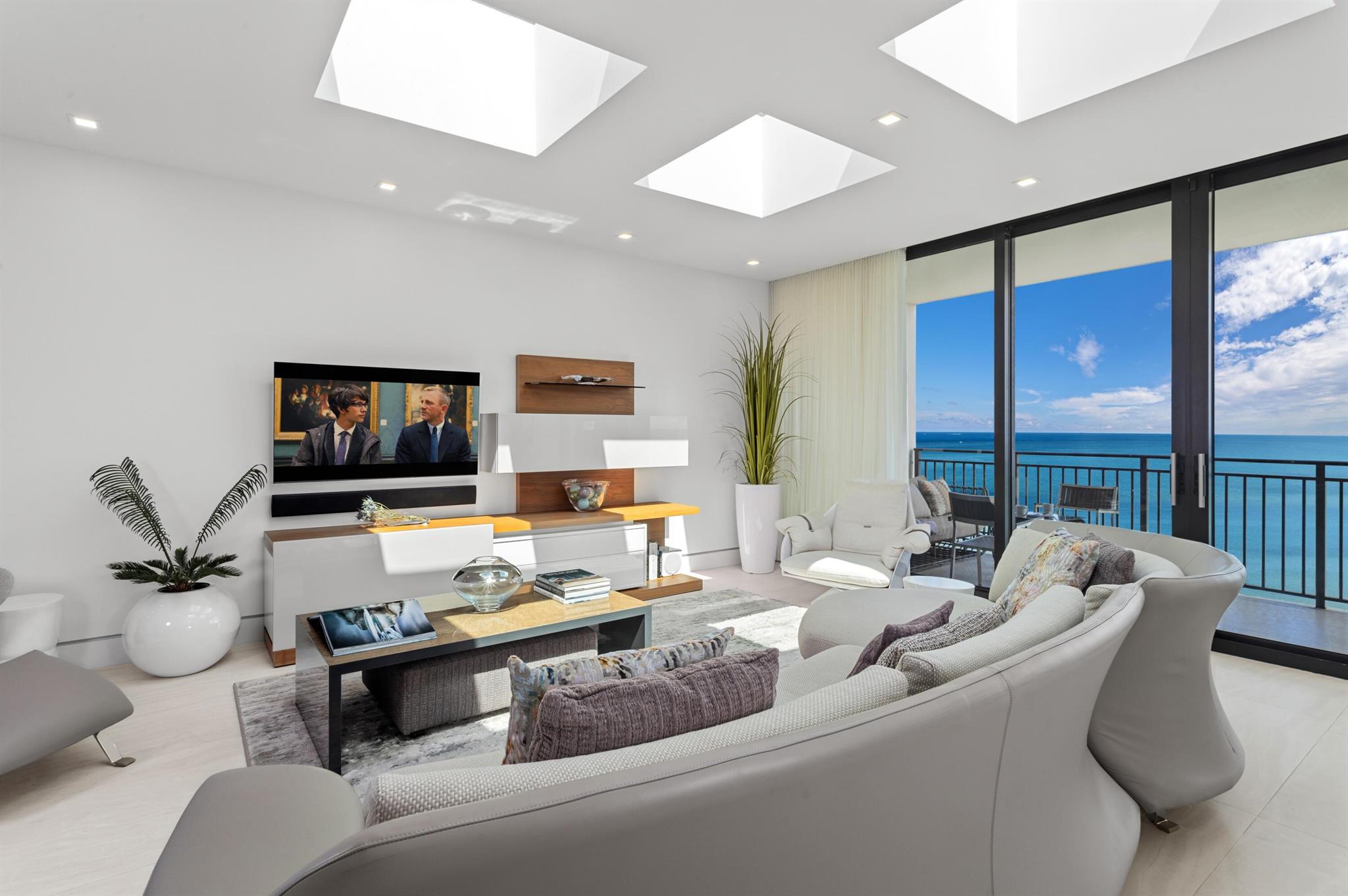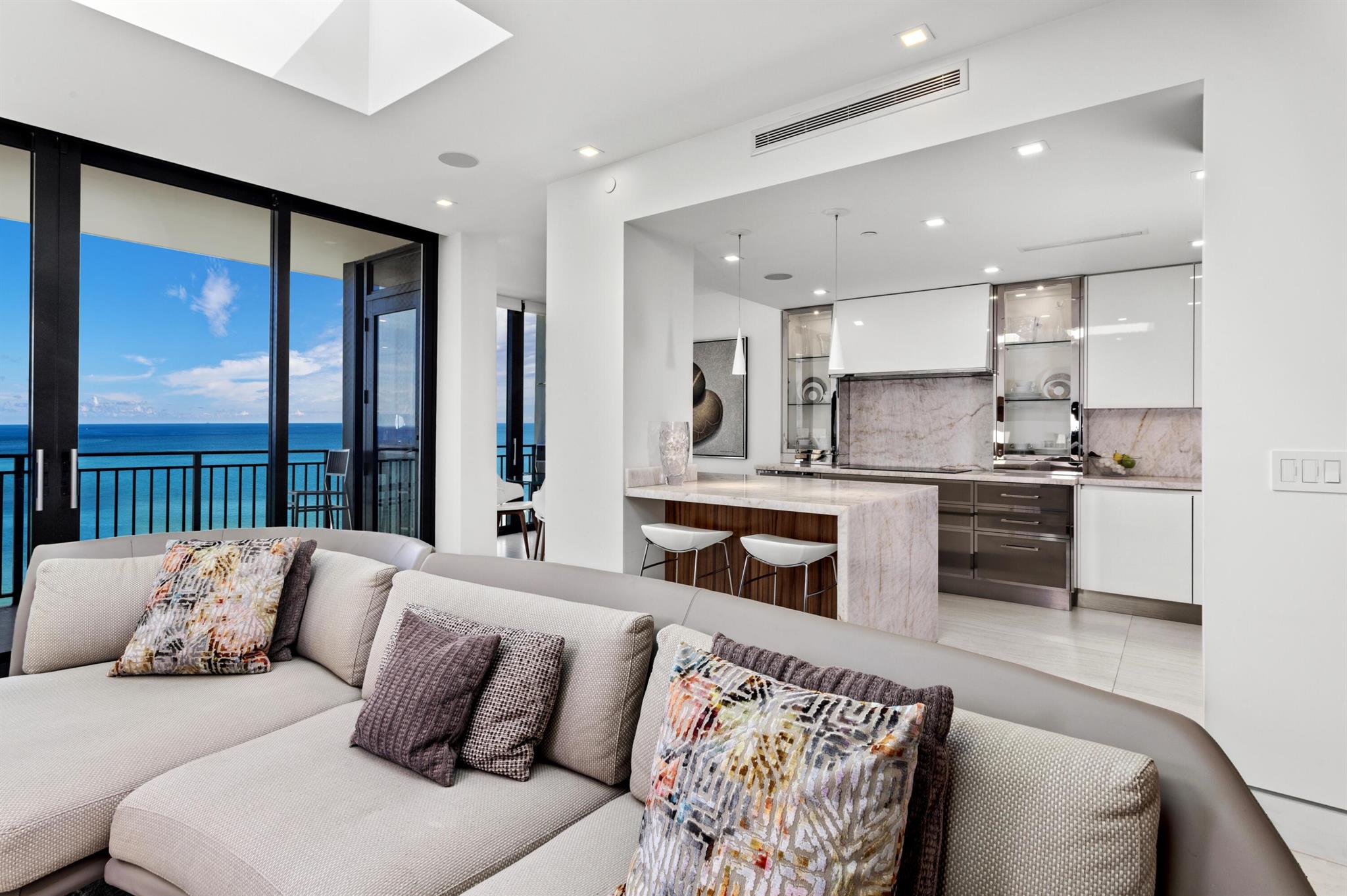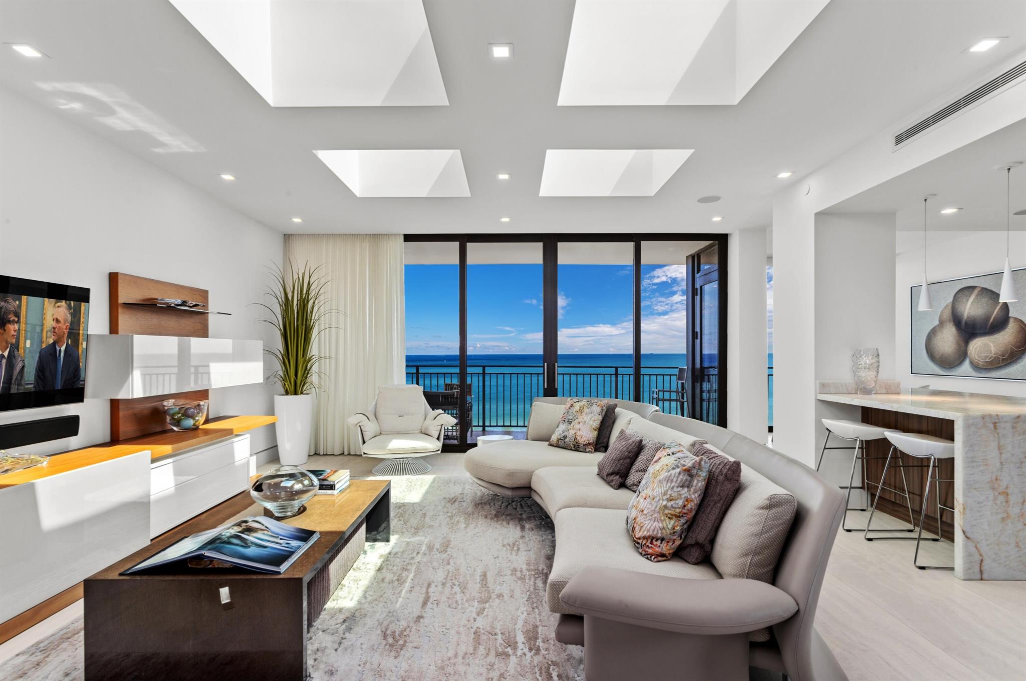 SPECTACULARLY REMODELED DIRECT OCEANFRONT PENTHOUSE AT PLACIDE OFFERING HIGH CEILINGS, SKYLIGHTS, AND A LARGE OCEANFRONT BALCONY WITH ENDLESS WATER VIEWS! WALLS OF IMPACT GLASS OVERLOOK THE SPARKLING ATLANTIC OCEAN TO THE EAST WITH CITY VIEWS TO THE WEST. ONLY 2 APARTMENTS PER FLOOR PER ELEVATOR. NO DETAIL HAS BEEN OVERLOOKED! GOURMET OCEANFRONT EAT-IN KITCHEN WITH DOWNSVIEW CABINETRY, MIELE APPLIANCES, MARBLE COUNTERTOPS AND ABUNDANT STORAGE. LUXE PRIMARY SUITE, INCLUDING AN ENLARGED PRIMARY BATH TO INCORPORATE SEPARATE SHOWER AND SPA TUB. CONTROL 4 HOME AUTOMATION. FULL SIZE LAUNDRY ROOM WITH SINK. BOUTIQUE OCEANFRONT BUILDING WITH OCEAN VIEW POOL AND DIRECT ACCESS TO MILES OF WIDE SANDY BEACHES. BEAUTIFUL CLUB ROOM, FITNESS CENTER AND CRISP CONTEMPORARY LOBBY WITH DOORMAN.