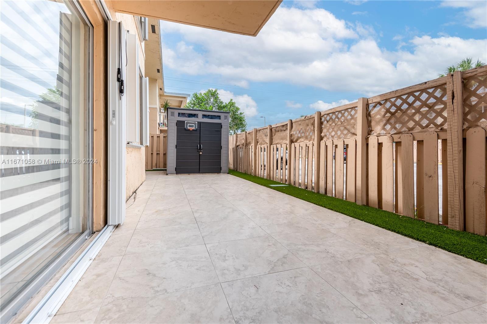 IF YOU'RE LOOKING FOR A GROUND-FLOOR APARTMENT WITH A SPACIOUS PATIO, LOOK NO FURTHER—THIS IS YOUR NEW HOME OR NEXT INVESTMENT OPPORTUNITY. THIS UNIT HAS BEEN SMARTLY REMODELED TO MAXIMIZE ITS POTENTIAL: NO POPCORN CEILING, NEW AIR CONDITIONING DUCTS, NEW KITCHEN AND APPLIANCES, FRESHLY PAINTED. THE SPACIOUS PATIO FEATURES CERAMIC TILES AND ARTIFICIAL GRASS FOR EASY MAINTENANCE. ADDITIONALLY, THE INSTALLATION OF SHUTTERS ON ALL WINDOWS NOT ONLY PROVIDES SECURITY BUT ALSO HELPS REDUCE INSURANCE COSTS. TAKE ADVANTAGE OF THIS OPPORTUNITY TO ENJOY THE CONVENIENCE OF LIVING IN A FIRST-FLOOR APARTMENT. NO SPECIAL ASSESSMENT.