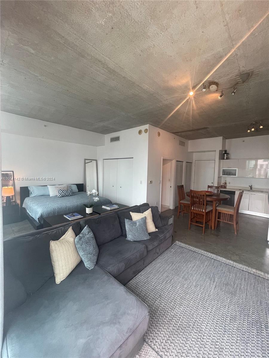 Welcome to The Loft Downtown II. This open (1) bedroom condo offers a compelling investment opportunity. Finishes include polished concrete floors, exposed concrete ceilings, terrazzo, and stainless steel. Extended balcony, large closet, washer/dryer in unit. You can lease up to 12 times per year at 30 day minimums. Take in breathtaking skyline and bay views from your private balcony. The property also features two swimming pools, a fully equipped gym, and a spacious club room. Located amidst many popular restaurants, shops, and offering easy access to the Metro-rail and Brightline, this property combines size, convenience, and prime location. Dog-friendly building.