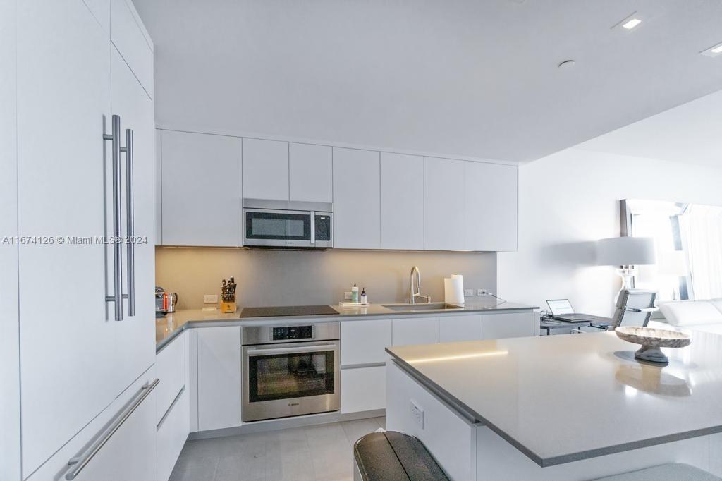 Enjoy living in exclusive Reach at Brickell City Center! Modern spacious 1 bedrooms 1.5 baths unit, large balcony with panoramic city skyline view, 11 feet ceilings, natural stone floors throughout, Italian kitchen cabinets, top of the line appliances, quartz countertops, wine bottle storage, elegant bathrooms with soaking tubs and frameless glass enclosed showers, impact doors and windows. 5 stars building amenities include full gym & SPA, heated pool, Jacuzzis, BBQ area, children play area, business center, 24-hours concierge, valet service.