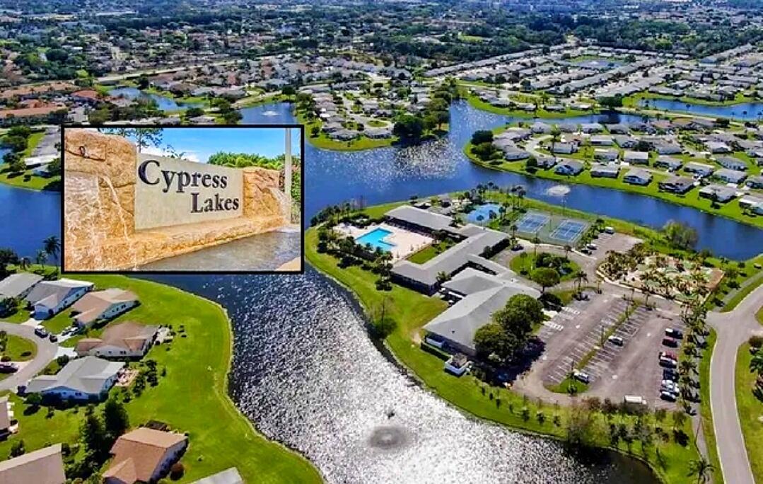 Discover this charming 2-bedroom, 2-bathroom villa in the peaceful Cypress Lakes 55+ community. As you step through the welcoming screen porch, you'll enter a spacious open living area, perfect for relaxing or entertaining. The kitchen offers plenty of cabinets and counter space, making meal prep simple. The primary bedroom features a large closet and a private en suite bathroom with elegant tile and a roomy vanity.A convenient two-car driveway is located right in front, making parking easy.Residents enjoy a variety of amenities, including an 18-hole golf course, tennis courts, a gym, clubhouse, jacuzzi, and more. For social activities, there's a game room, library, and plenty of opportunities to connect with neighbors.Cypress Lakes is designed for a relaxed and active lifestyle.