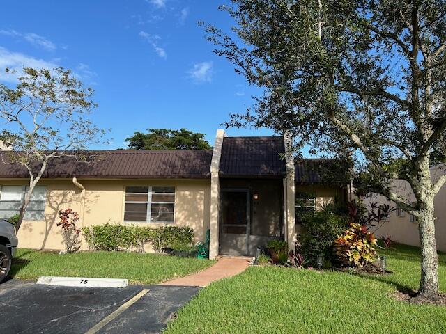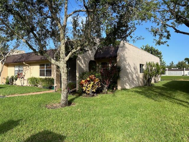 Largest floor plan in GL, corner 2/2 with formal dining area & lg 21x10 enclosed patio with storage closet. Brand New A/C system. Full size W/D. All tile floor except MS BR. Updated master bathroom w/walk-in shower designed to be handicapped accessible and updated Kitchen with granite counters and backsplash. Two walk-in closets in master bedroom. Active 55+ gated community close to shops, turnpike and approx 15 min to downtown WPB. Lots covered in HOA maint. Comcast Xfinity cable, Internet, water, 24/7 gated, courtesy Bus 2 days a week to grocery, shops etc. Full time social director schedules trips, shows & events. Clubhs has a Cafe, billiards, gym, library & auditorium. On site manager. Come Discover Golden Lakes Village.