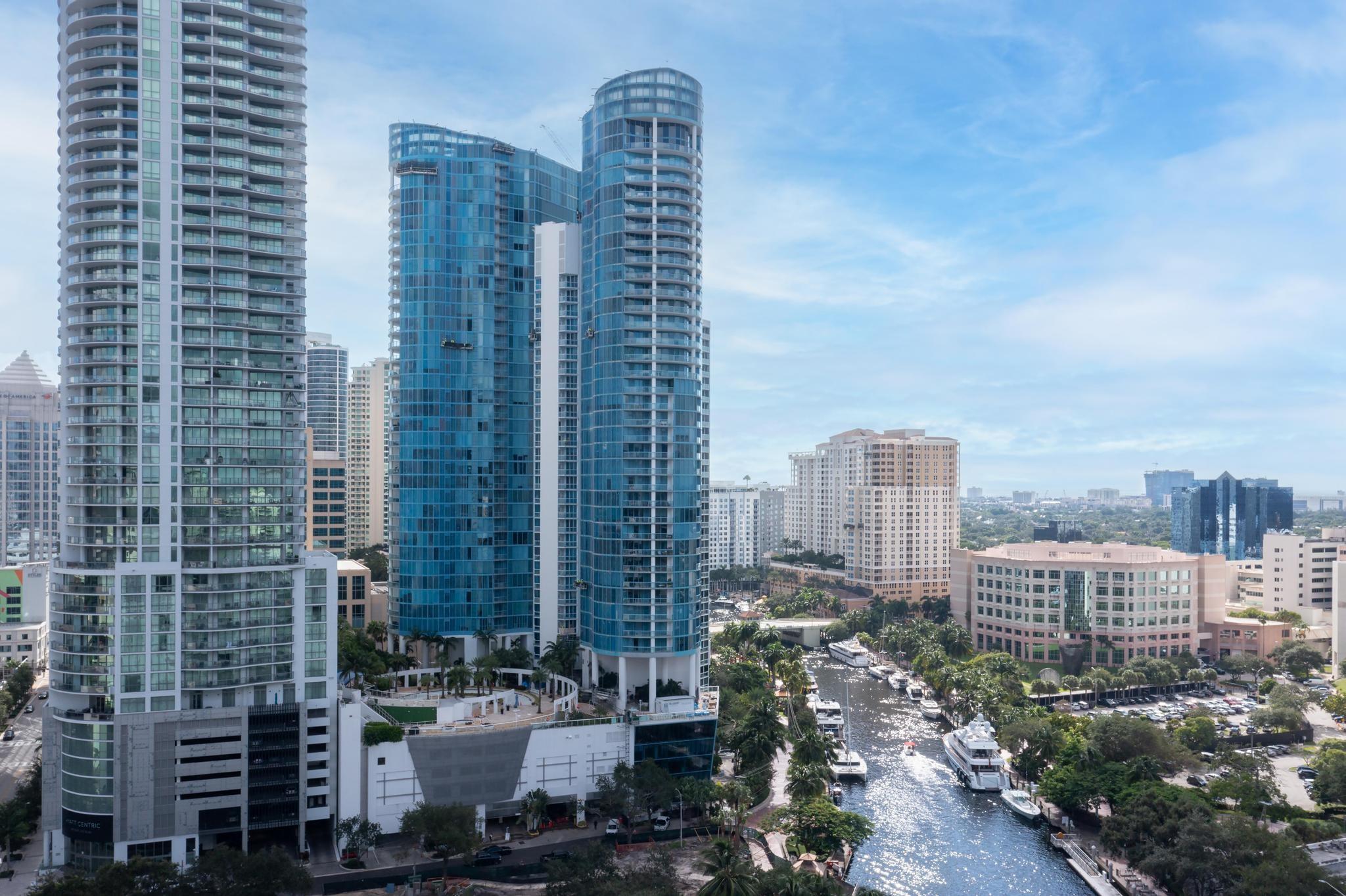 Location! Location! Location! Unit is now priced to sell! Discover elegance combined with tranquil views in this stunning 2-bedroom, 2.5-bath corner unit on the 22nd floor of the sought-after River House Condo. Enjoy breathtaking views of the city and New River, where yachts glide by, creating a picturesque backdrop. Each spacious primary bedroom features its own captivating view, while updated appliances enhance the modern kitchen. Indulge in exceptional amenities, including a sparkling pool, state-of-the-art gym with lockers, sauna, and a rejuvenating spa room. Plus, your designated parking space comes equipped with an electric car charger. Experience luxury living at its finest in this vibrant community!