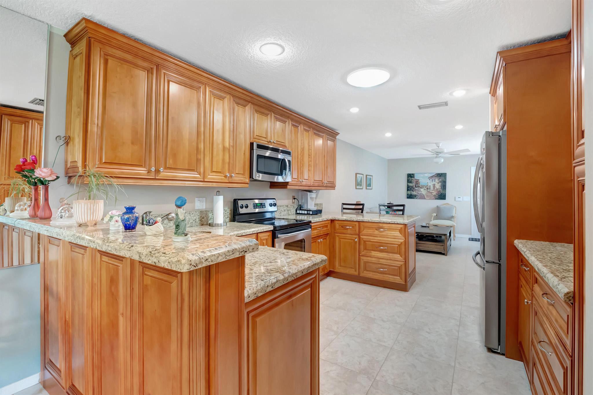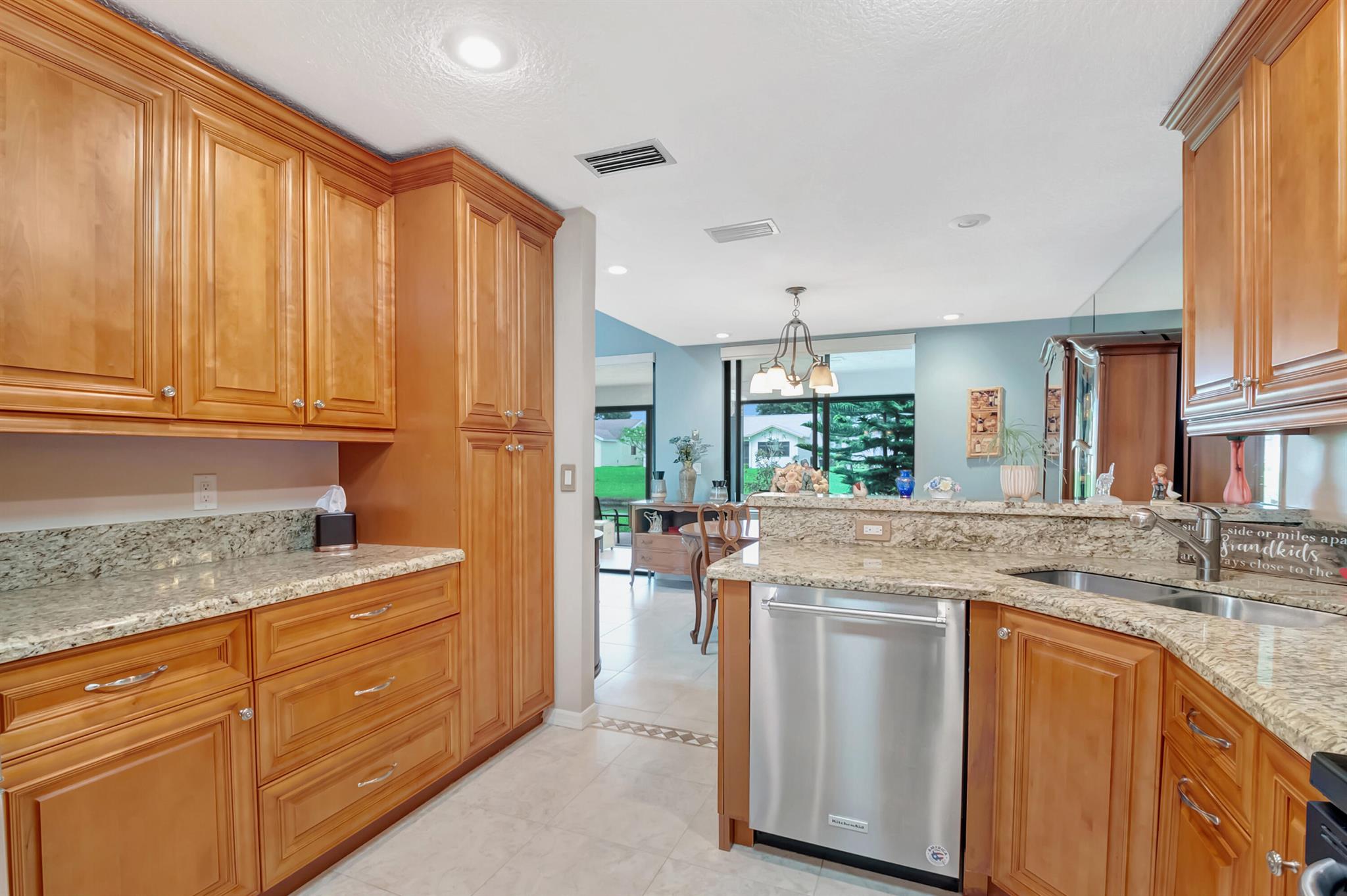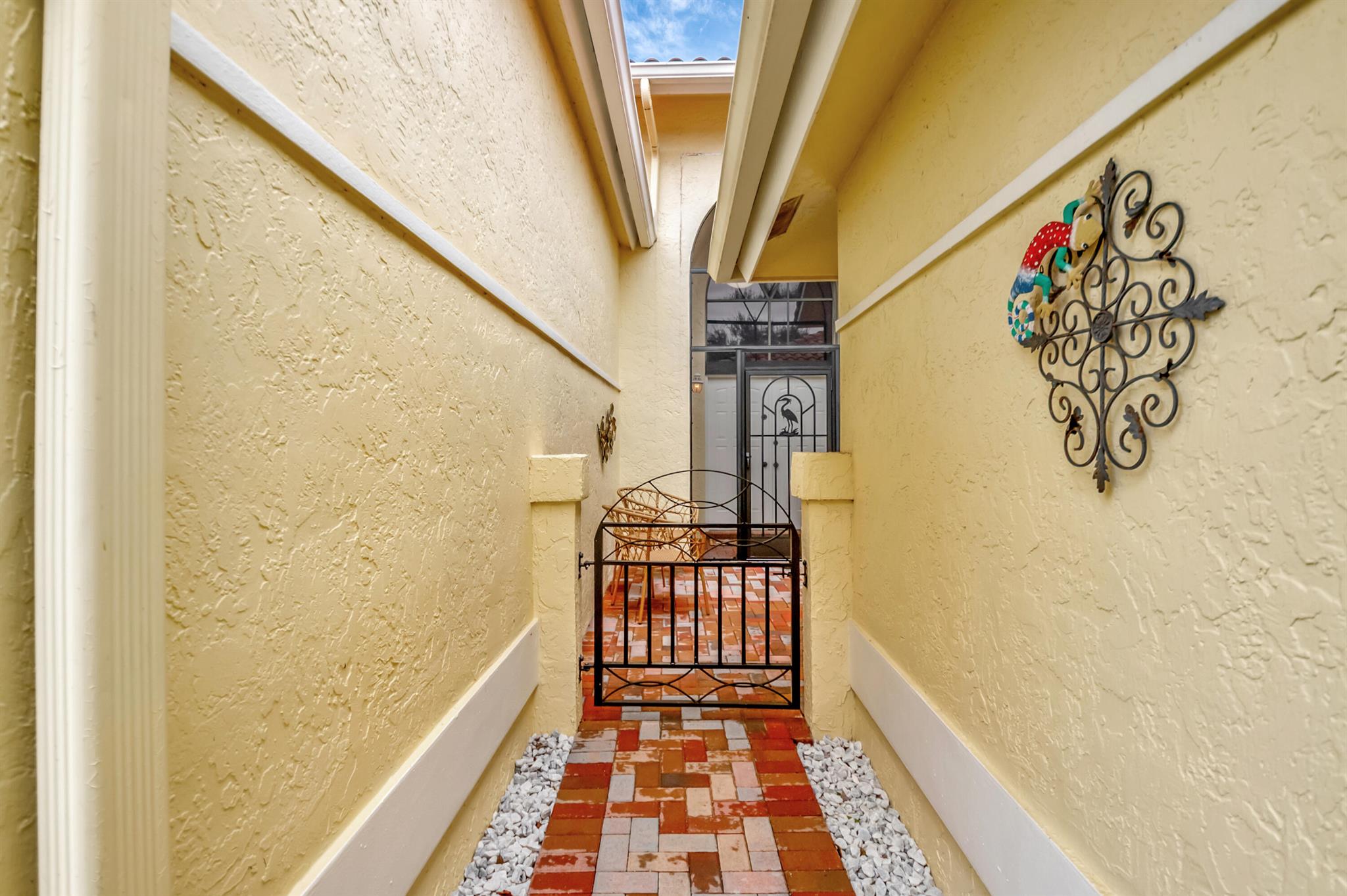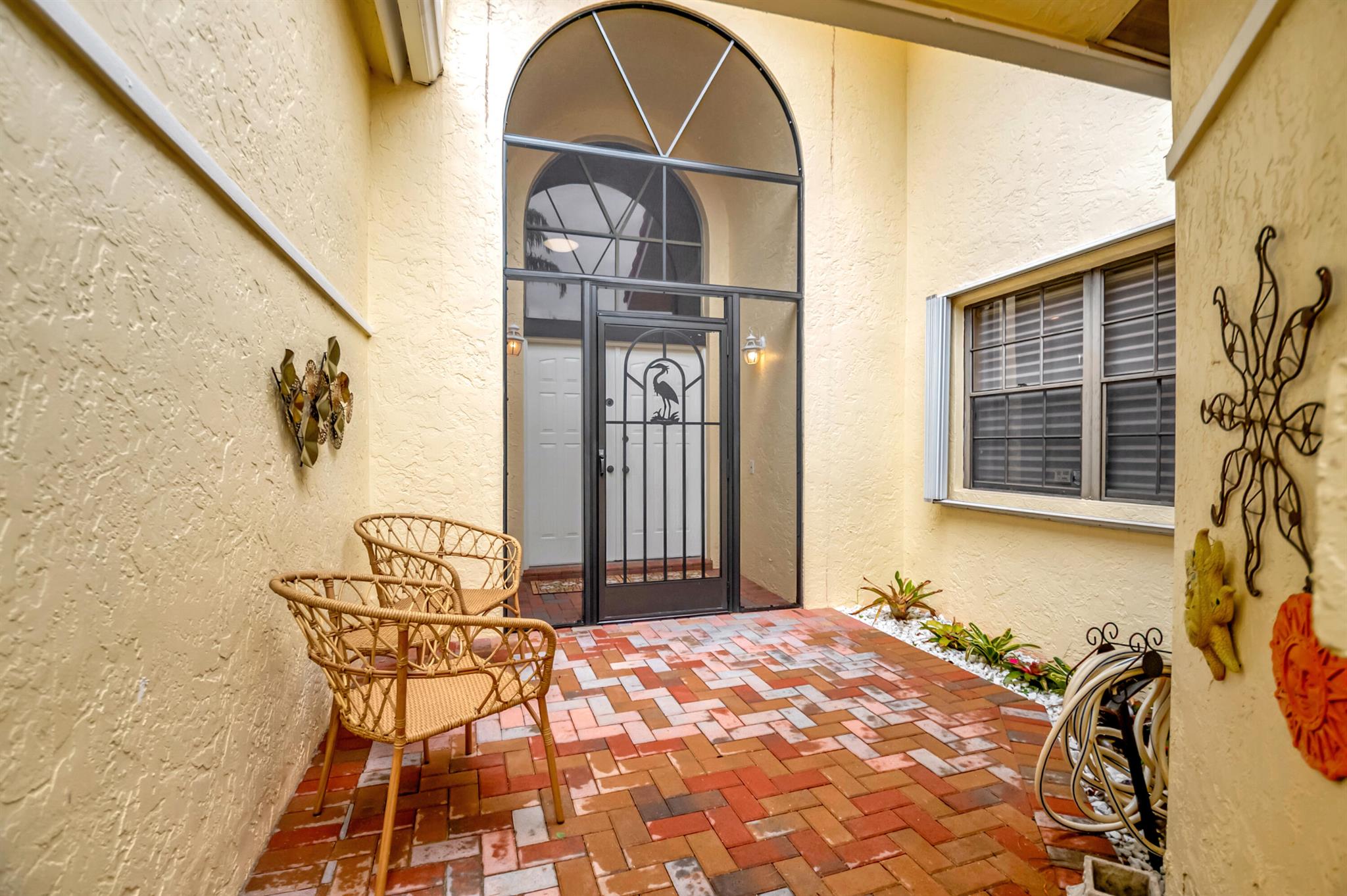 Beautifully renovated villa with Courtyard entry in exclusive gated 55+ community with paver driveway & 2-car garage. This immaculate home features a dream kitchen with newer SS appliances, custom cabinets & granite counters. Both bathrooms are recently renovated. The primary bathroom has dual sinks, a spa tub & separate shower. Bedroom closets are fitted with custom shelving. The living room & dining room shades operate on a remote control. This home has full hurricane protection with accordion shutters & high impact garage door. There are pull down steps for attic storage & a generator for the house with a special electrical outlet. Enjoy peaceful water views from the Florida Room. Clubhouse is currently under renovation with no assessment and should be completed in February 2025.
