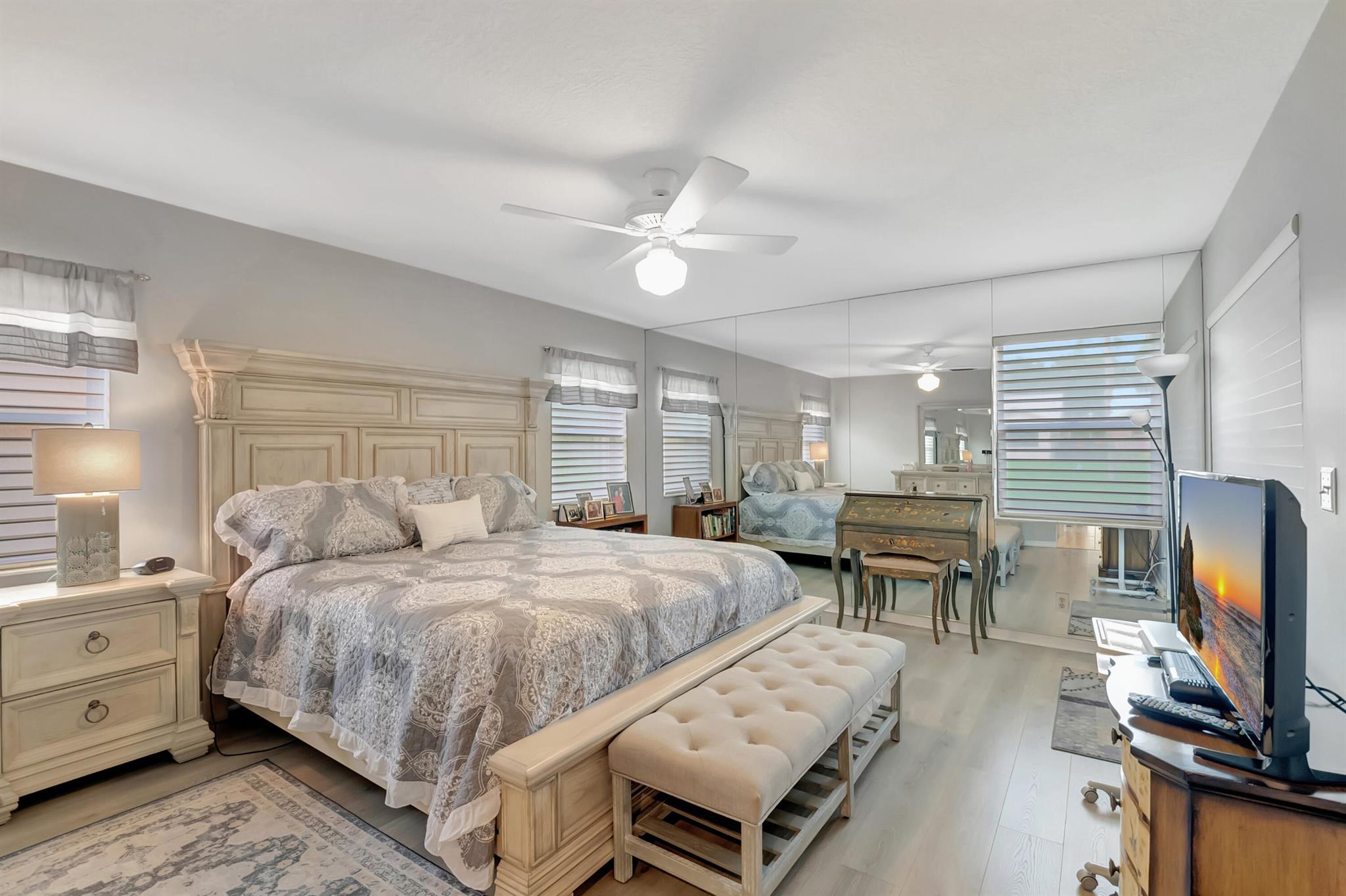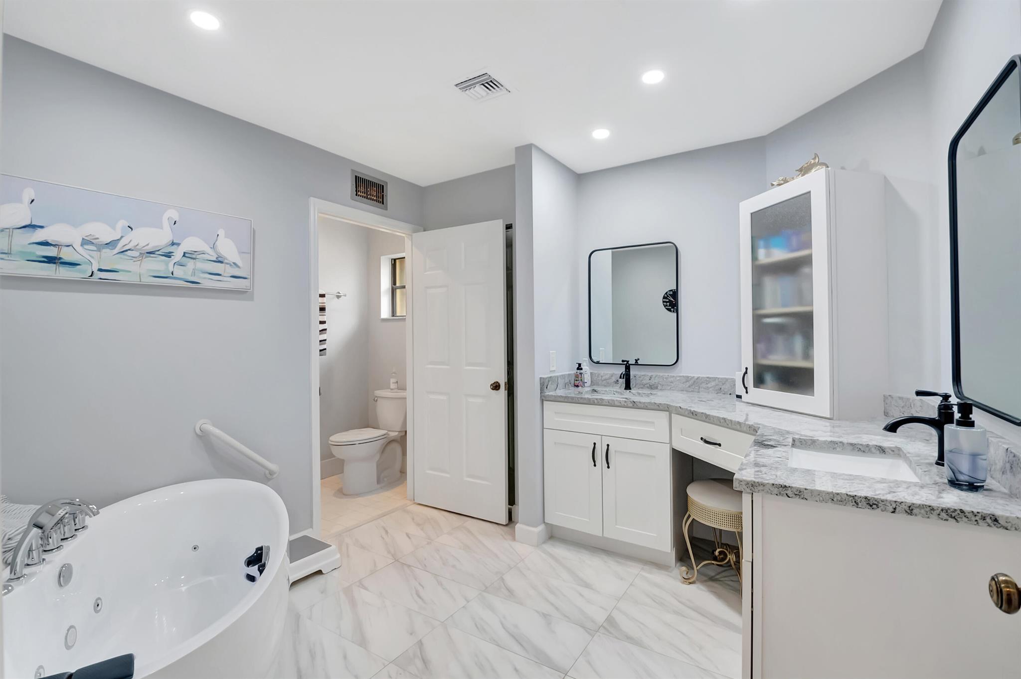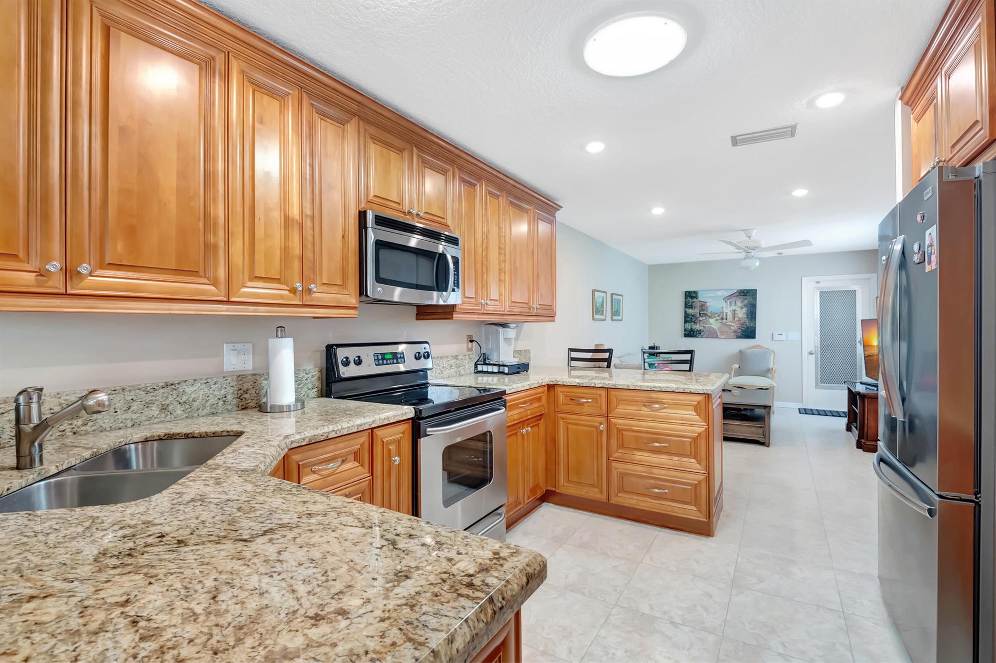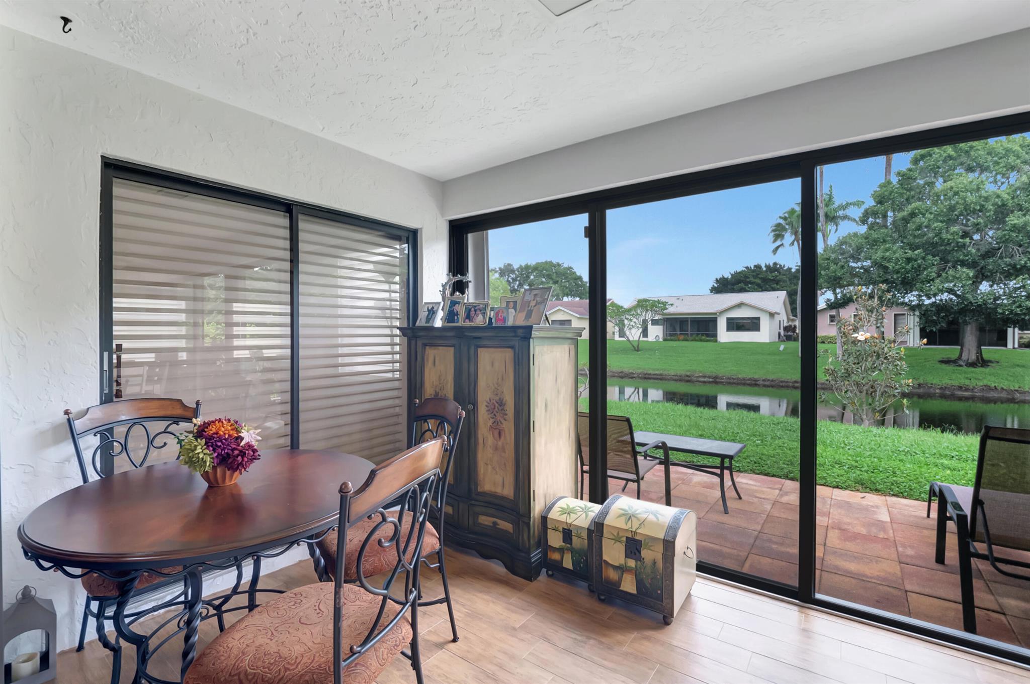 Beautifully renovated villa with Courtyard entry in exclusive gated 55+ community with paver driveway & 2-car garage. This immaculate home features a dream kitchen with newer SS appliances, custom cabinets & granite counters. Both bathrooms are recently renovated. The primary bathroom has dual sinks, a spa tub & separate shower. Bedroom closets are fitted with custom shelving. The living room & dining room shades operate on a remote control. This home has full hurricane protection with accordion shutters & high impact garage door. There are pull down steps for attic storage & a generator for the house with a special electrical outlet. Enjoy peaceful water views from the Florida Room. Clubhouse is currently under renovation with no assessment and should be completed in February 2025.