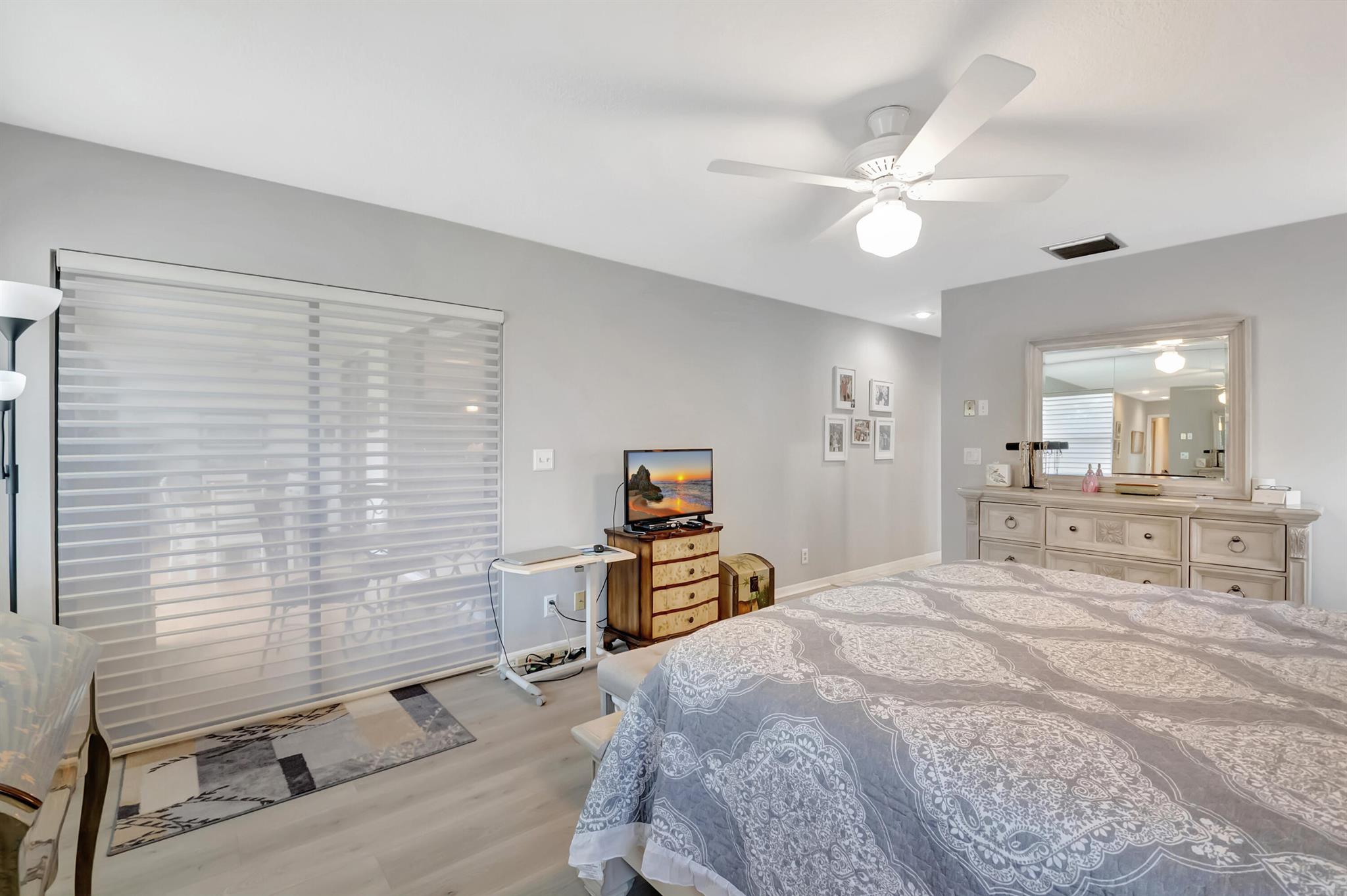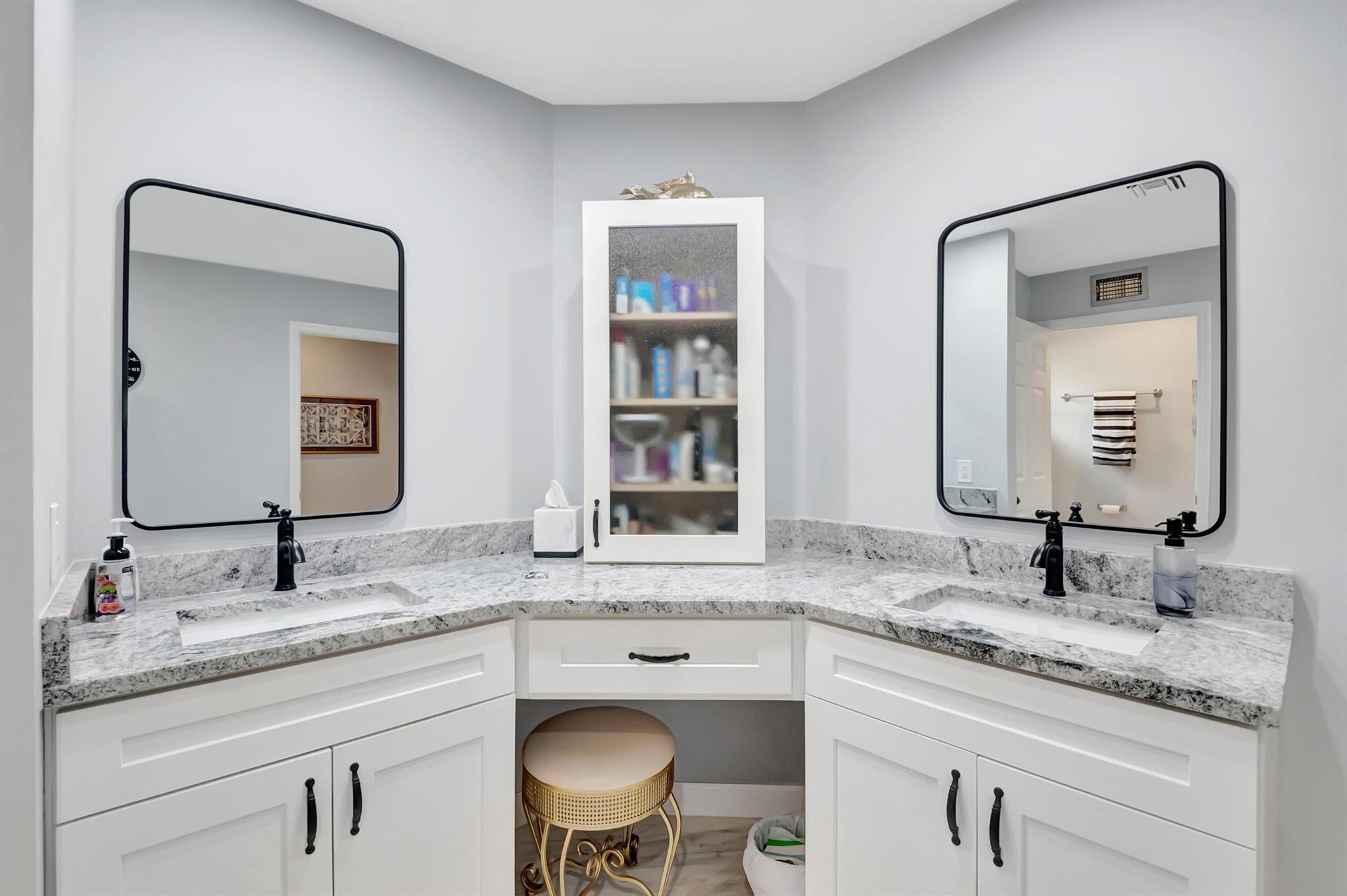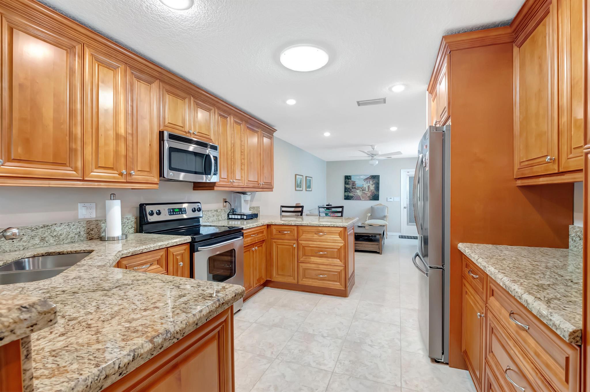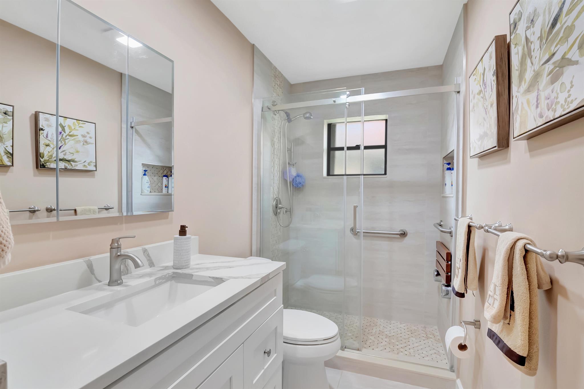 Beautifully renovated villa with Courtyard entry in exclusive gated 55+ community with paver driveway & 2-car garage. This immaculate home features a dream kitchen with newer SS appliances, custom cabinets & granite counters. Both bathrooms are recently renovated. The primary bathroom has dual sinks, a spa tub & separate shower. Bedroom closets are fitted with custom shelving. The living room & dining room shades operate on a remote control. This home has full hurricane protection with accordion shutters & high impact garage door. There are pull down steps for attic storage & a generator for the house with a special electrical outlet. Enjoy peaceful water views from the Florida Room. Clubhouse is currently under renovation with no assessment and should be completed in February 2025.