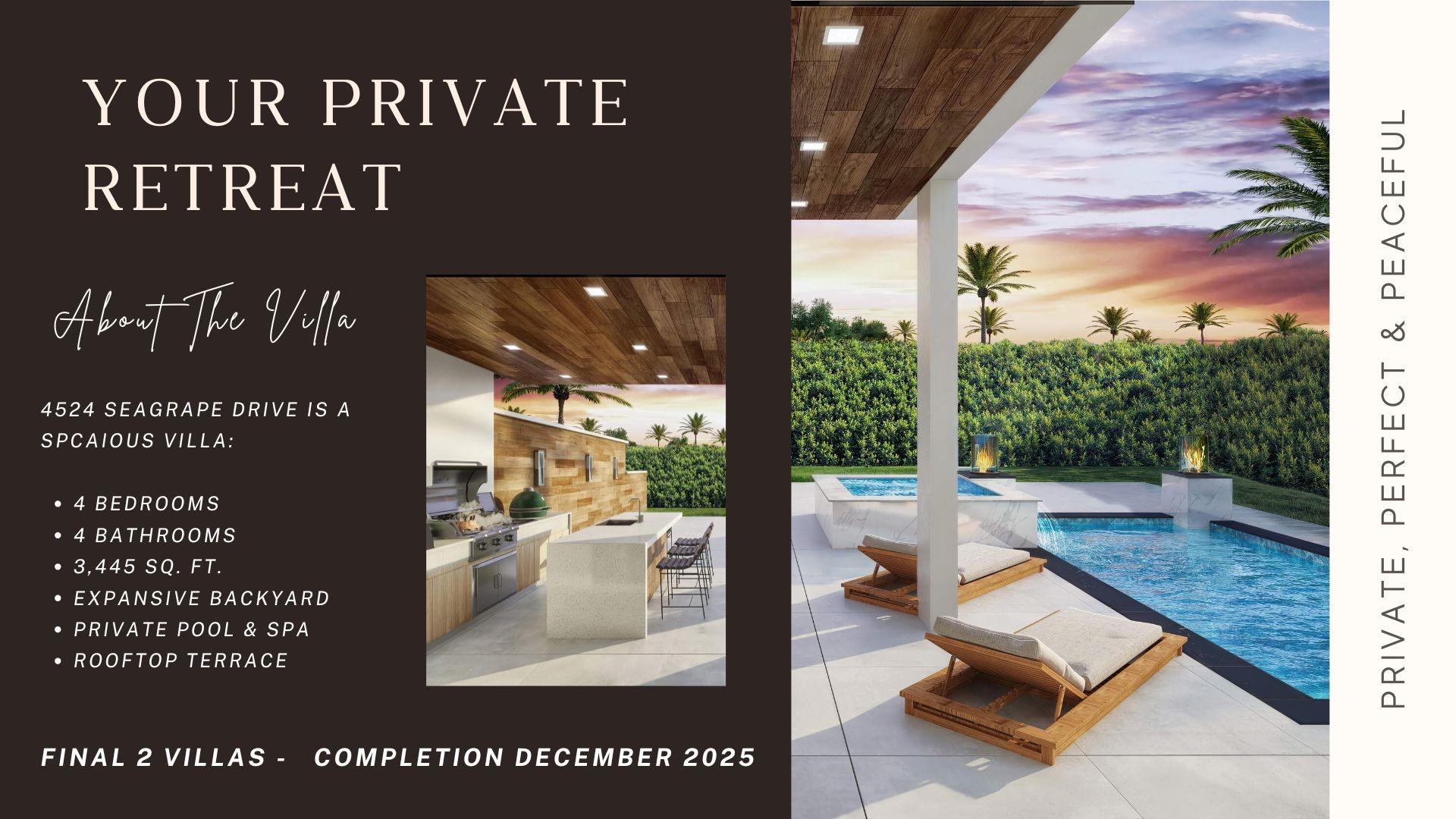 3 blocks from the beach Completion December 2025 This luxurious villa offers an unparalleled vacation-like lifestyle. Private backyard includes pool with heater/chiller, Outdoor Fireplace, Summer Kitchen. Boat Dock Optional offering deepwater access. Custom Kitchen Features top-of-the-line appliances Gas Cooktop, 42in refrigerator hidden walk-in pantry & wine bar. Cabinetry imported from Germany enhances elegance & functionality Oversized master bedroom boasts private balcony. Luxurious bathroom features including Rain Dome shower, slipper tub,dual vanities. Private Elevator adds accessibility throughout the villa Private Driveway accommodates 4 vehicles, garage can house 4 cars thanks to a car lift system. Make this dream home your reality.