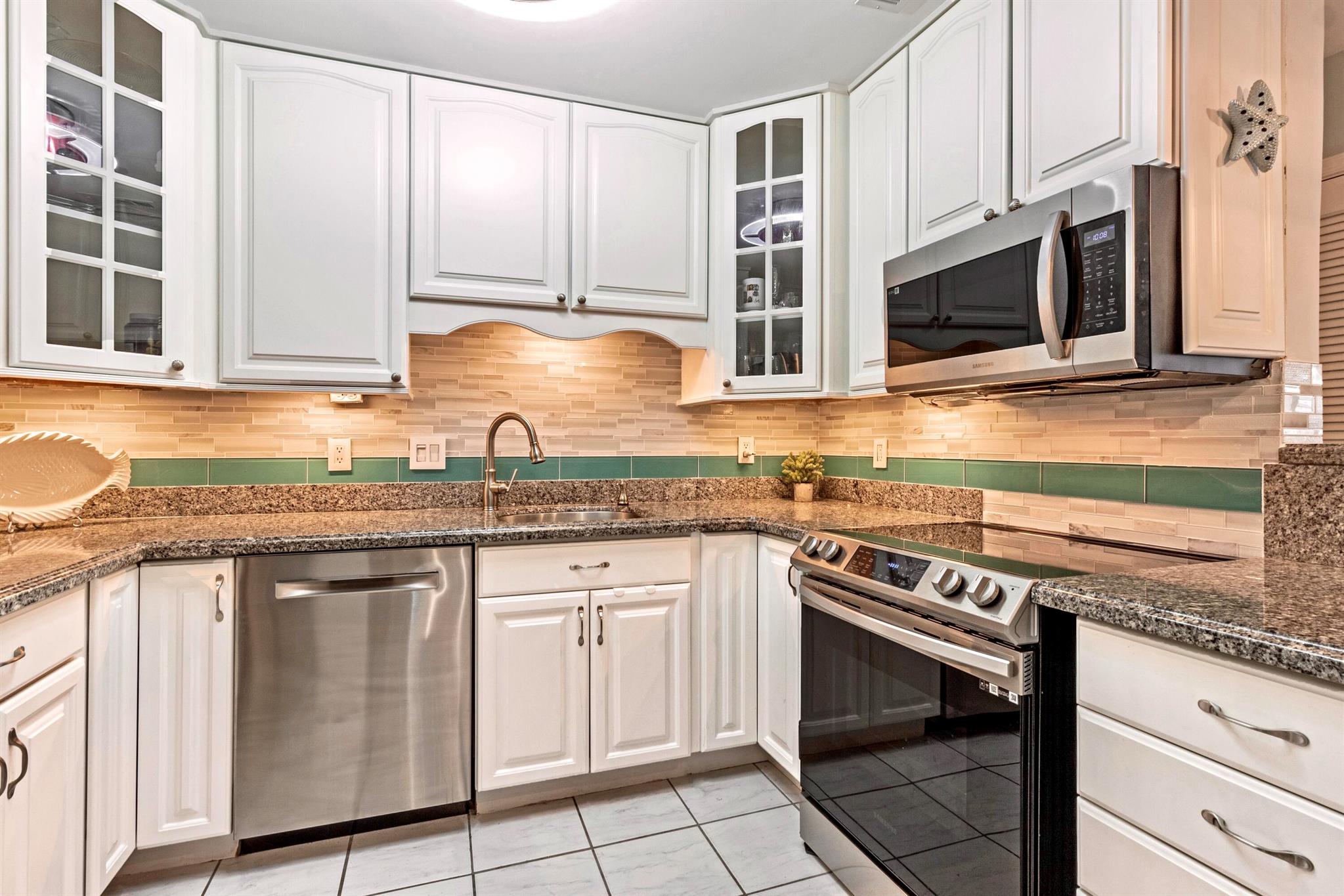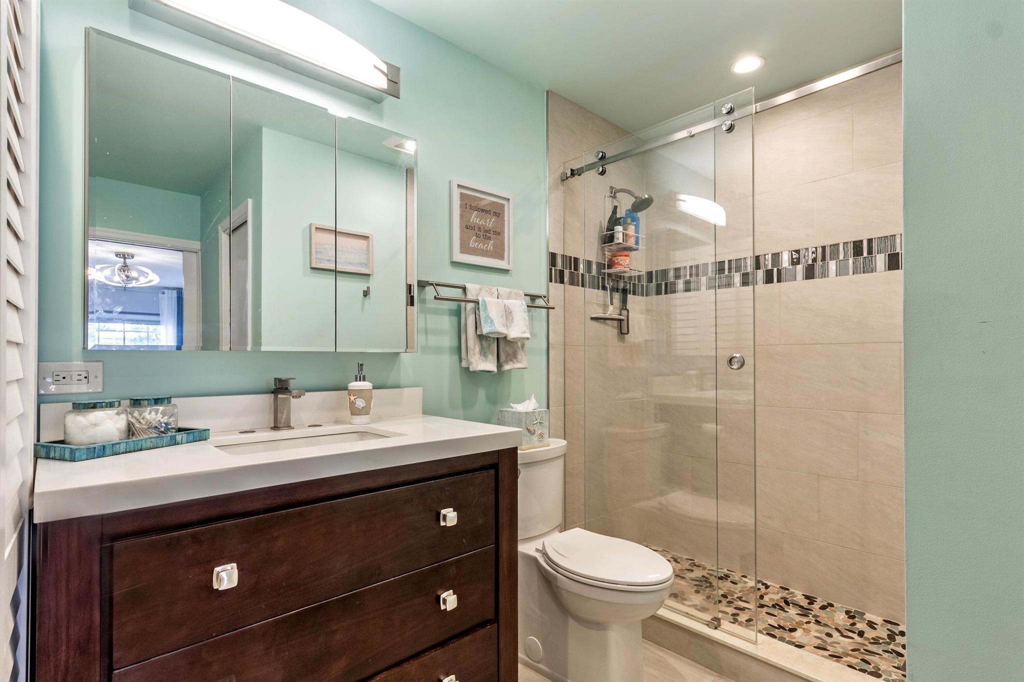 Beautifully remodeled, modern, coastal style large open plan condo. Bay colony is located on the intracoastal with Boat dock $1.50/ft/month,when available, tennis & pickle ball, 4 recreation centers w/heated pools & grills, bike storage, gym, lush tropical landscaping,24 hr security and manned guard gate. Full size W/D inside unit. LARGEST storage room available. Newer AC, water heater & water filtration system. Granite counters, undermount sink w/new faucet and disposal.. Impact windows and sliders. Patio opened up to LV for more space. Barn doors into the guest room for privacy. This is an active,fun, safe, super community on the intercoastal close to Lauderdale by the Sea, shopping, dining. Can rent immediately 2x a year. Includes water, sewer, trash, cable WiFi New appliances