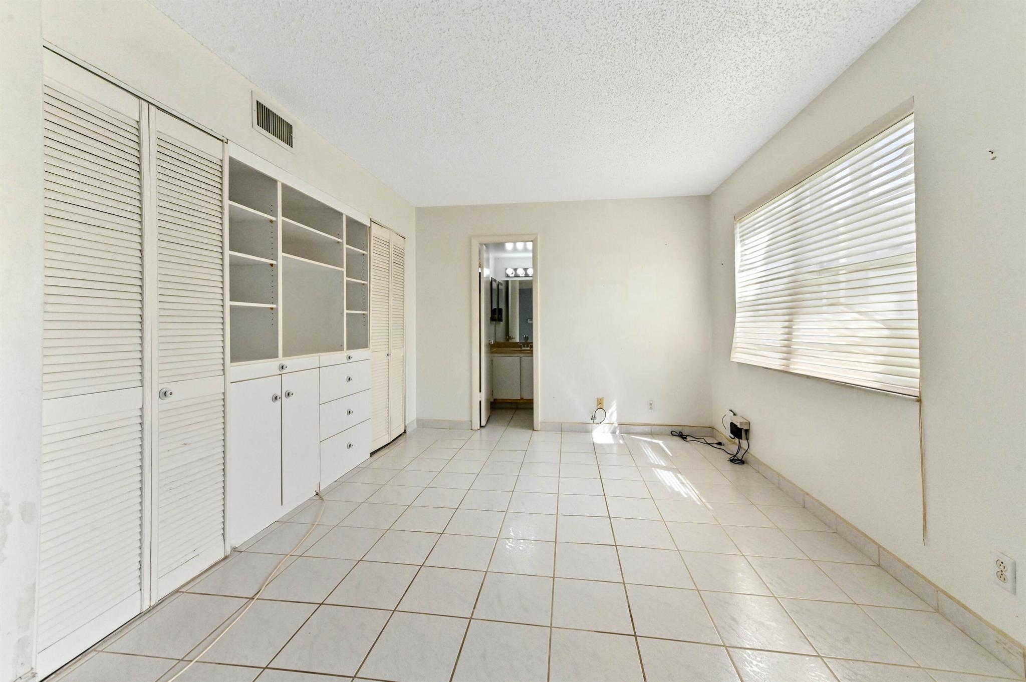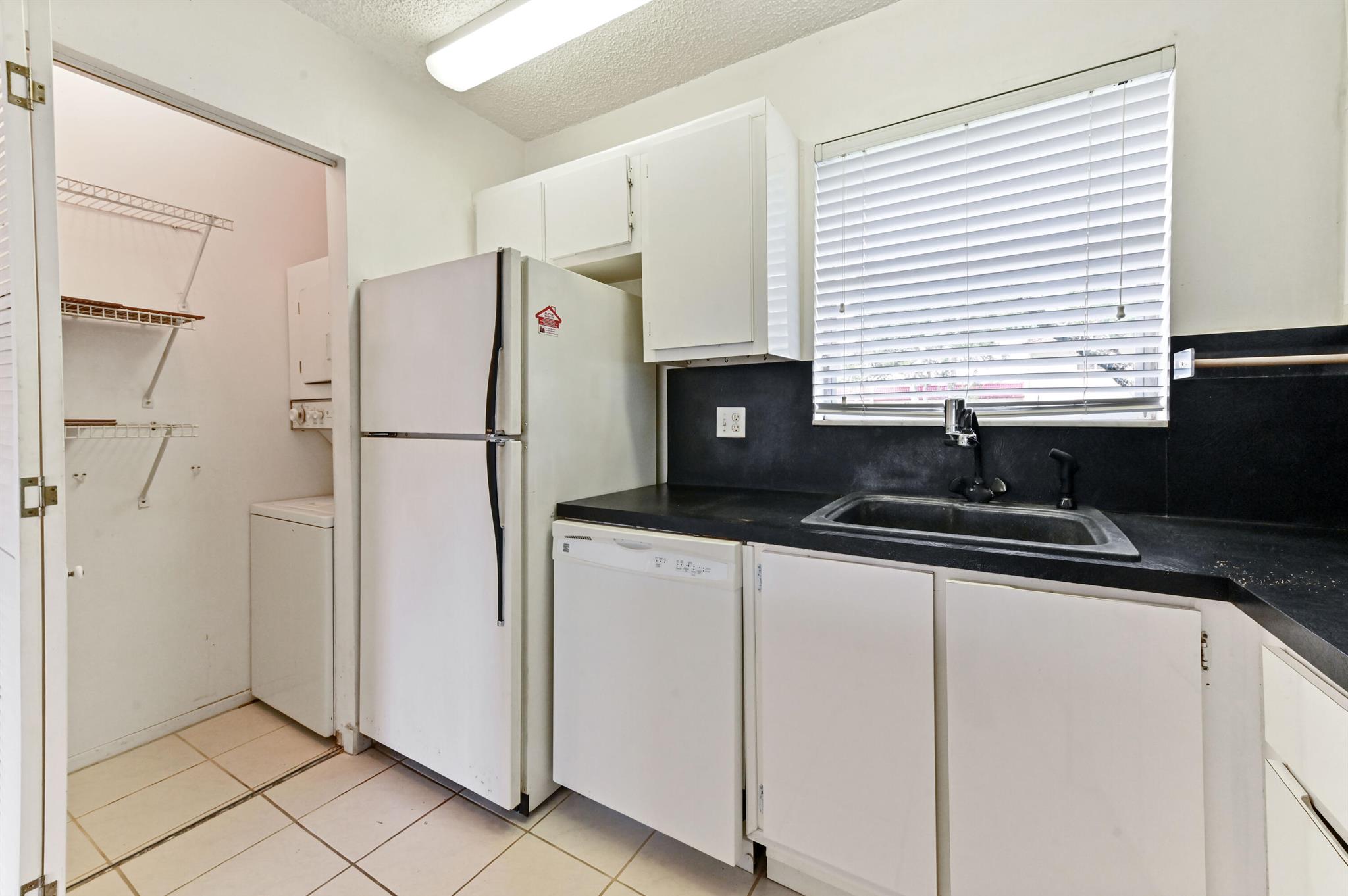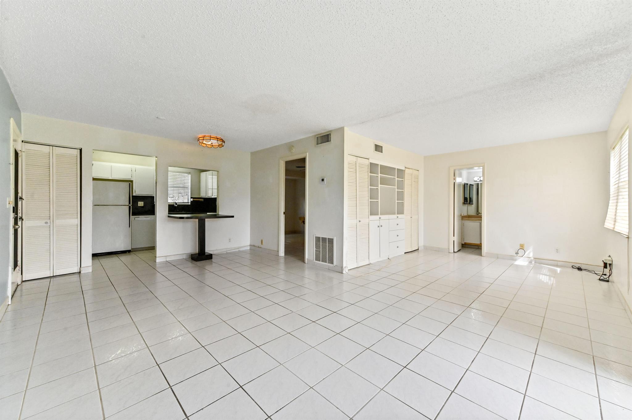 Welcome to this charming first-floor, 2-bedroom, 2-bath convertible condominium, offering a bright and open living space that's perfect for both relaxation and entertaining. The second bedroom, currently part of the great room, can easily be restored to its original layout, providing true versatility. Tiled throughout, this home features the convenience of a stackable washer and dryer, and the master bedroom boasts a spacious walk-in closet and en suite bath for added privacy and comfort. AC 1 year old, assigned parking and storage space adjacent to the condo.