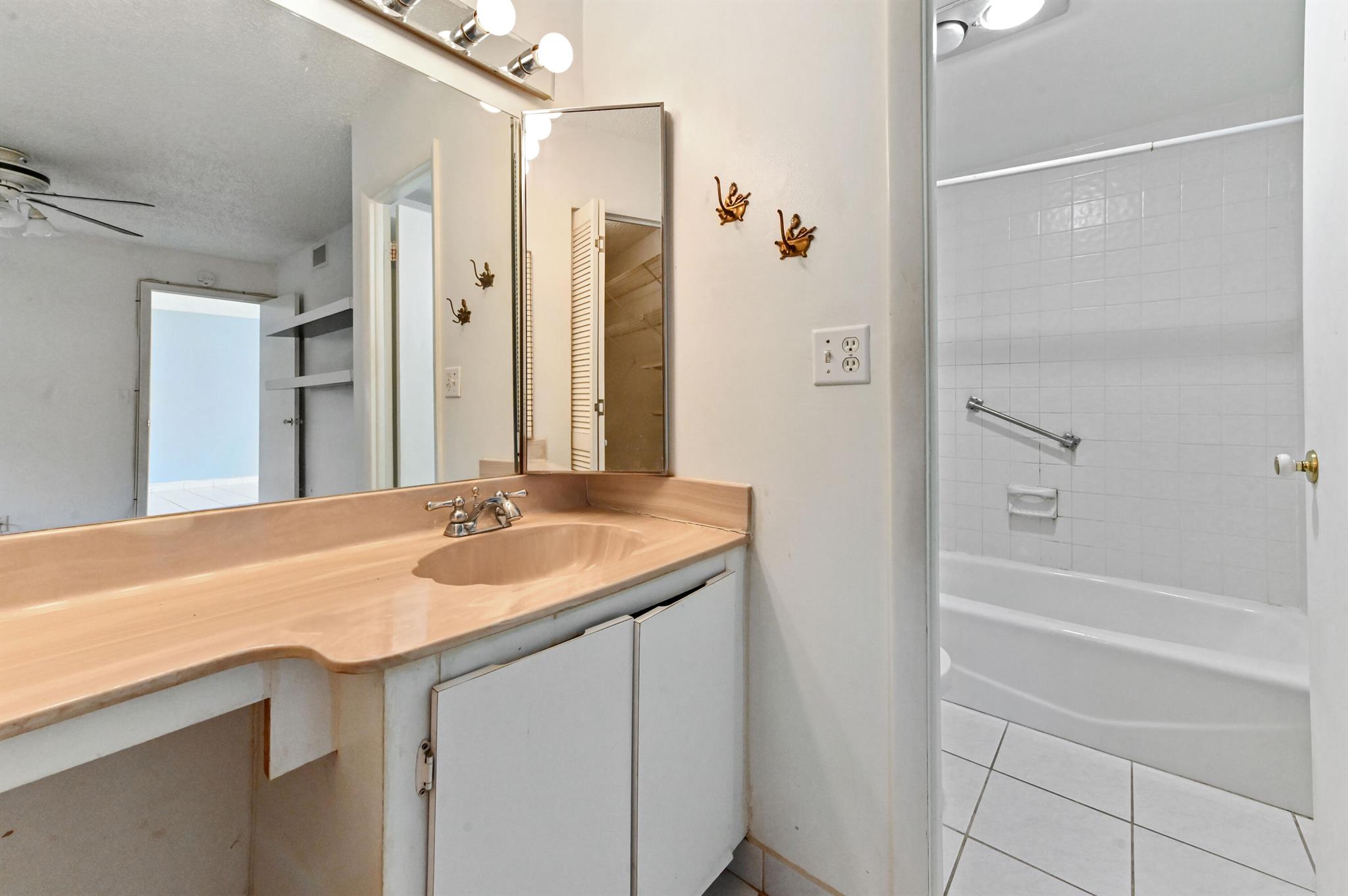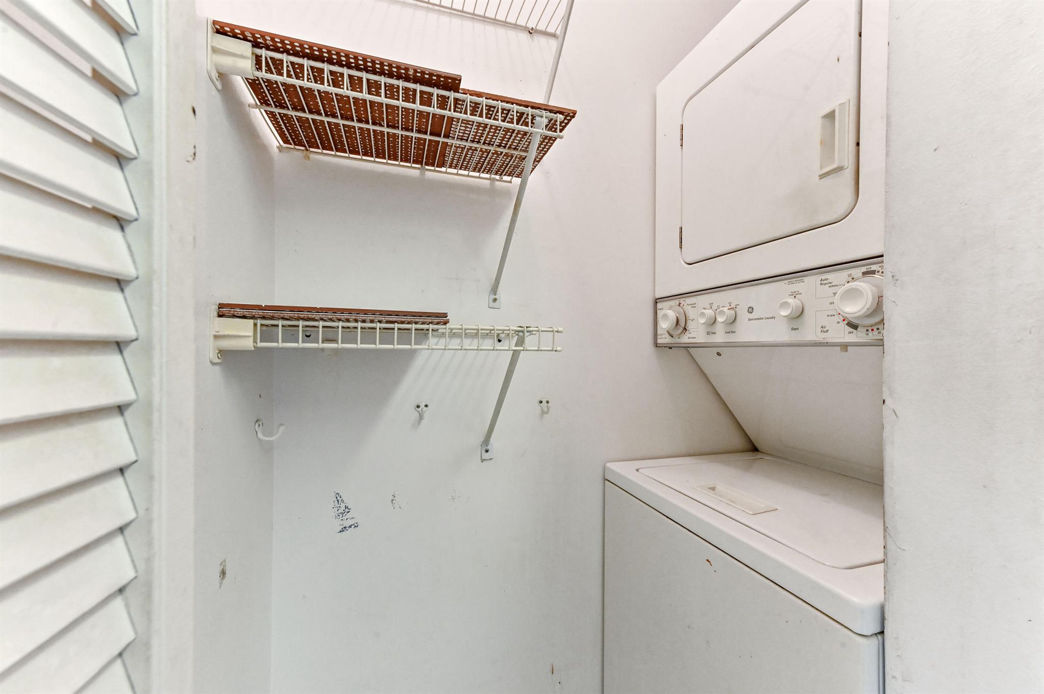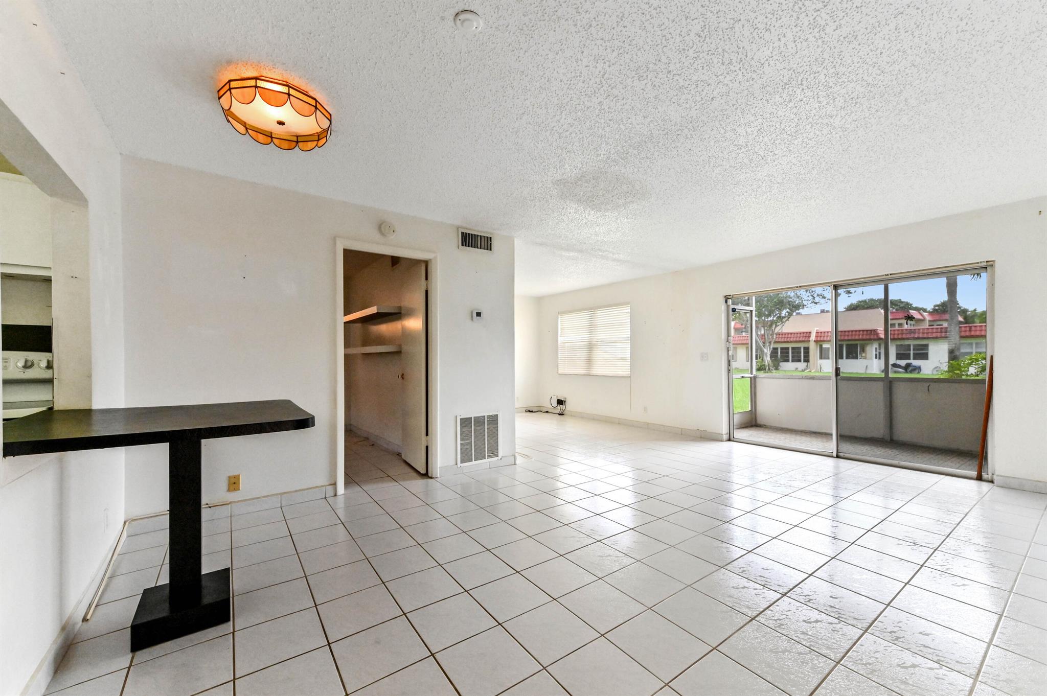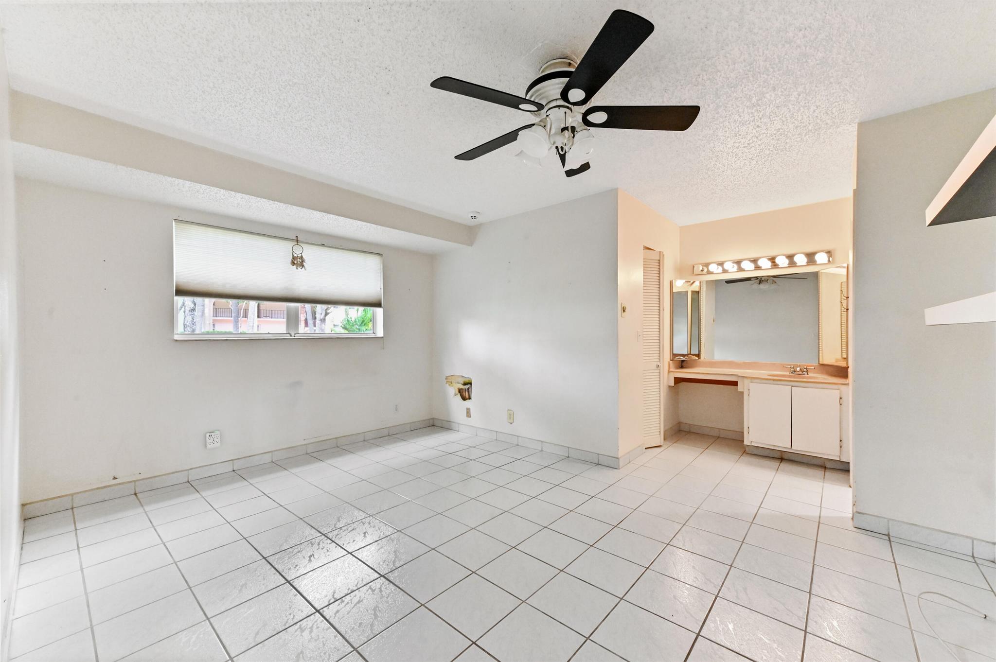 Welcome to this charming first-floor, 2-bedroom, 2-bath convertible condominium, offering a bright and open living space that's perfect for both relaxation and entertaining. The second bedroom, currently part of the great room, can easily be restored to its original layout, providing true versatility. Tiled throughout, this home features the convenience of a stackable washer and dryer, and the master bedroom boasts a spacious walk-in closet and en suite bath for added privacy and comfort. AC 1 year old, assigned parking and storage space adjacent to the condo.