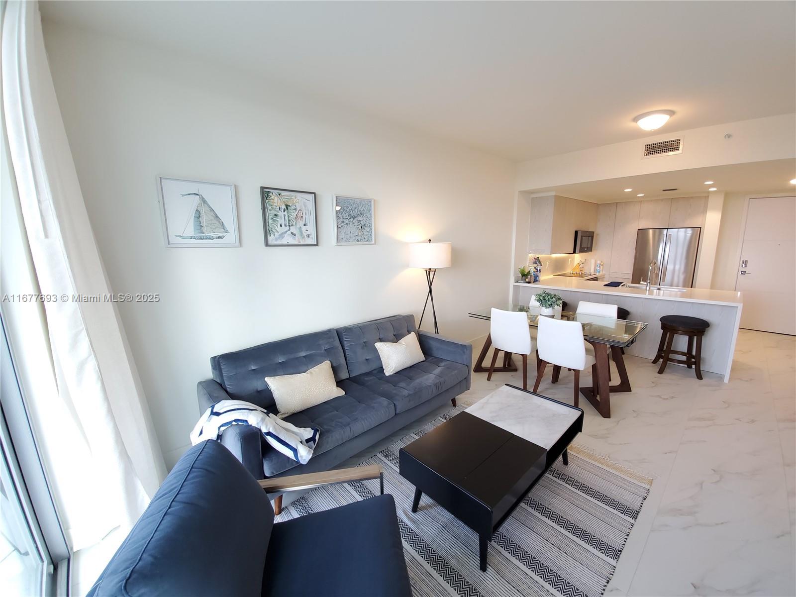LOWEST PRICED 1 BEDROOM PLUS DEN, 2 BATHROOMS 700 sqft UNIT IN METROPICA!!! Fully & tastefully furnished with top of the line furniture, decorated & ready for move-in, or short or long term rentals. Over $10K in furnishings included. Can rent for 90 days minimum 4 times a year, or for 1 year. Rented at $2,550 a month until 06/30/2026. Large 1/1 plus den unit with balcony. The den has a sofa bed for overnight guests. 2 LED TVs, decoration, silverware, cooking utensils, linen, everything you can imagine comes with it. Washer and dryer in unit. Hurricane impact windows. Luxurious 2020 building, resort style amenities: state-of-the-art gym, spa, sauna, steam room, business center, kid's room, party room, club room, guest suite, infinity edge pool, jacuzzi, BBQ, 2 tennis, 24 hour security