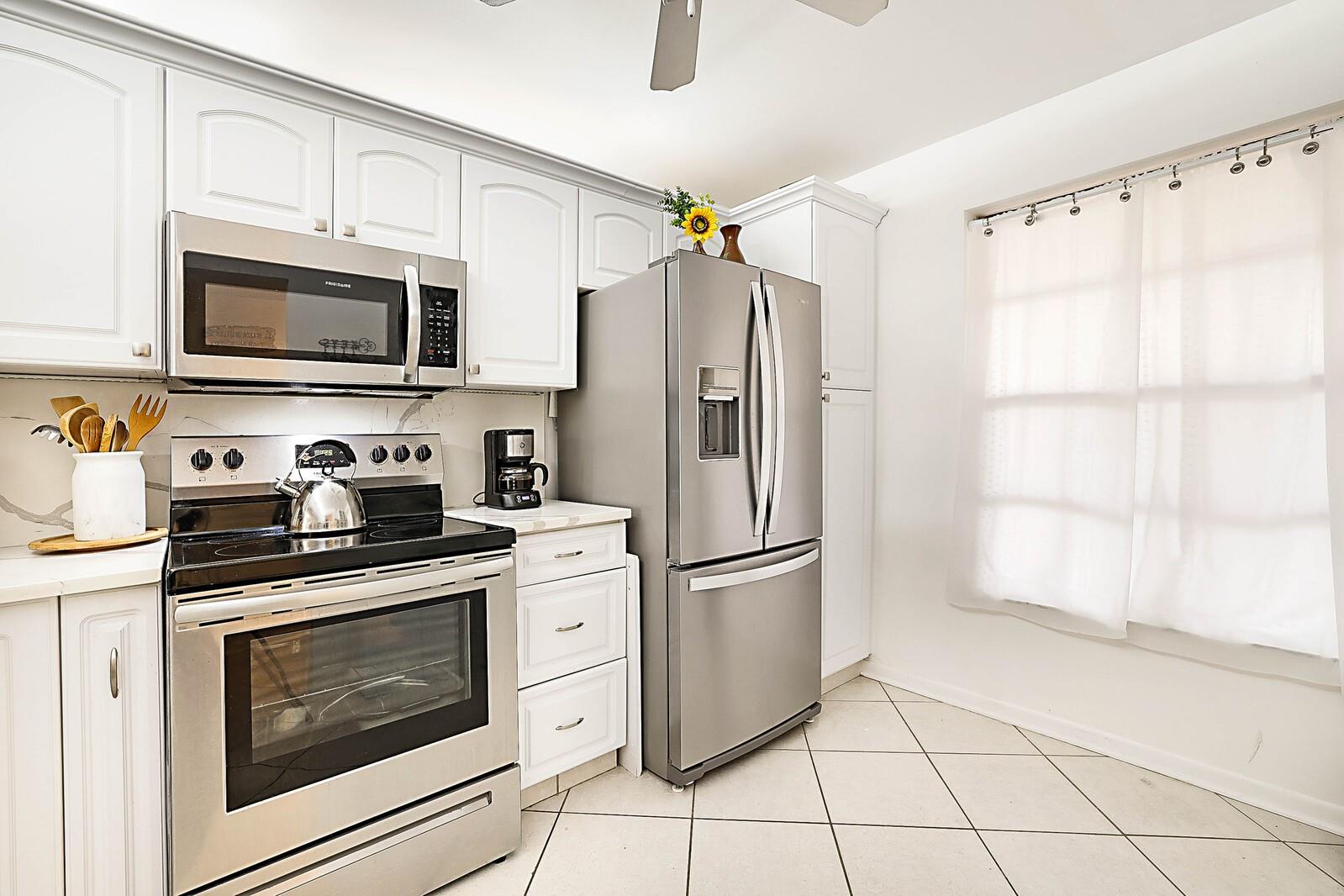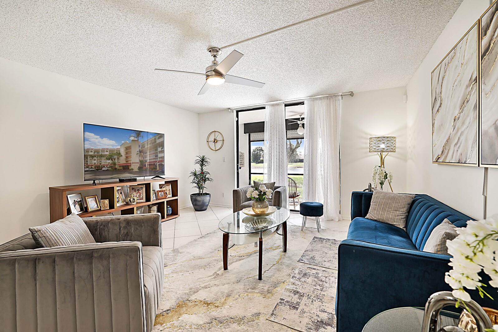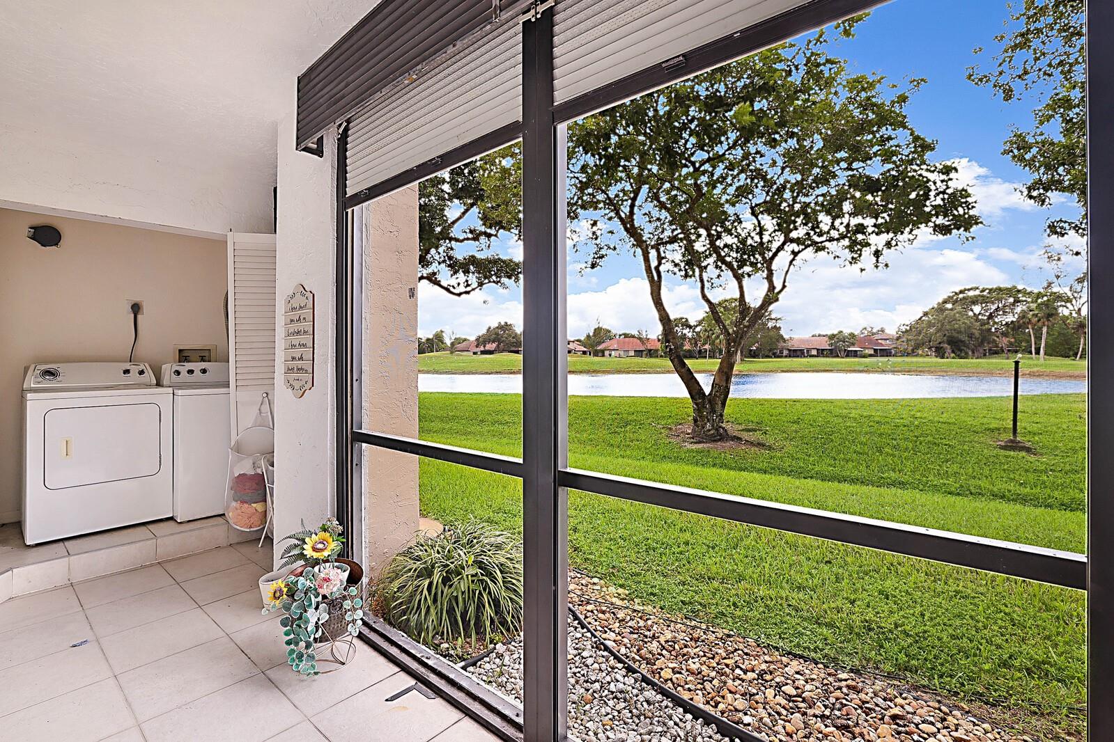 CORNER UNIT! FIRST FLOOR. 55+ Community. This beautiful 2/2 apartment features remodeled kitchen equipped with white cabinets, elegant quartz countertops & new stainless-steel appliances. Two full bathrooms and in-unit washer & dryer. Tile flooring throughout. Corner unit gives you added natural light. Located on the first floor for easy entrance. Parking easily accessible right in front. The extra-large screened porch, accessible from both the master bedroom and living room, offers tranquil views of the water, nature, and stunning sunsets, complemented by roller shutters for storm protection. The community boasts a well-appointed center, pool, gym, and various activities, all within proximity to restaurants and shopping malls, making it must-see. Nature all around won’t disappoint.