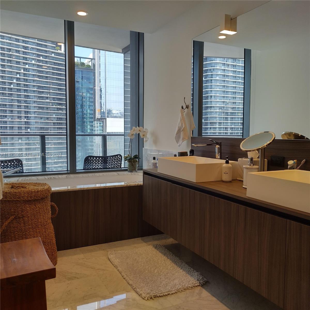 AMAZING Fully Furnished Corner 2/2 1/2 plus DEN, luxury finishing, wraparound balconies with access from both bedrooms and living areas. Top of the line Miele appliances, Italian cabinetry and doors. 9 feet ceiling height,porcelanato floor with incredible views. High-end amenities with lounge room movie theater, kids game room, 1 parking assigned + 1 right to valet, Sky club Rooftop on 64th floor with fitness center and Spa, concierge 24/7 and more!!