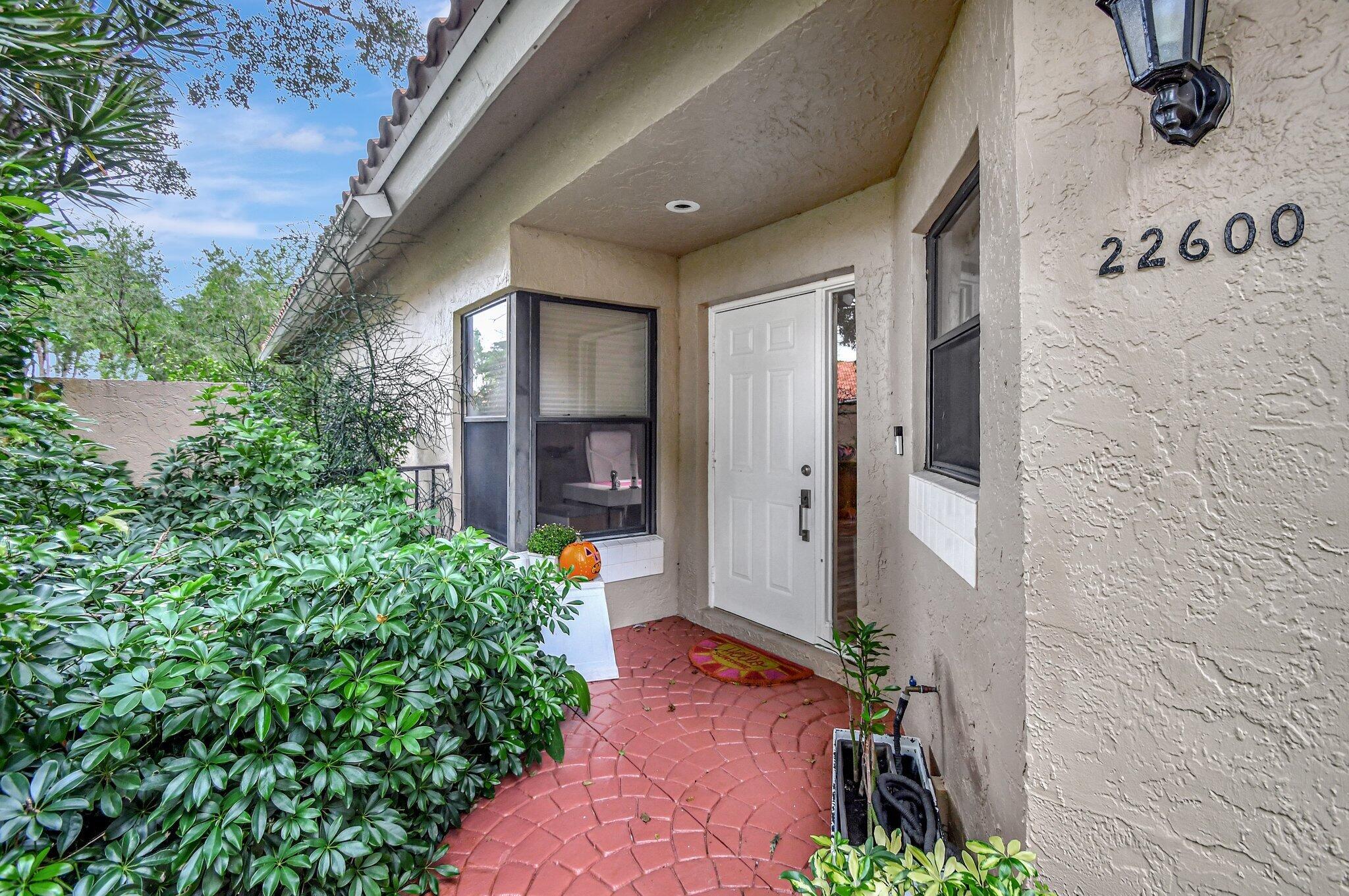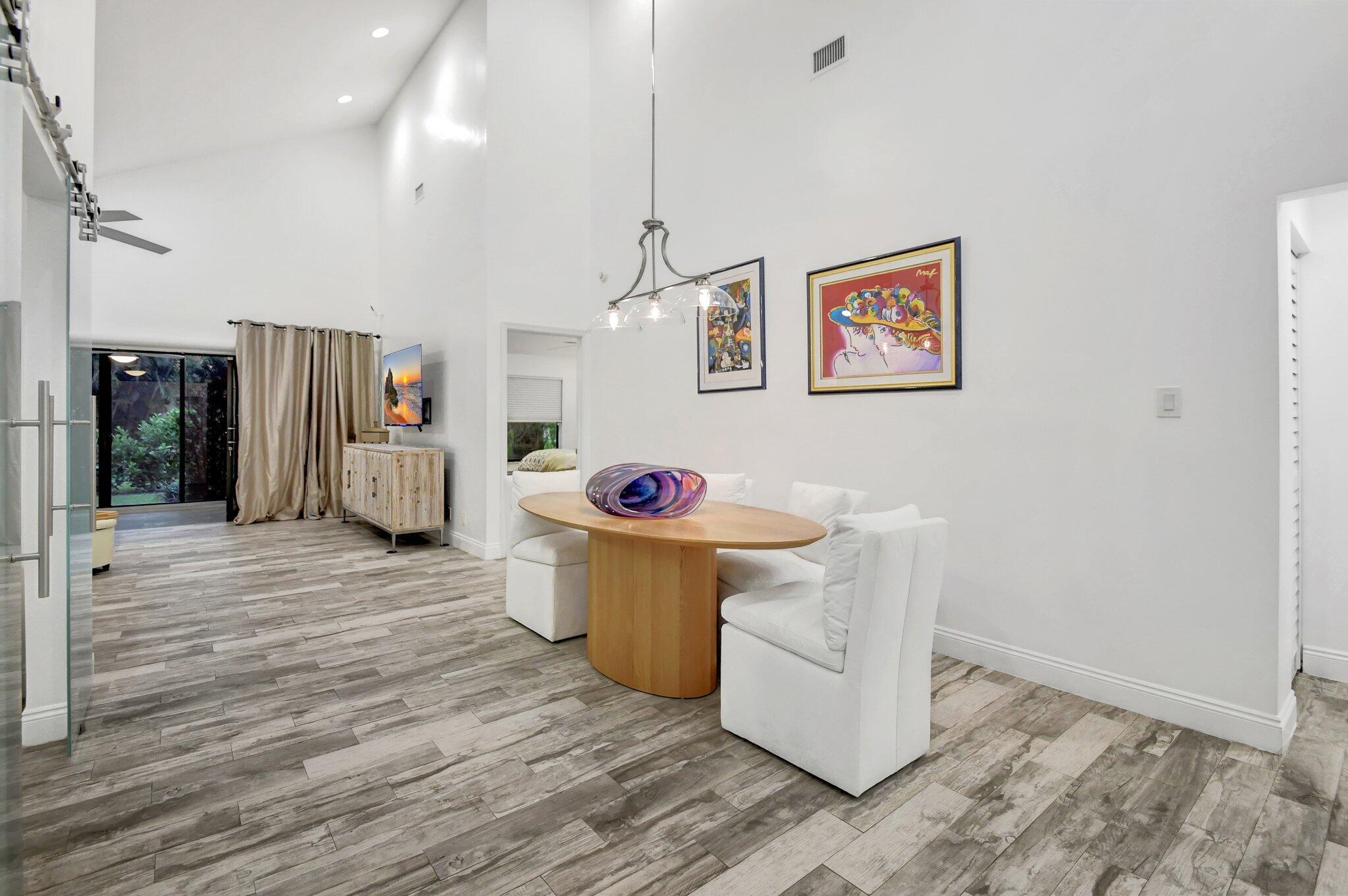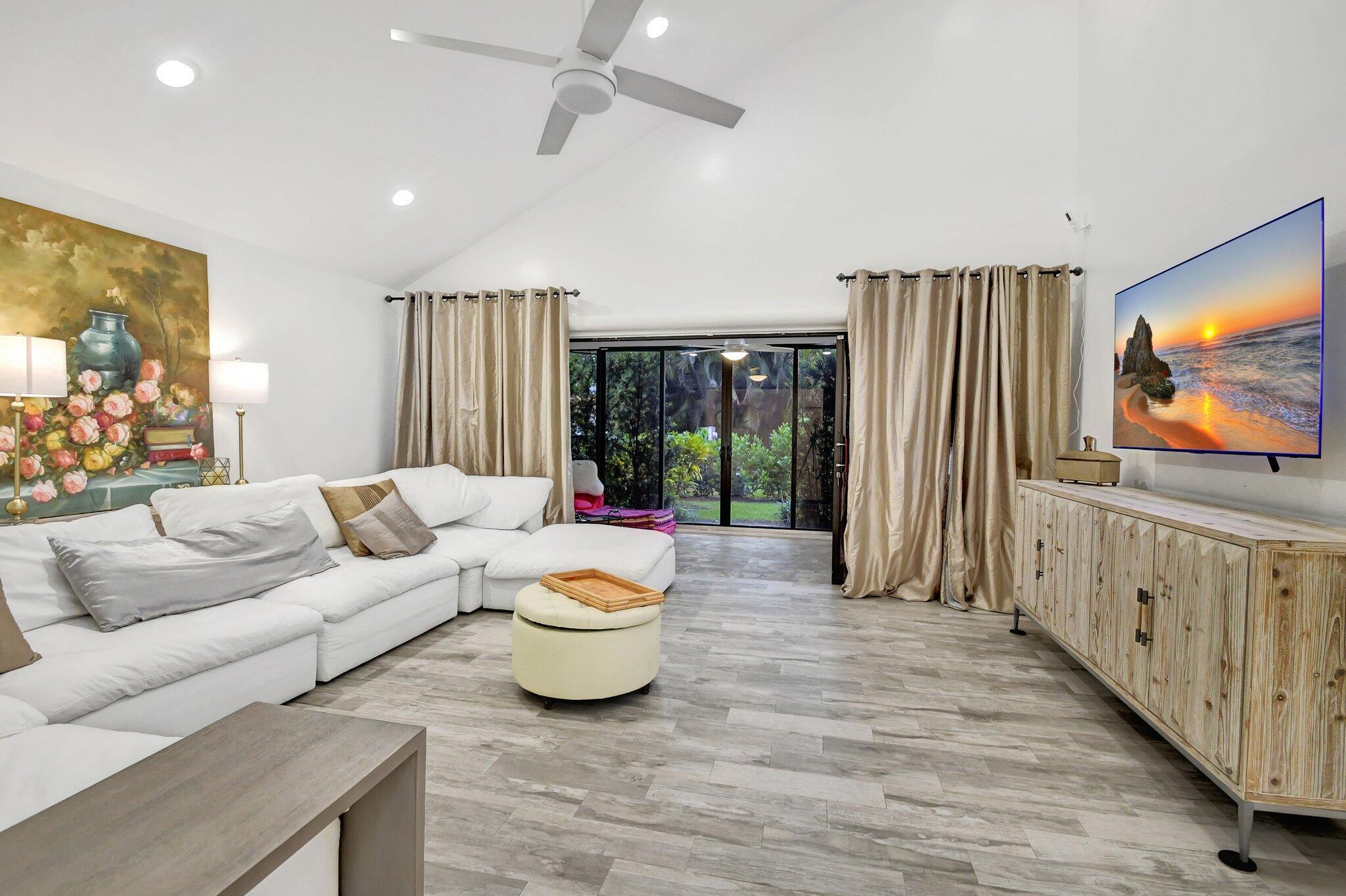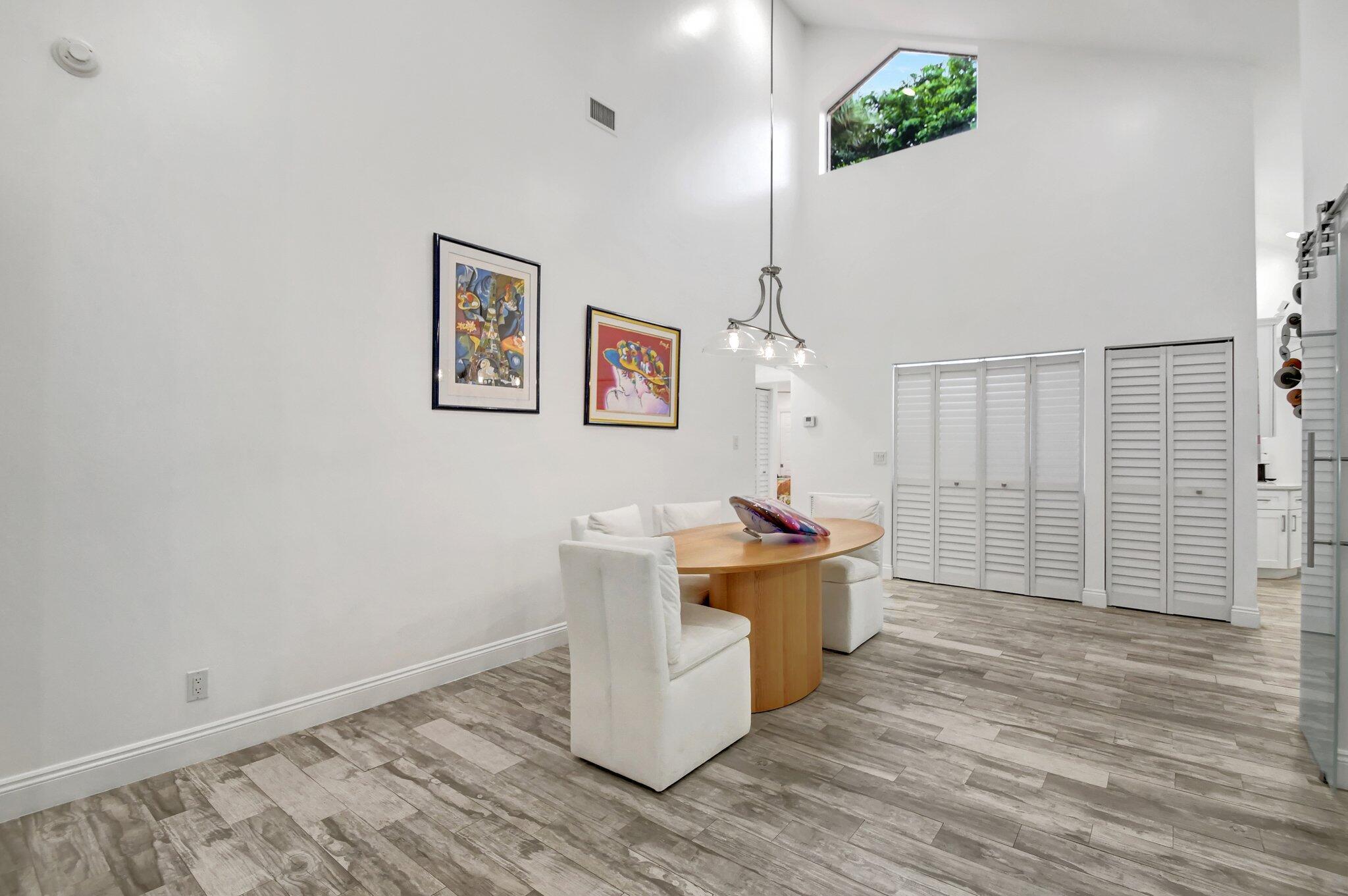 This stunning villa in the highly sought-after Meridiana has been beautifully updated throughout! 2 bedrooms plus a versatile den or 3rd bedroom. Spacious, enclosed air-conditioned sunroom with hurricane impact windows. Volume ceilings, beautiful tile flooring, smooth ceilings with hi-hat lighting, fresh paint, and new window treatments. Kitchen has white cabinetry, quartz counters, stainless steel appliances. Master suite offers a built-in walk-in closet with a safe. Master bath features double sinks, an extra-large shower, and a quartz-topped vanity. 2nd bedroom has a custom walk-in closet, and the den is enhanced with a sleek barn door for added privacy. A/C 2021 and water heater 2018. Situated as an end unit, with private corner location. Community pool and a small clubhouse.