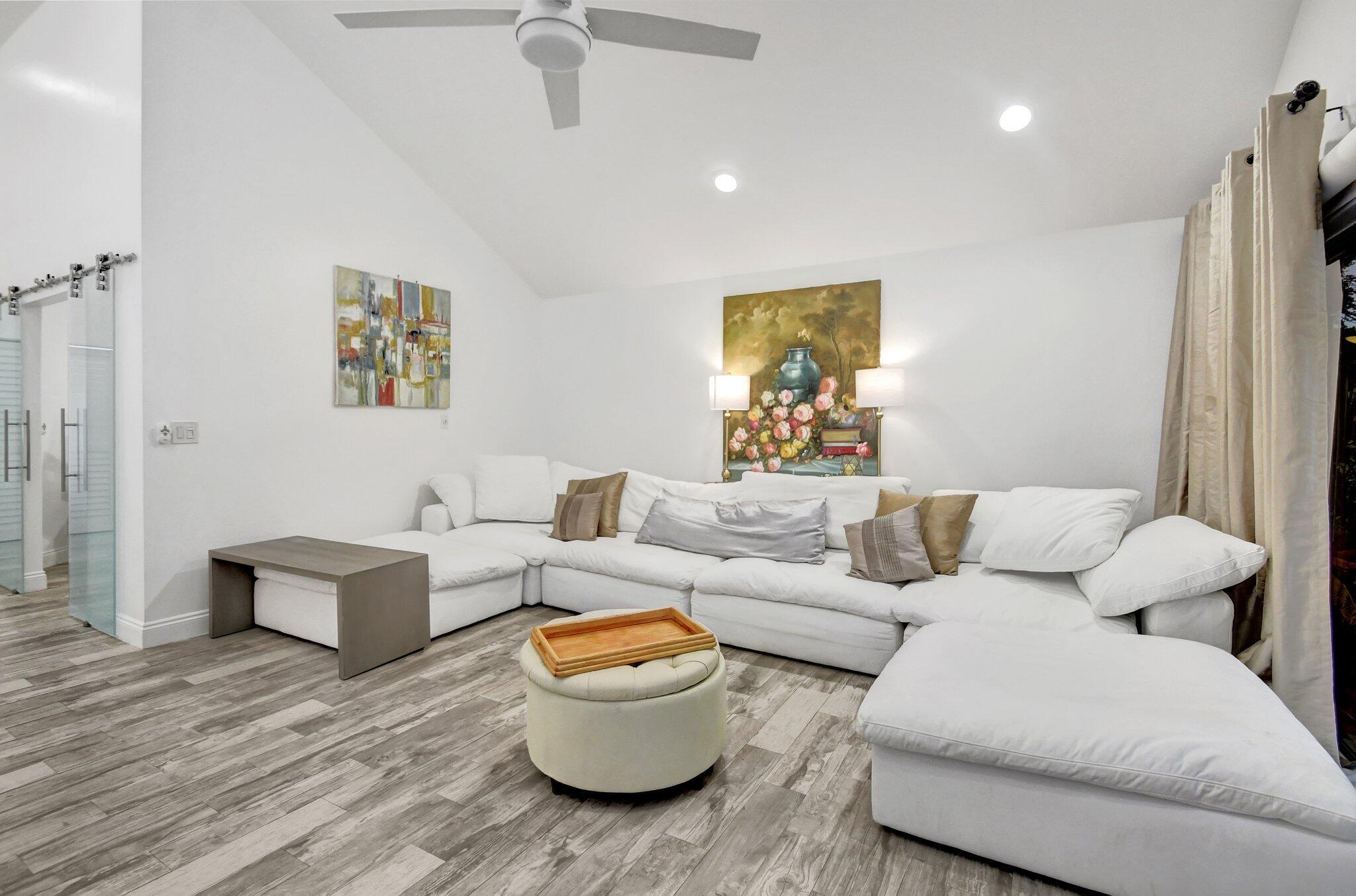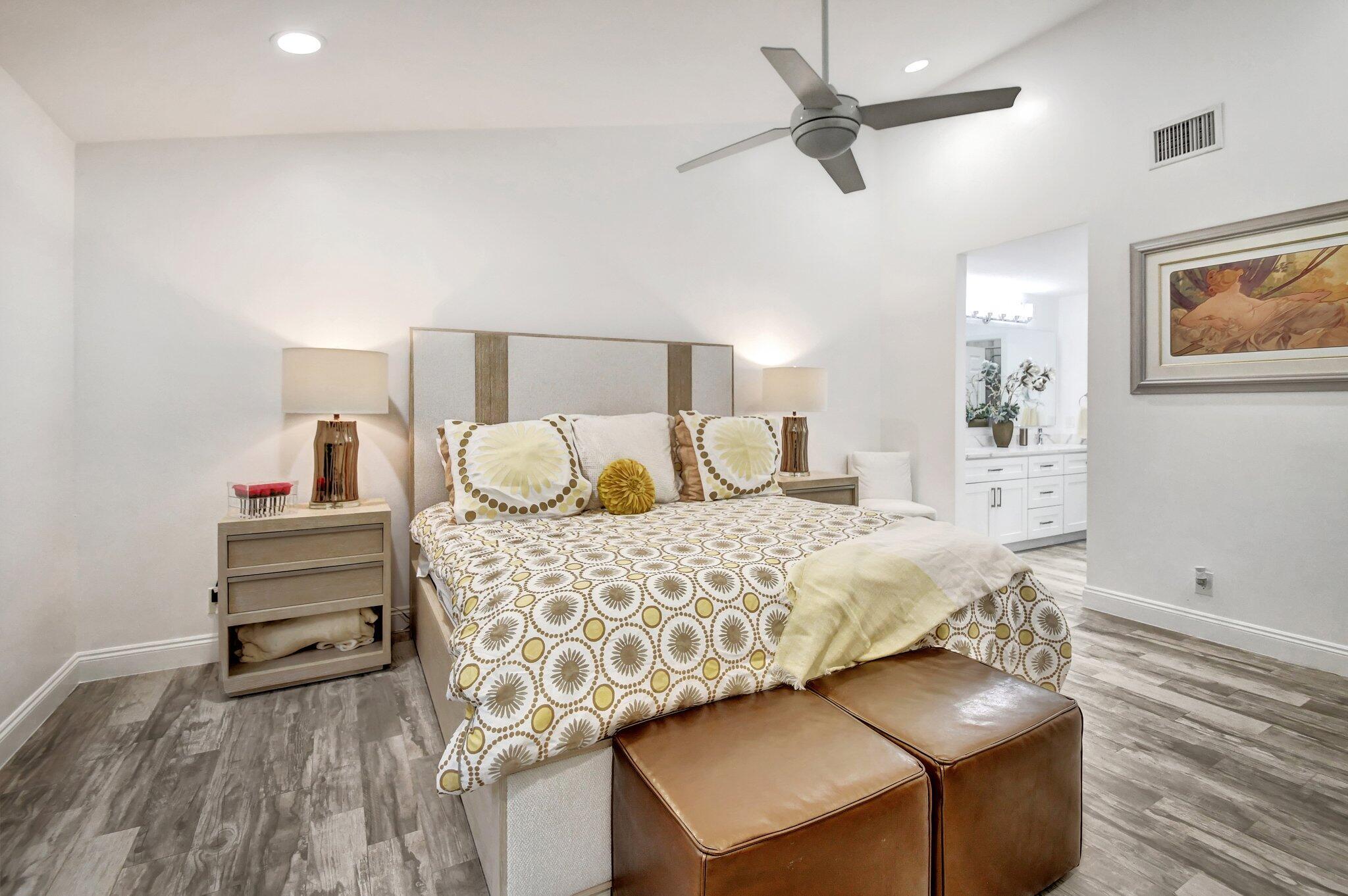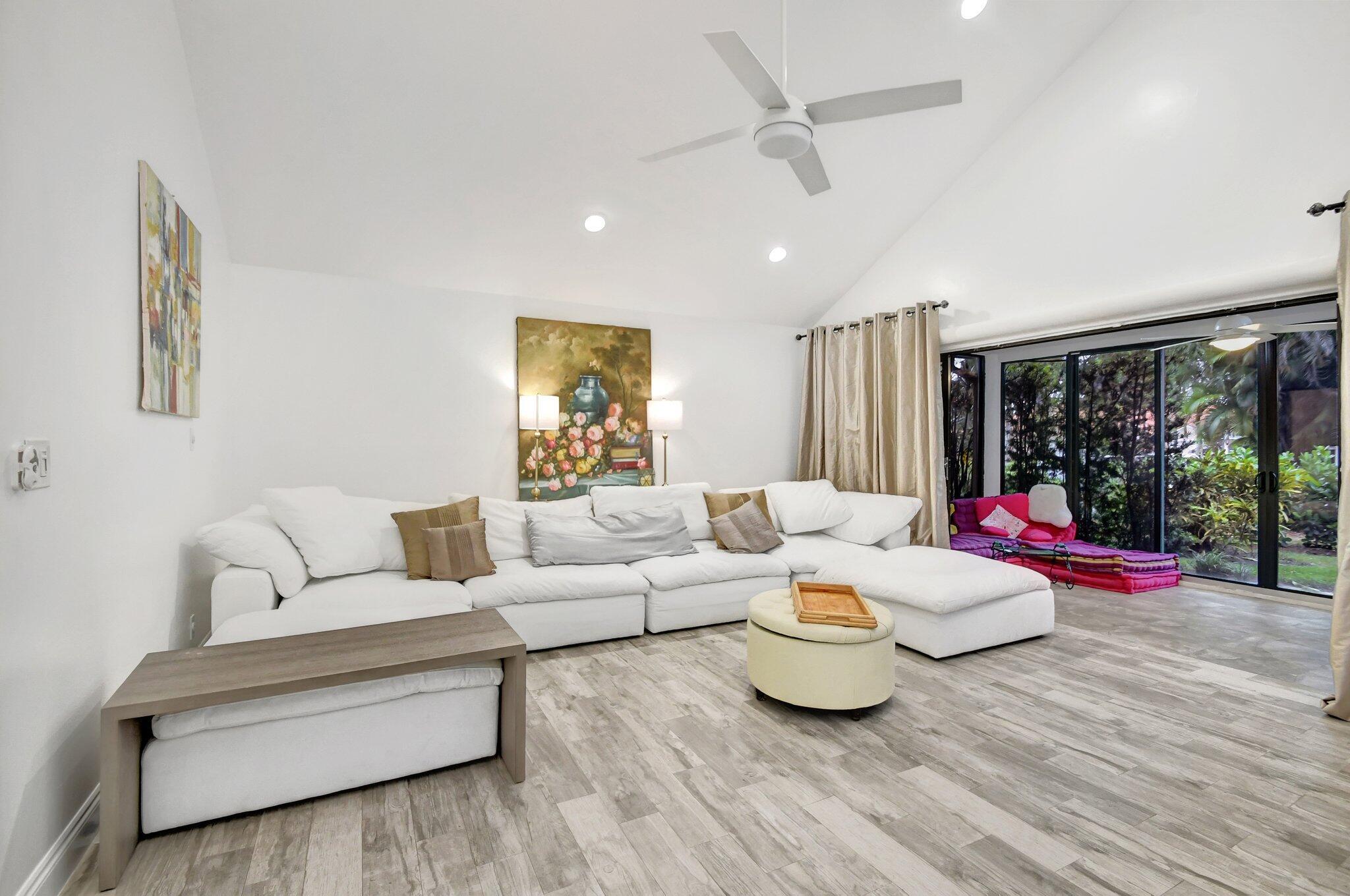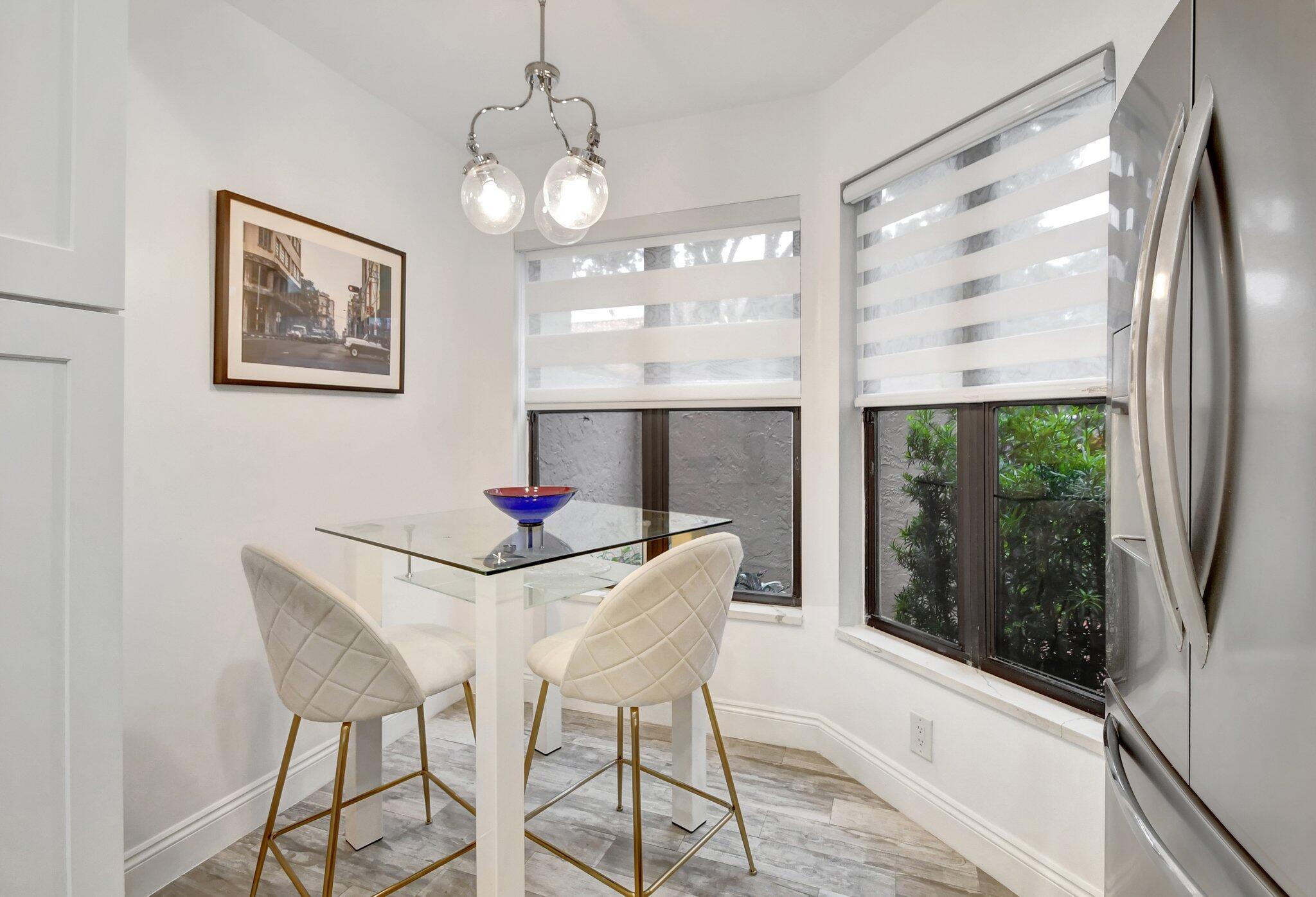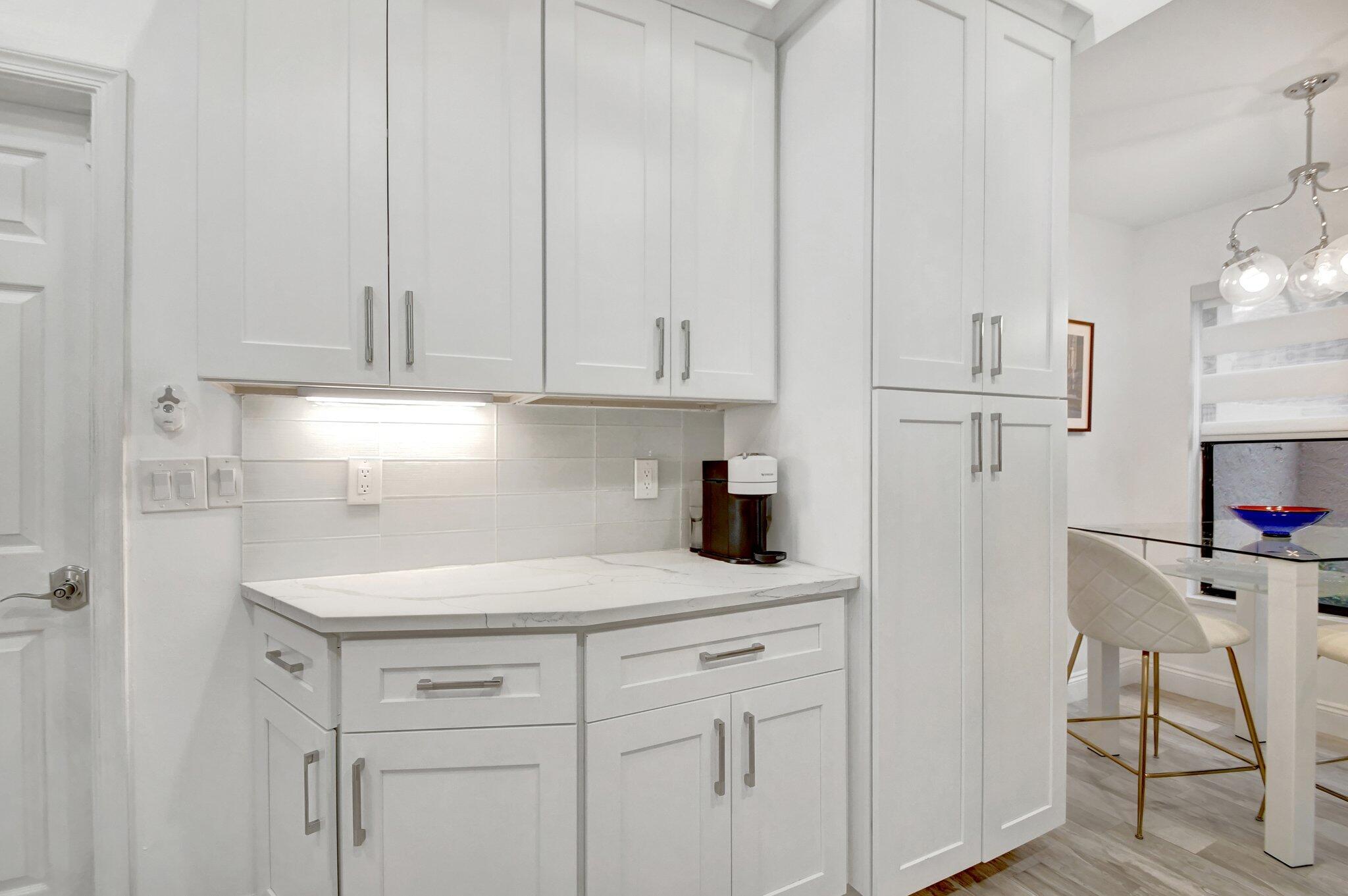 This stunning villa in the highly sought-after Meridiana has been beautifully updated throughout! 2 bedrooms plus a versatile den or 3rd bedroom. Spacious, enclosed air-conditioned sunroom with hurricane impact windows. Volume ceilings, beautiful tile flooring, smooth ceilings with hi-hat lighting, fresh paint, and new window treatments. Kitchen has white cabinetry, quartz counters, stainless steel appliances. Master suite offers a built-in walk-in closet with a safe. Master bath features double sinks, an extra-large shower, and a quartz-topped vanity. 2nd bedroom has a custom walk-in closet, and the den is enhanced with a sleek barn door for added privacy. A/C 2021 and water heater 2018. Situated as an end unit, with private corner location. Community pool and a small clubhouse.