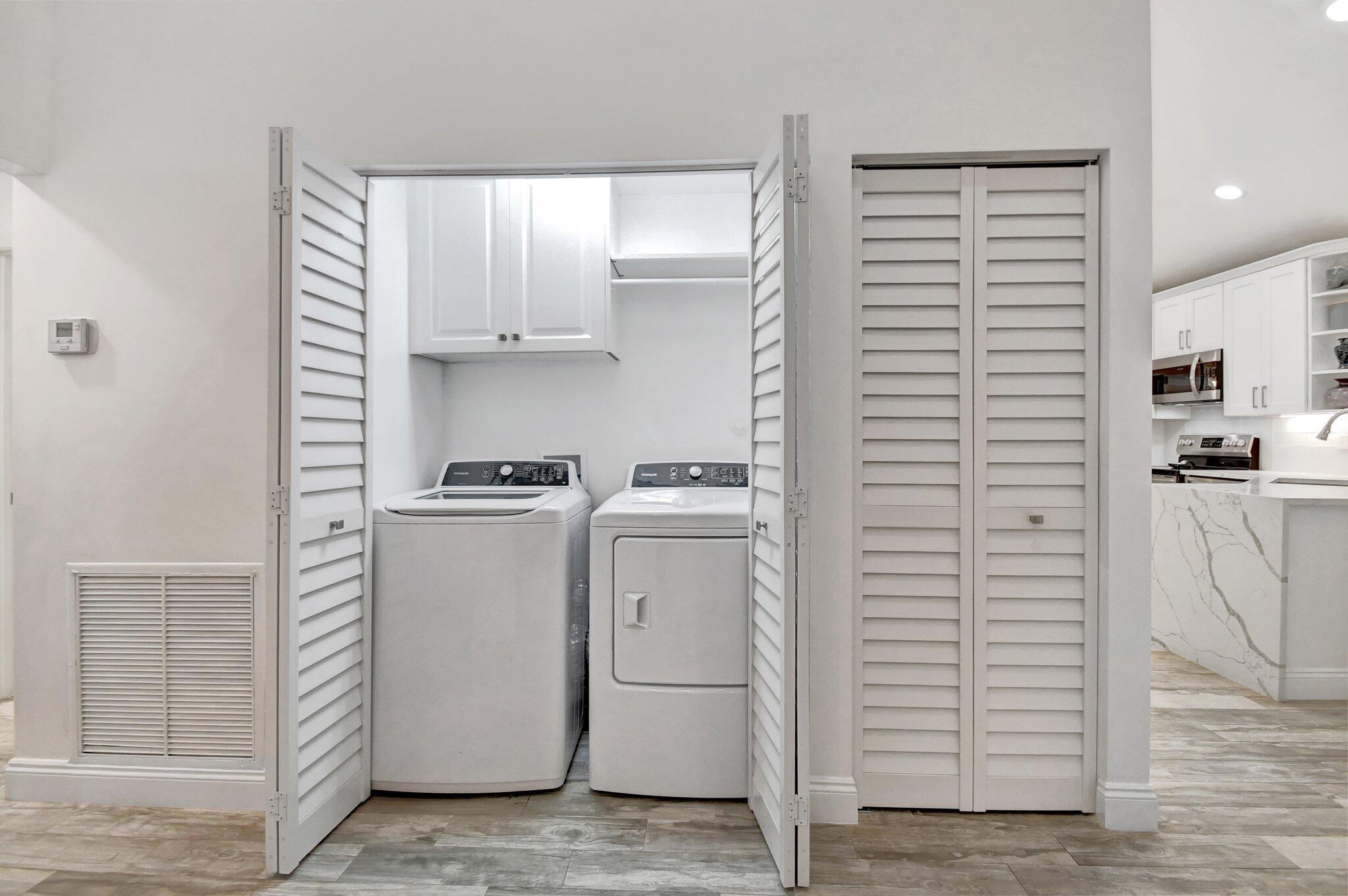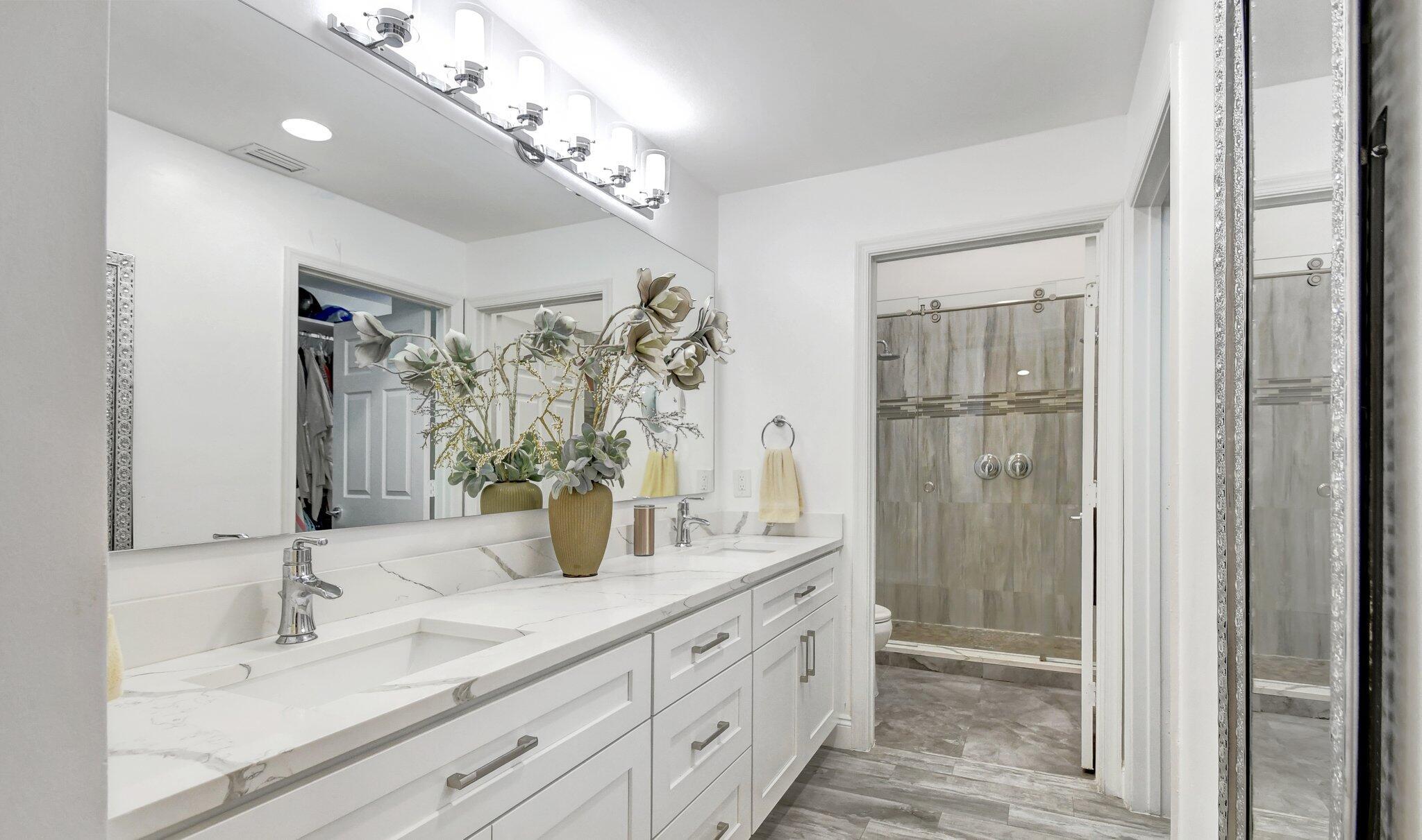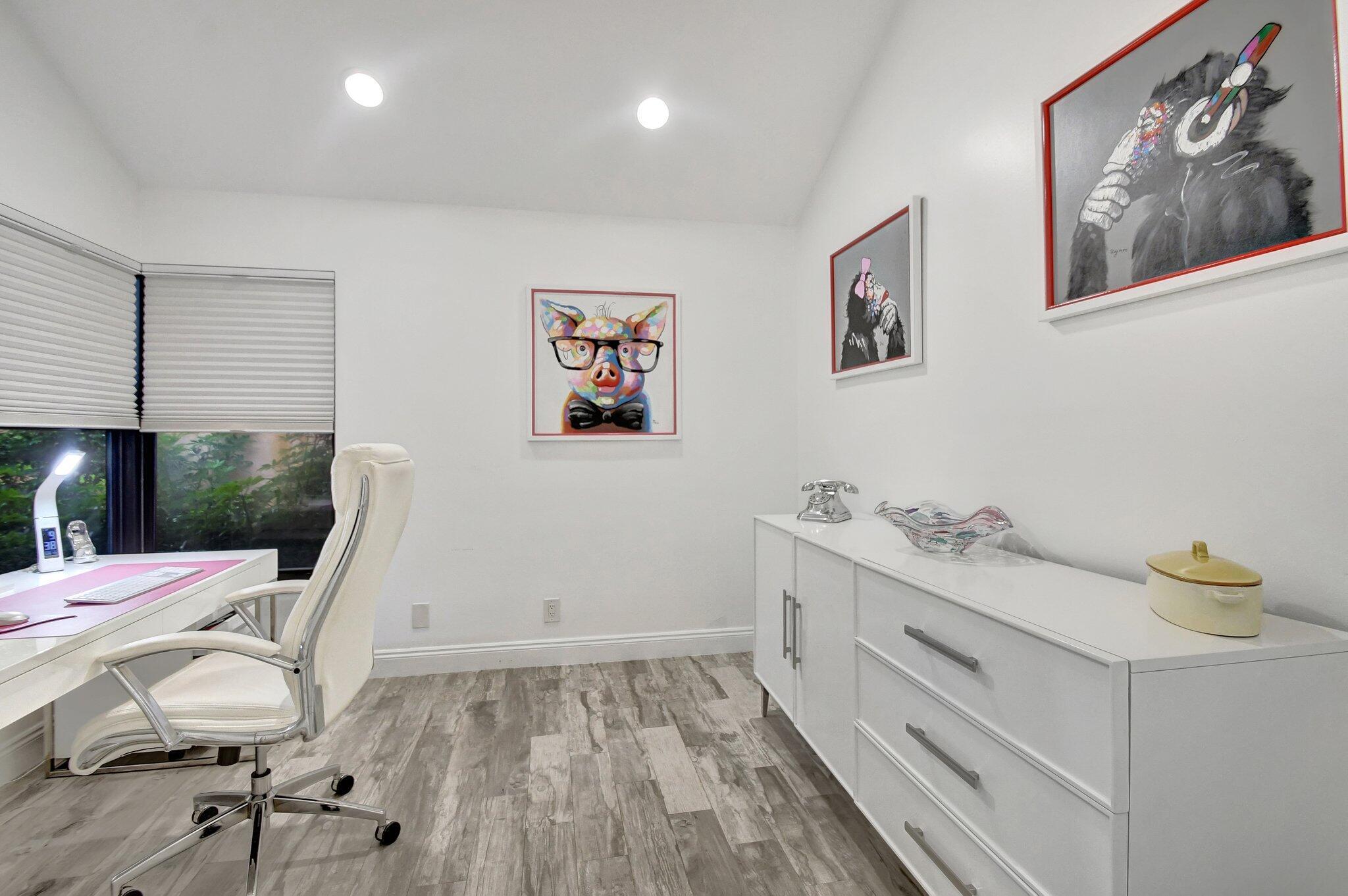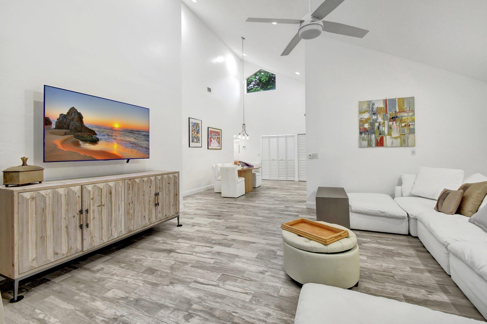 This stunning villa in the highly sought-after Meridiana has been beautifully updated throughout! 2 bedrooms plus a versatile den or 3rd bedroom. Spacious, enclosed air-conditioned sunroom with hurricane impact windows. Volume ceilings, beautiful tile flooring, smooth ceilings with hi-hat lighting, fresh paint, and new window treatments. Kitchen has white cabinetry, quartz counters, stainless steel appliances. Master suite offers a built-in walk-in closet with a safe. Master bath features double sinks, an extra-large shower, and a quartz-topped vanity. 2nd bedroom has a custom walk-in closet, and the den is enhanced with a sleek barn door for added privacy. A/C 2021 and water heater 2018. Situated as an end unit, with private corner location. Community pool and a small clubhouse.