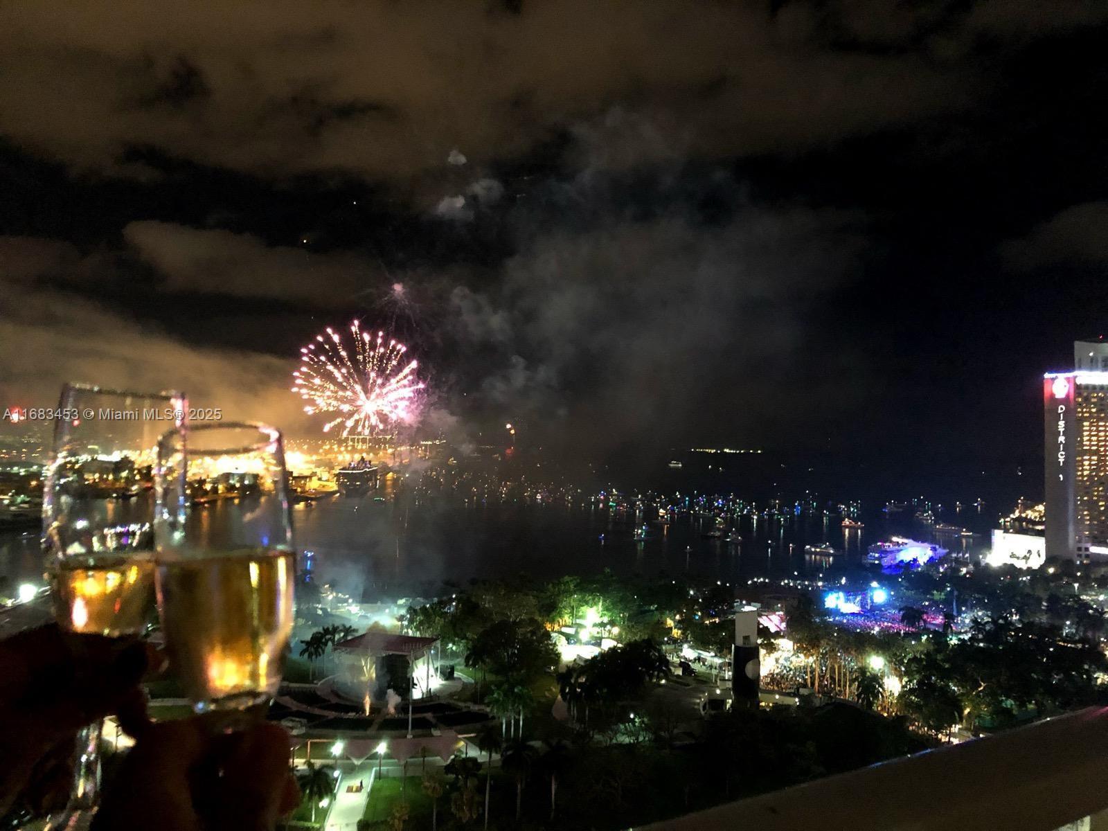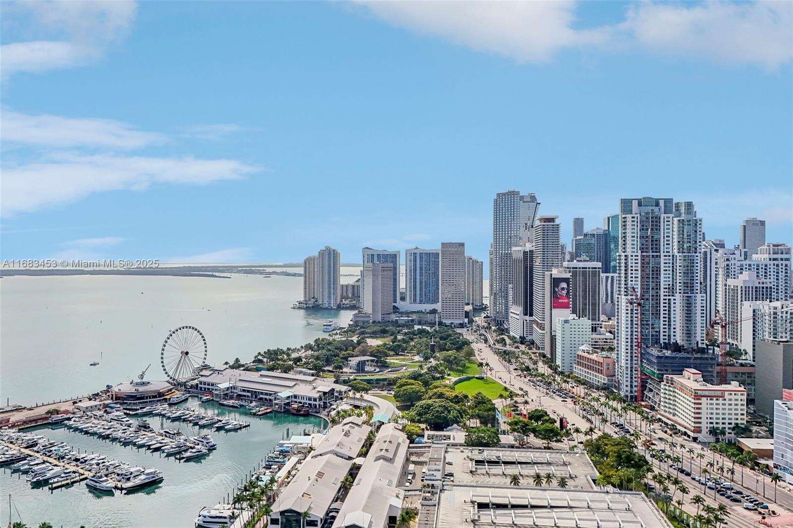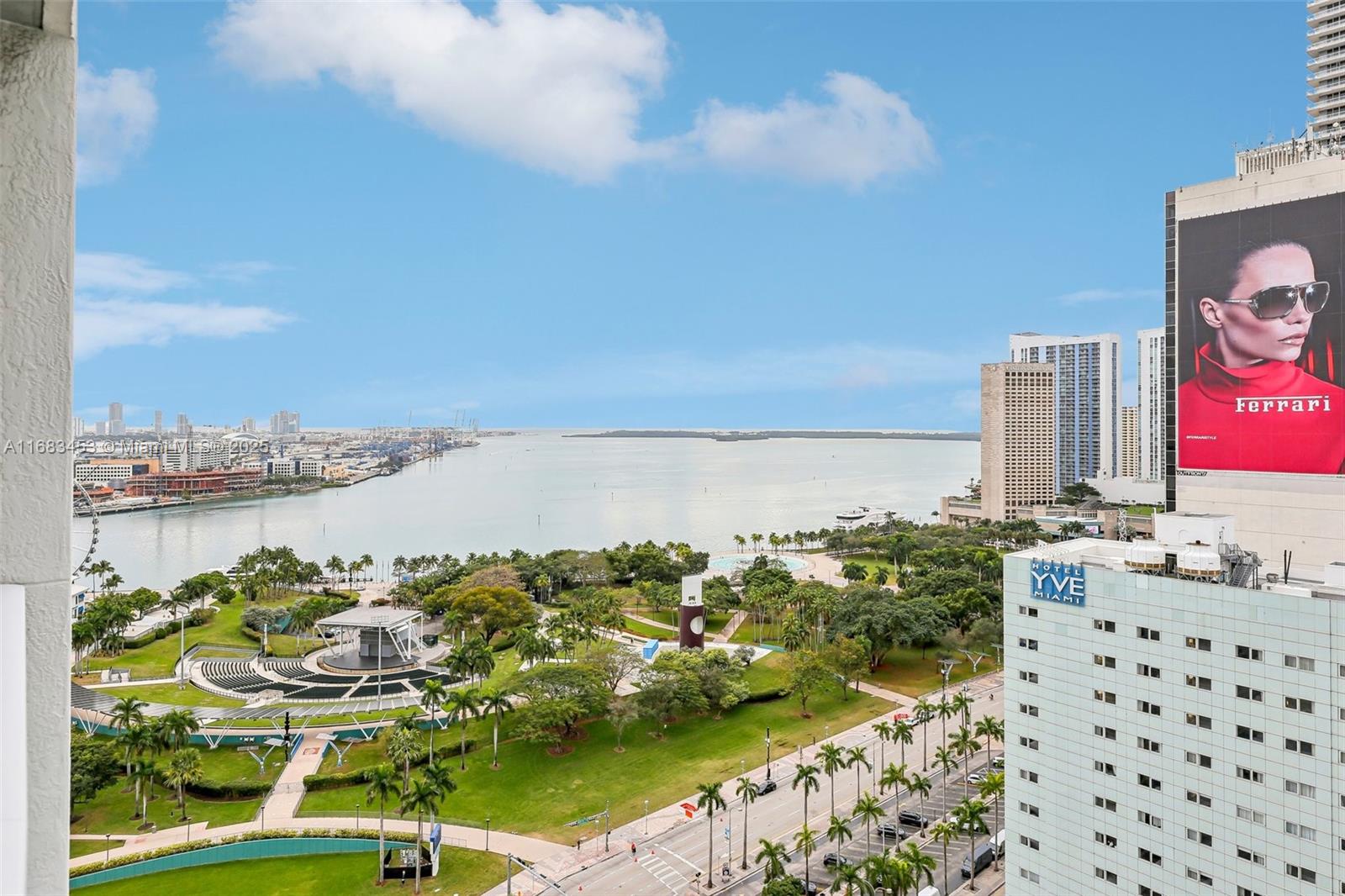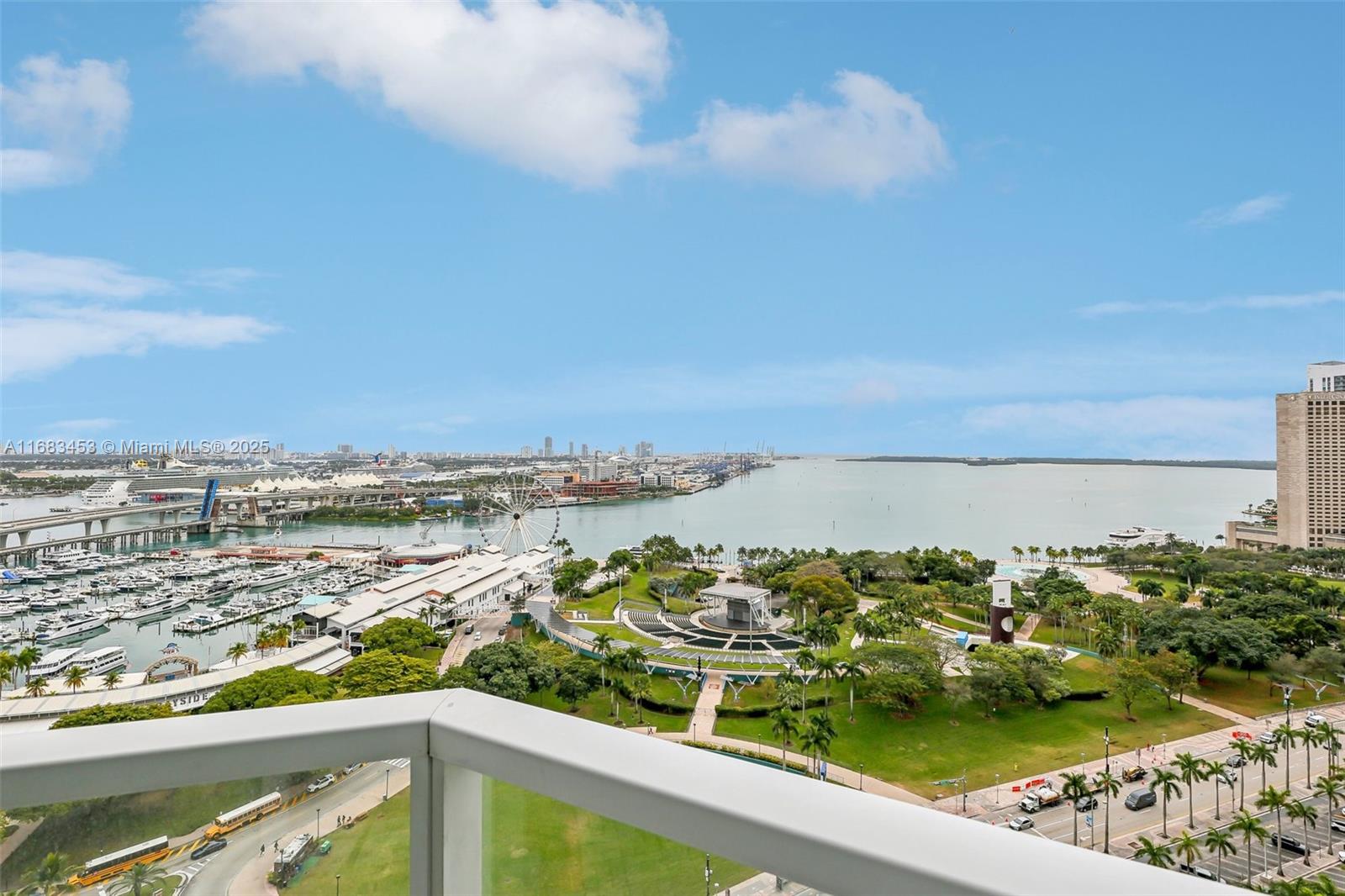 UNIQUE OPPORTUNITY – NOW $850,000! This spacious 2BD/2BA + DEN corner residence offers breathtaking views of Biscayne Bay and the Port of Miami. Recently upgraded with brand-new wood floors, the open layout features a modern kitchen with stainless steel appliances, Italian cabinets, and granite countertops. The bright living spaces include window shades throughout, while the primary suite boasts a large walk-in closet and a spa-style bath with dual sinks, soaking tub, and separate shower. Enjoy resort-style living with 4 pools, jacuzzi, spa, bar & lounge, movie theatre, game room, business center, fitness center, and 24-hour attended lobby. Located steps from shops, dining, and the Metro Mover for seamless city access. Easy to show.