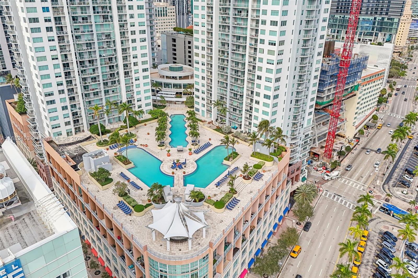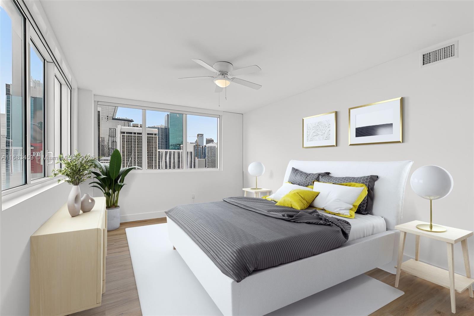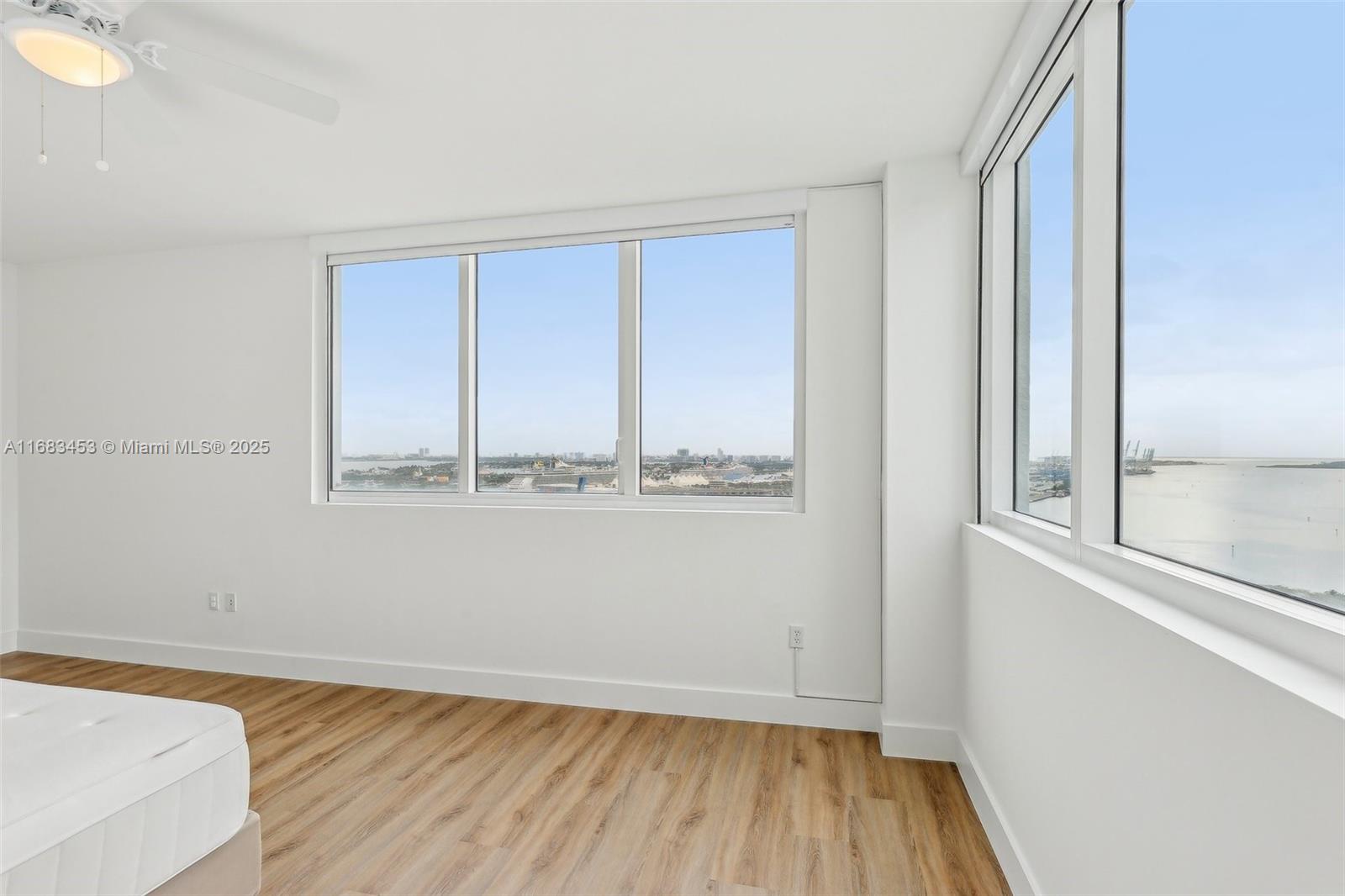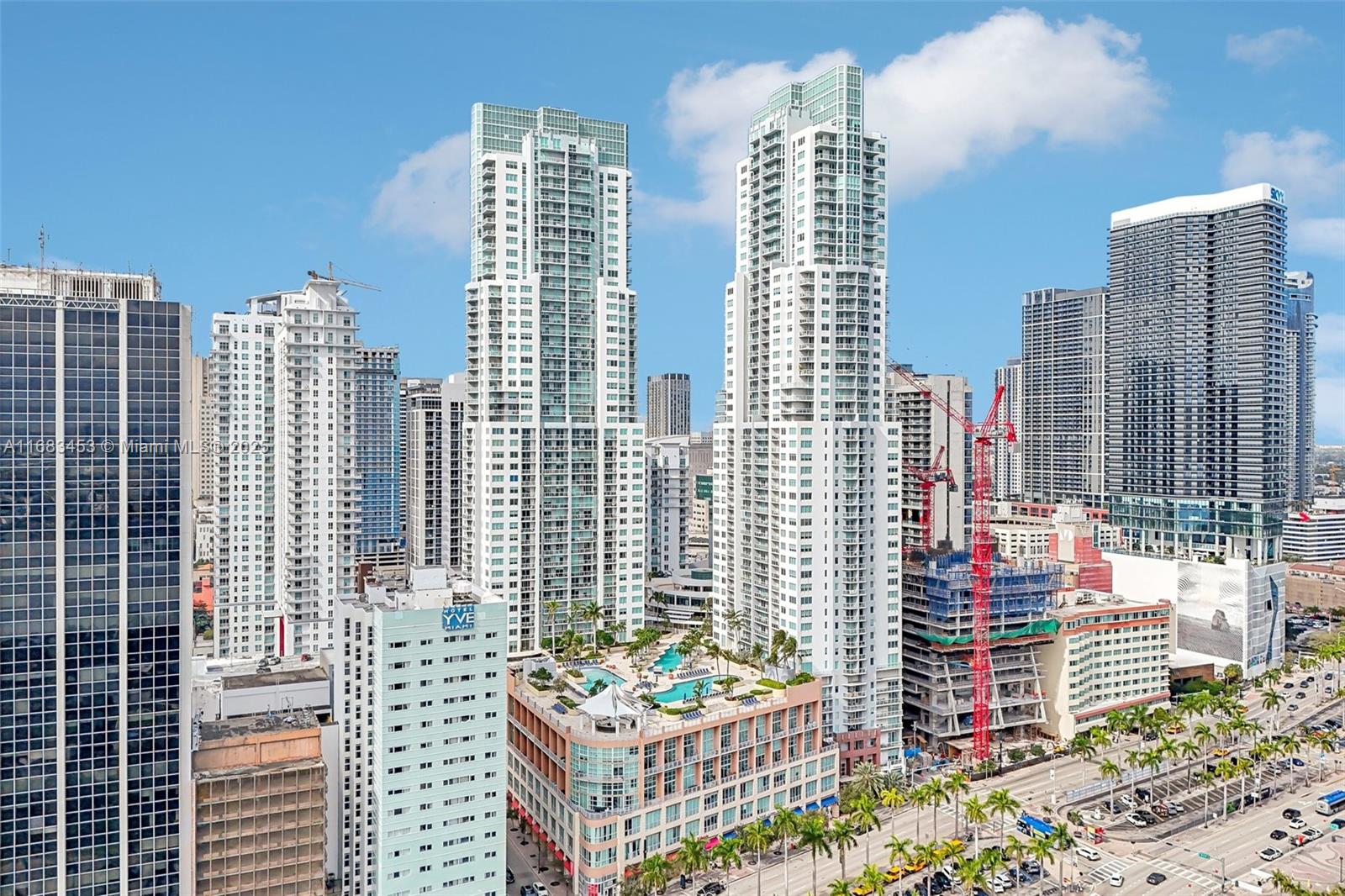 UNIQUE OPPORTUNITY – NOW $850,000! This spacious 2BD/2BA + DEN corner residence offers breathtaking views of Biscayne Bay and the Port of Miami. Recently upgraded with brand-new wood floors, the open layout features a modern kitchen with stainless steel appliances, Italian cabinets, and granite countertops. The bright living spaces include window shades throughout, while the primary suite boasts a large walk-in closet and a spa-style bath with dual sinks, soaking tub, and separate shower. Enjoy resort-style living with 4 pools, jacuzzi, spa, bar & lounge, movie theatre, game room, business center, fitness center, and 24-hour attended lobby. Located steps from shops, dining, and the Metro Mover for seamless city access. Easy to show.