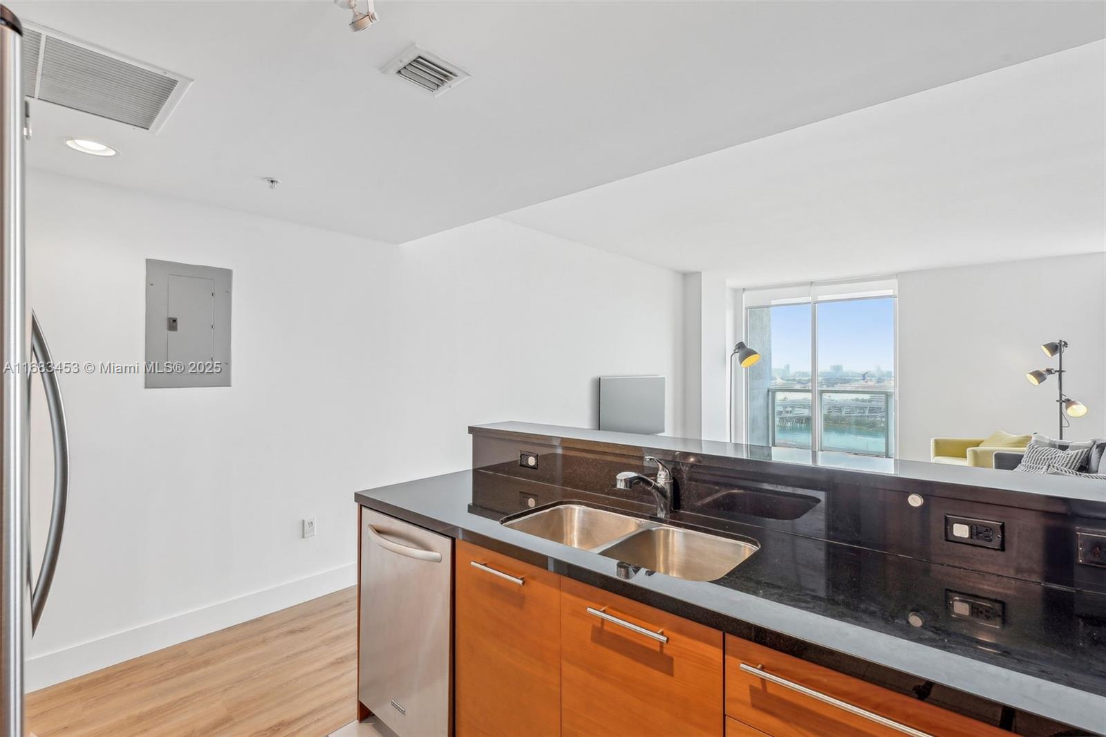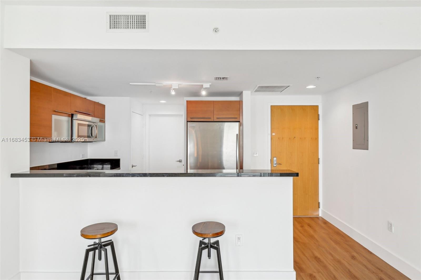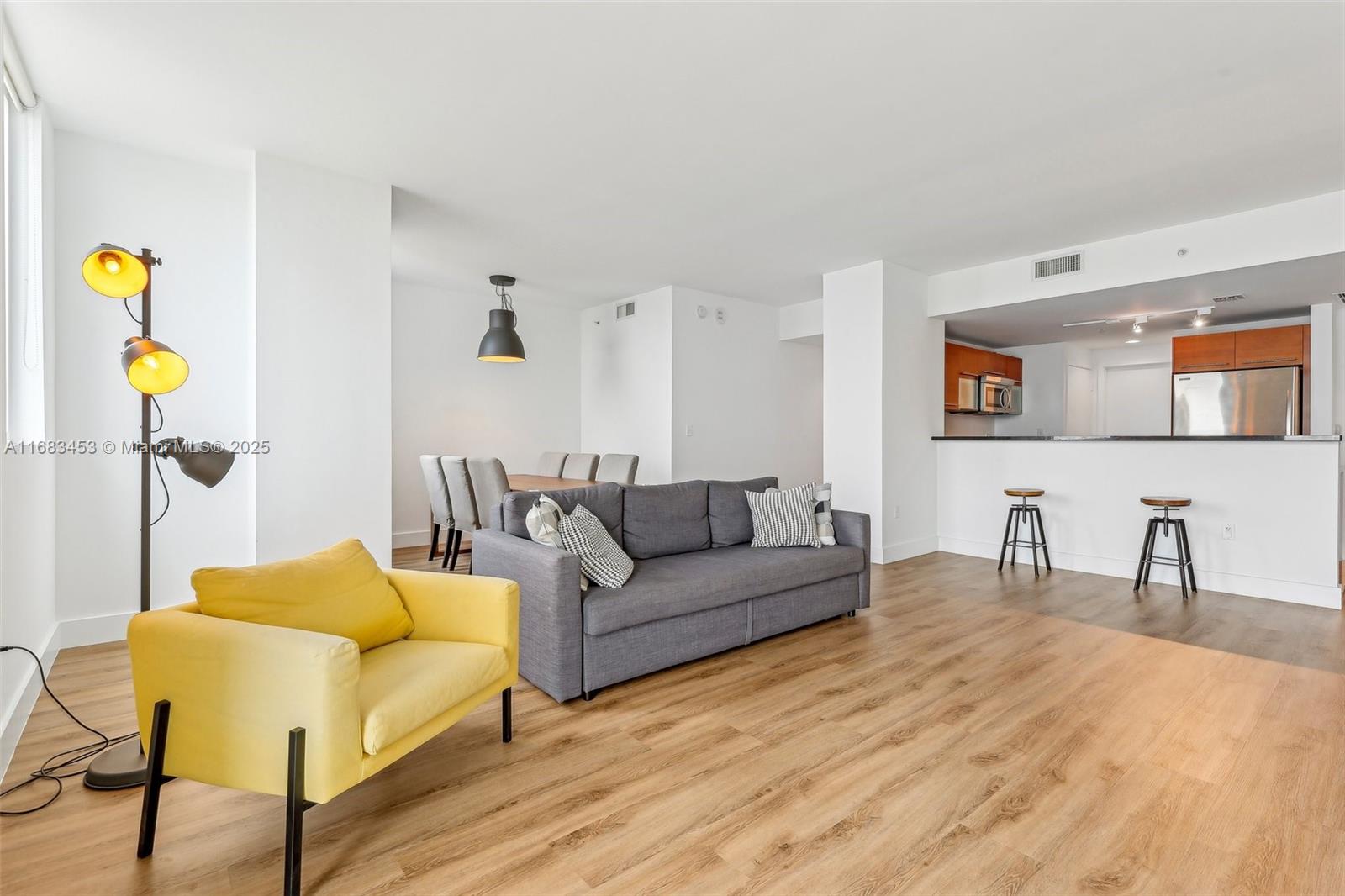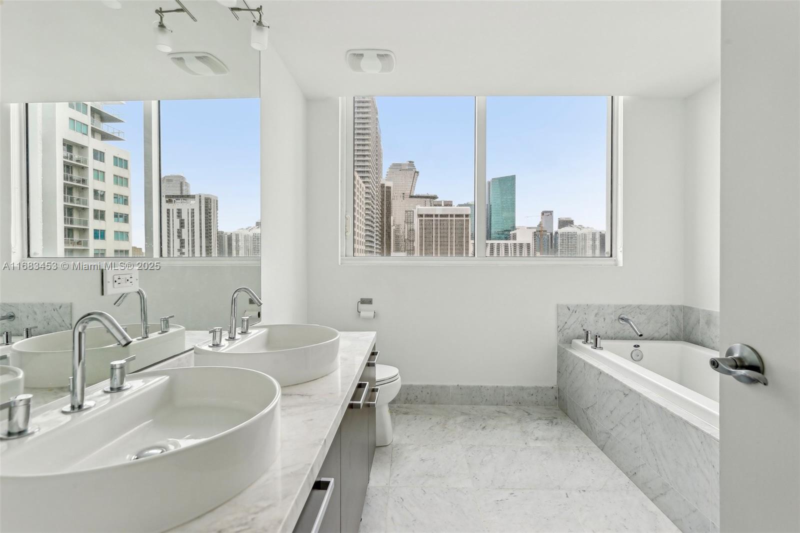 UNIQUE OPPORTUNITY – NOW $850,000! This spacious 2BD/2BA + DEN corner residence offers breathtaking views of Biscayne Bay and the Port of Miami. Recently upgraded with brand-new wood floors, the open layout features a modern kitchen with stainless steel appliances, Italian cabinets, and granite countertops. The bright living spaces include window shades throughout, while the primary suite boasts a large walk-in closet and a spa-style bath with dual sinks, soaking tub, and separate shower. Enjoy resort-style living with 4 pools, jacuzzi, spa, bar & lounge, movie theatre, game room, business center, fitness center, and 24-hour attended lobby. Located steps from shops, dining, and the Metro Mover for seamless city access. Easy to show.