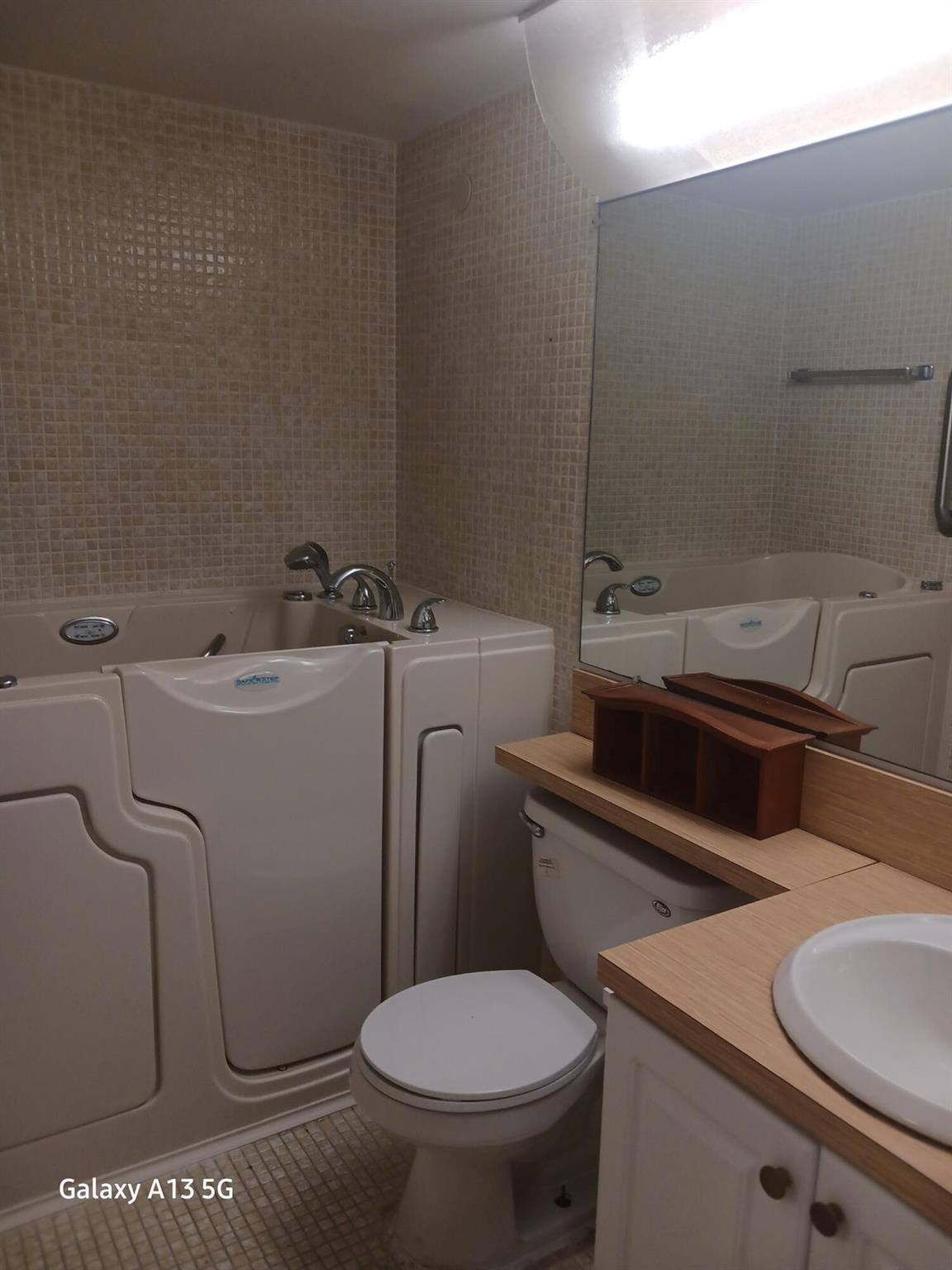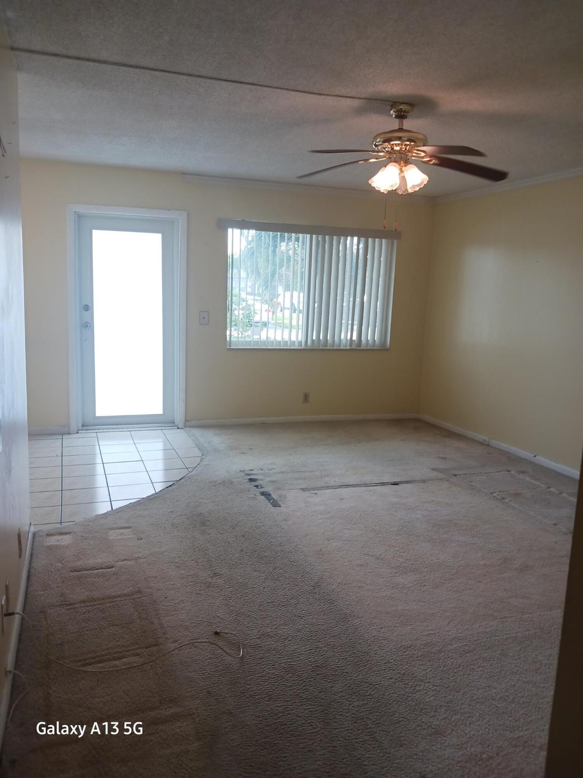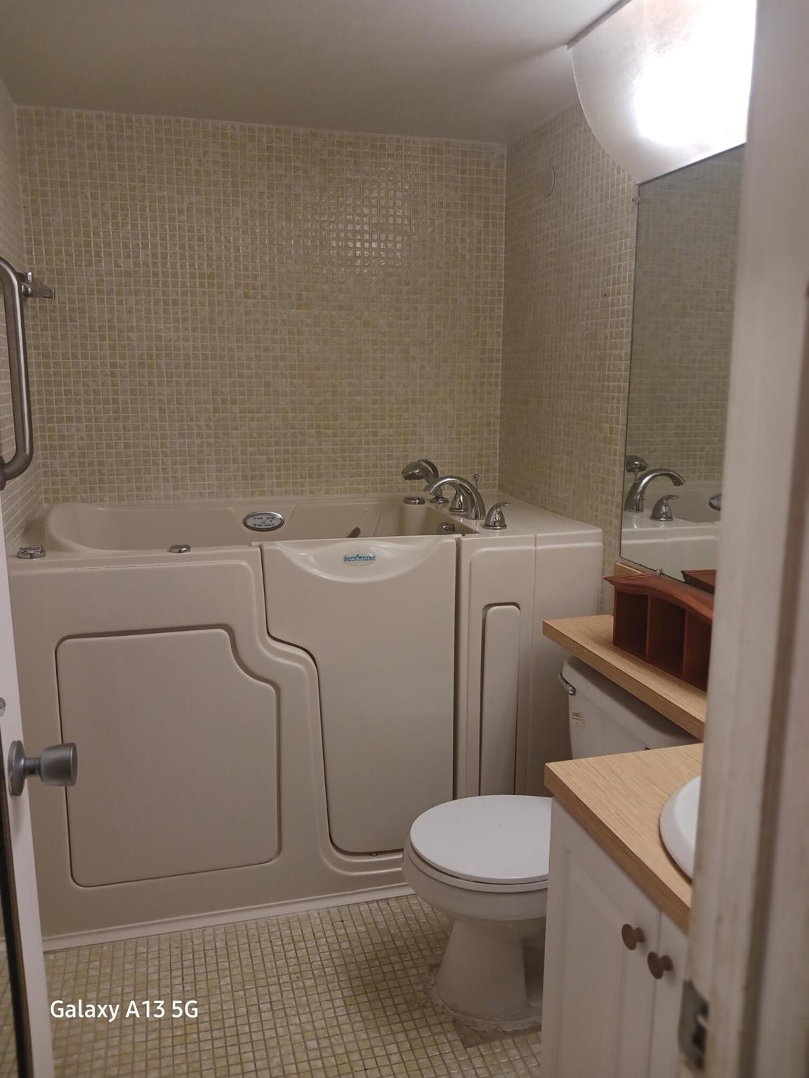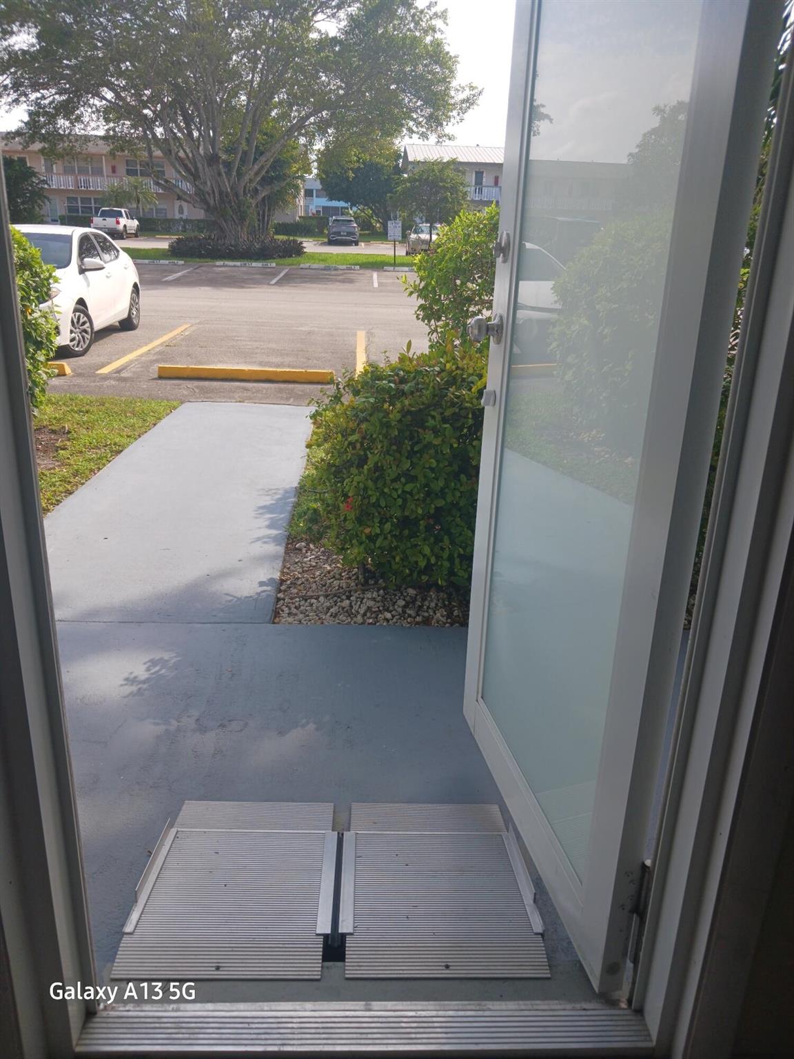 Retirement is a breeze in this charming, wheelchair-accessible 2-bedroom, 1.5-bathroom, 1st-floor condo in Century Village! This thoughtfully designed unit features cozy carpet throughout the living areas and bedrooms, with durable tile in the dining room, kitchen, and bathrooms. The master bedroom includes a spacious walk-in closet and a luxurious Safe Step walk-in tub, ensuring both comfort and safety - perfect for unwinding at the end of the day! Enjoy beautiful lake views from your back porch, creating a serene backdrop to your daily life. With well-kept appliances, this condo is move-in ready. Century Village offers an exceptional lifestyle with endless amenities, including a sparkling pool, clubhouse, fitness center, shuffleboard courts, and so much more.