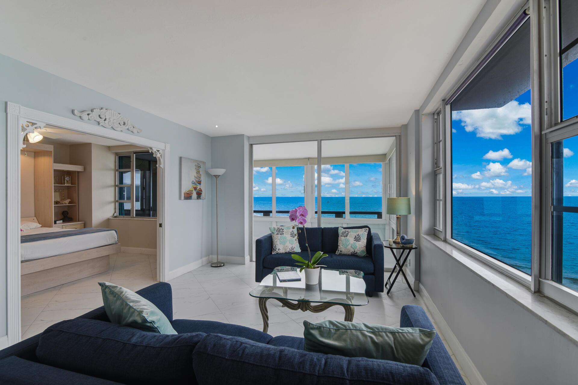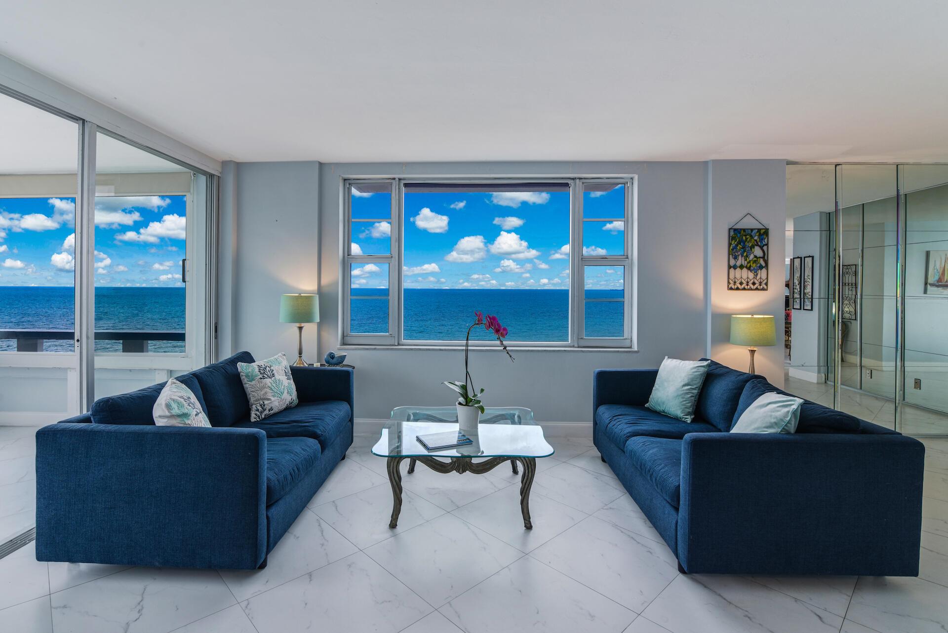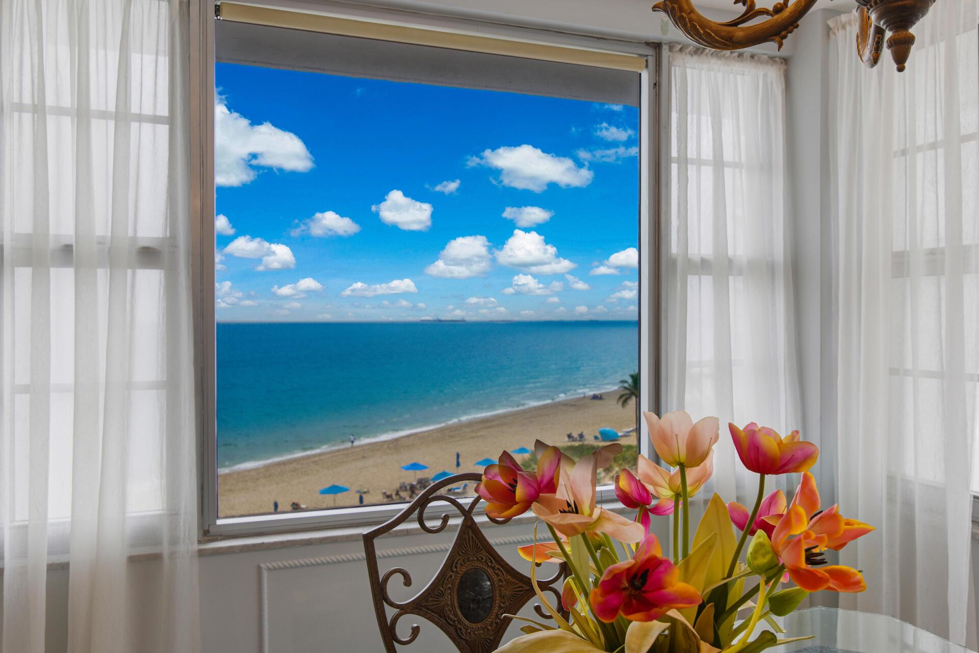 Incredible Panoramic Ocean Views & Shoreline! Updated Corner Residence w/ Large Hurricane Windows & Sliders that Maximize the Glistening Picturesque Views of the Azure Waters! Features include an Updated Kitchen with/ an Abundance of Storage, Stainless Appliances & Granite. Marble ''Look'' Tile Thru-out! Updated Bathrooms w/ Jacuzzi/Shower in Primary. Oversized Balcony w/Sliders. The Guest Bedroom has Murphy Bed & Pocket Doors for Privacy. 40-50 MILESTONE & RESTORATION COMPLETE! An array of Amenities includes Concierge/Security, On-Site Manager, Recreation Room, Exercise Room, Heated Pool, & Barbecue Area. Boardwalk Access to your Private Beach with/ Chairs, Chaise Lounges, Tables, & Umbrellas. Tranquility at its BEST! Sought-After Location! Stroll Away to Dining, Shops & Venues.