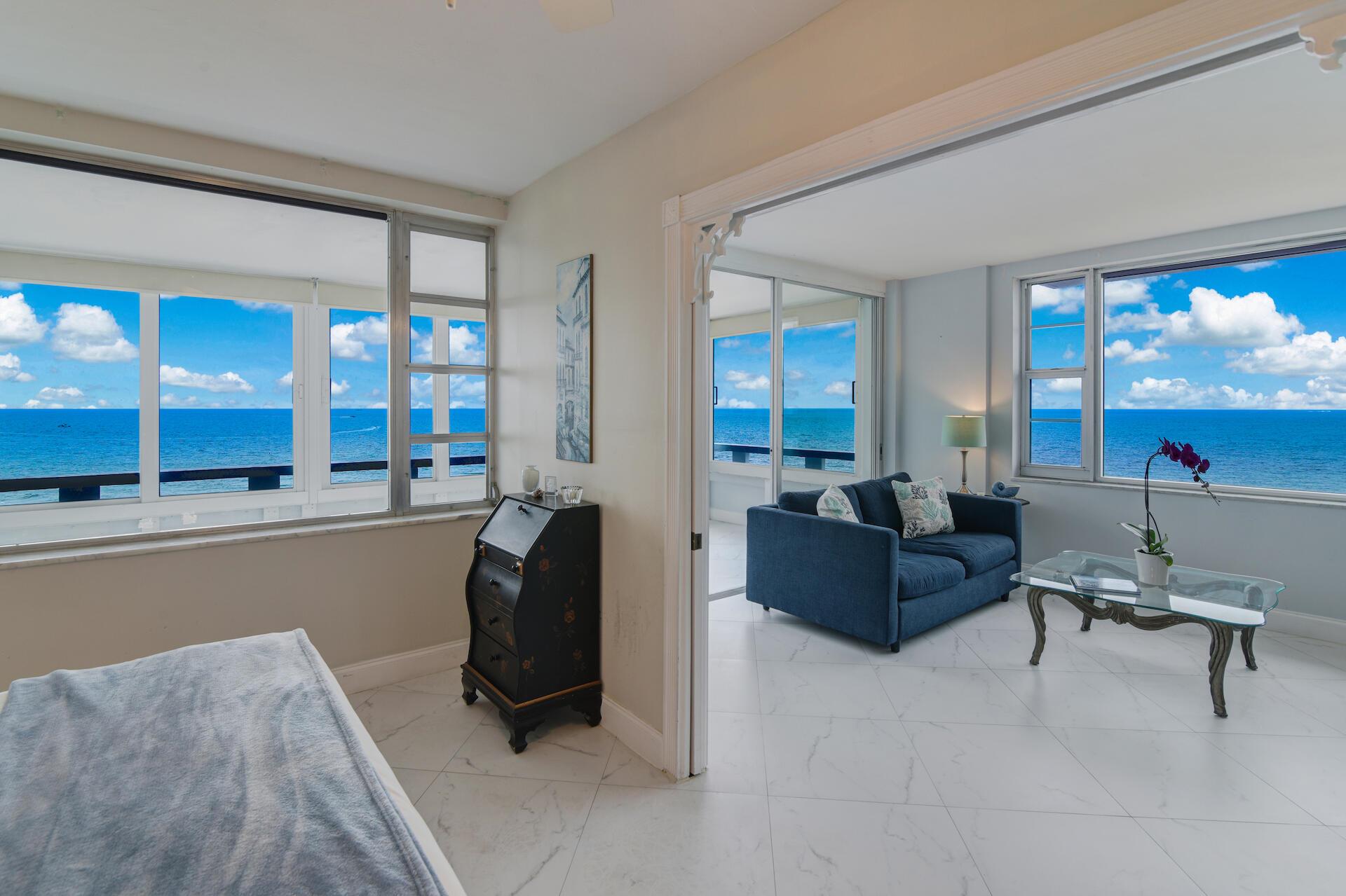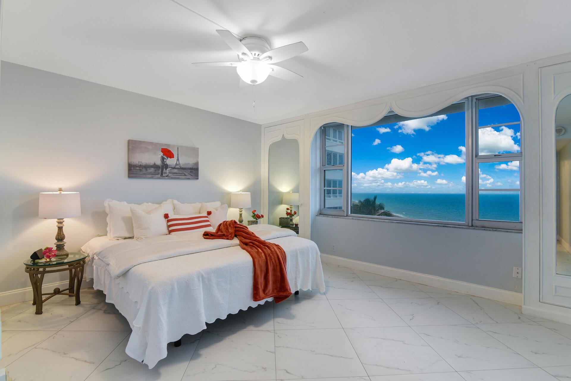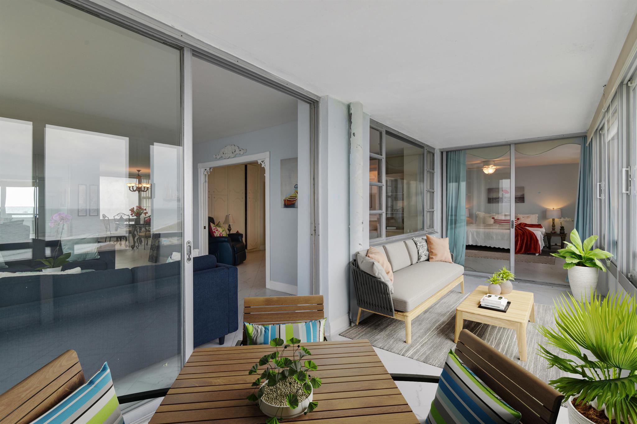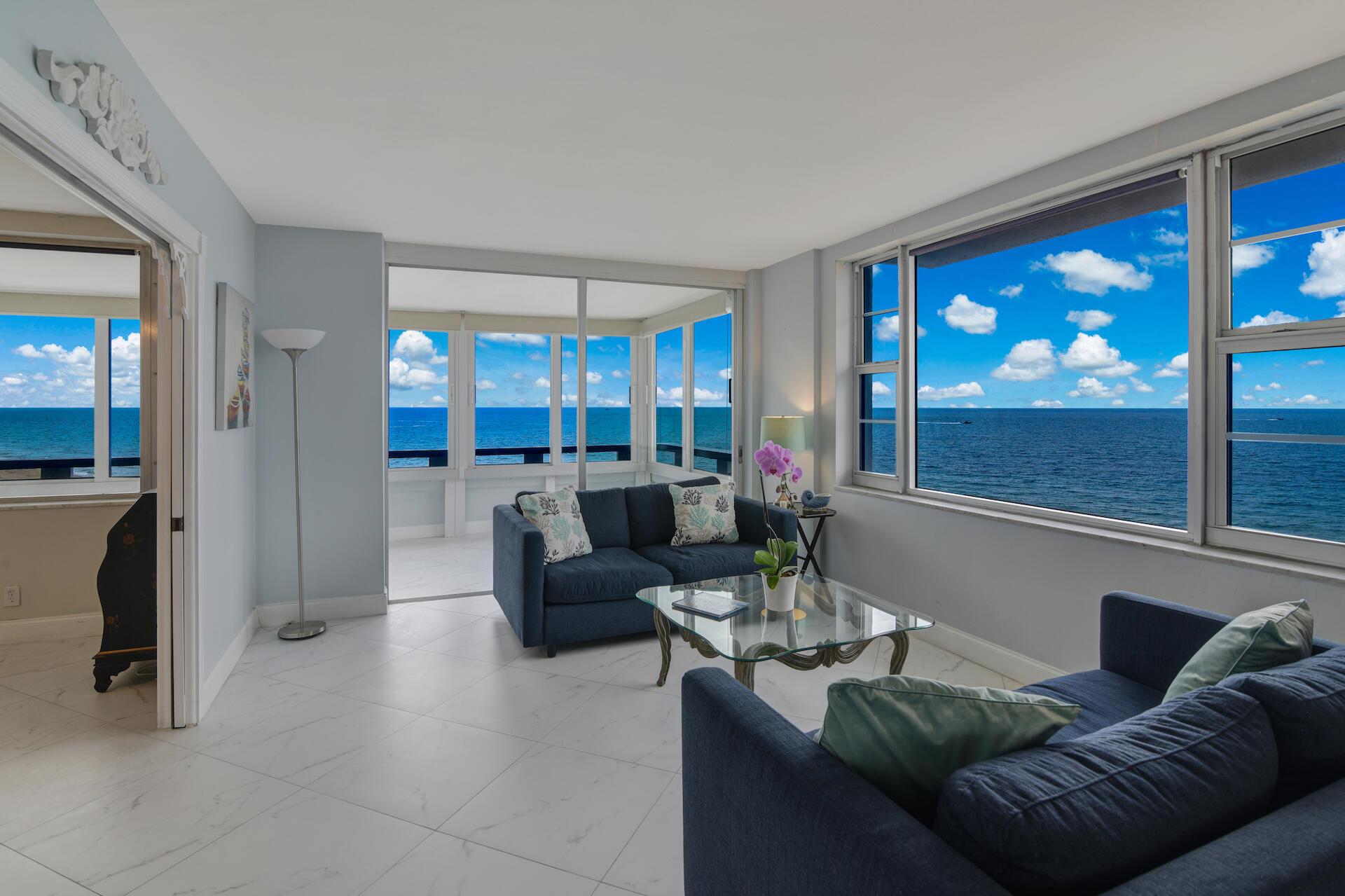 Incredible Panoramic Ocean Views & Shoreline! Updated Corner Residence w/ Large Hurricane Windows & Sliders that Maximize the Glistening Picturesque Views of the Azure Waters! Features include an Updated Kitchen with/ an Abundance of Storage, Stainless Appliances & Granite. Marble ''Look'' Tile Thru-out! Updated Bathrooms w/ Jacuzzi/Shower in Primary. Oversized Balcony w/Sliders. The Guest Bedroom has Murphy Bed & Pocket Doors for Privacy. 40-50 MILESTONE & RESTORATION COMPLETE! An array of Amenities includes Concierge/Security, On-Site Manager, Recreation Room, Exercise Room, Heated Pool, & Barbecue Area. Boardwalk Access to your Private Beach with/ Chairs, Chaise Lounges, Tables, & Umbrellas. Tranquility at its BEST! Sought-After Location! Stroll Away to Dining, Shops & Venues.