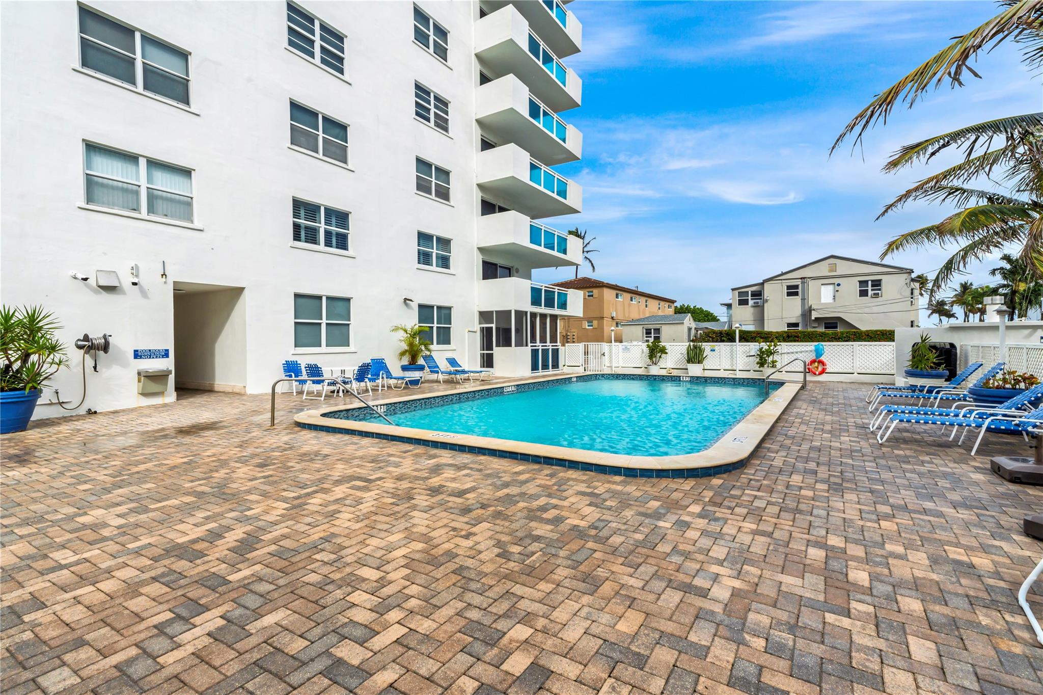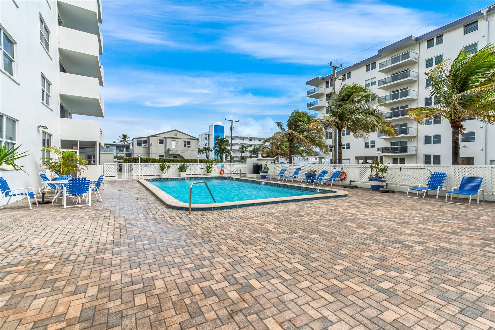 Discover this stunning fully renovated corner unit, just one block from Hollywood Beach! With breathtaking intercoastal & ocean views, this pristine renovated 2-bedroom, 2-bath condo is perfect for beach lovers. Enjoy stainless steel appliances & seamless tile floors throughout, making it both stylish & functional. Sip your morning coffee on the balcony while taking in the views. The spacious primary bedroom features a large walk-in closet, & the second bedroom offers double closets for ample storage. Relax by the sparkling pool on sunny afternoons or take a short stroll to the beach. This tastefully furnished unit is ready for you, whether as a permanent residence or chic second home. With the 50-year inspection complete, this condo is beautiful and built to last! The beach life awaits!