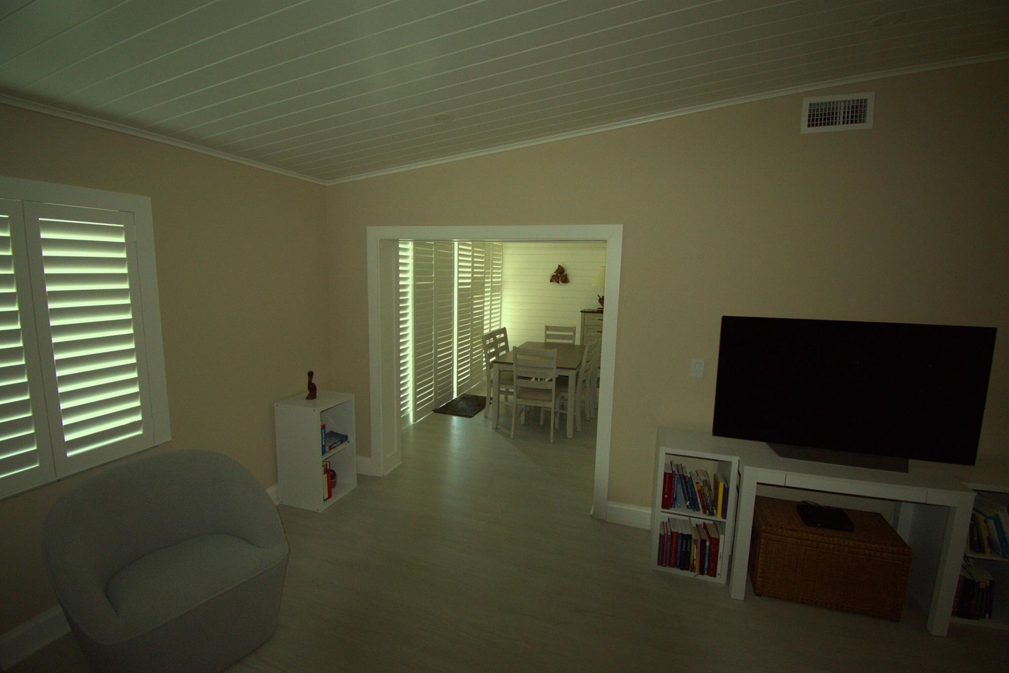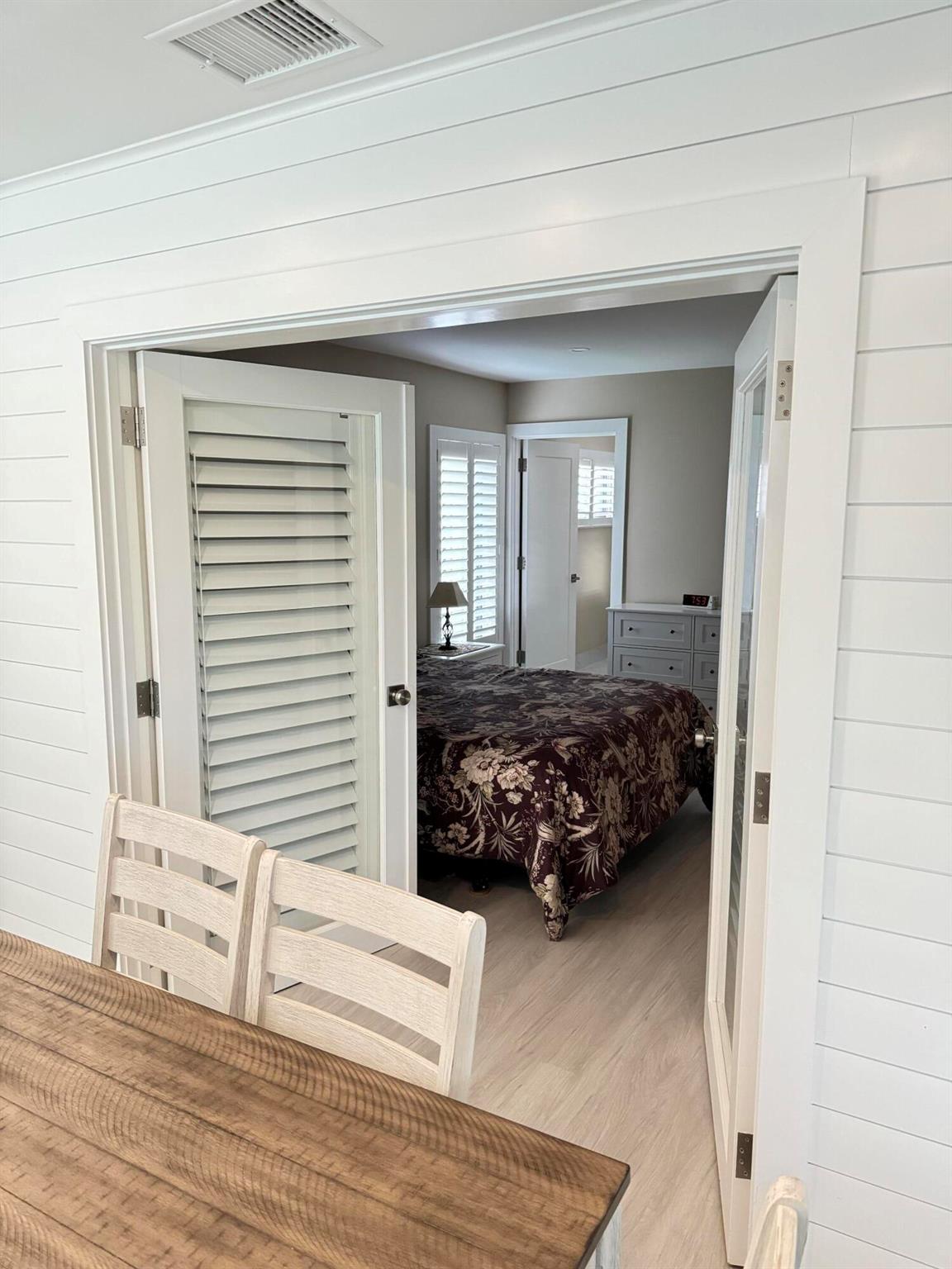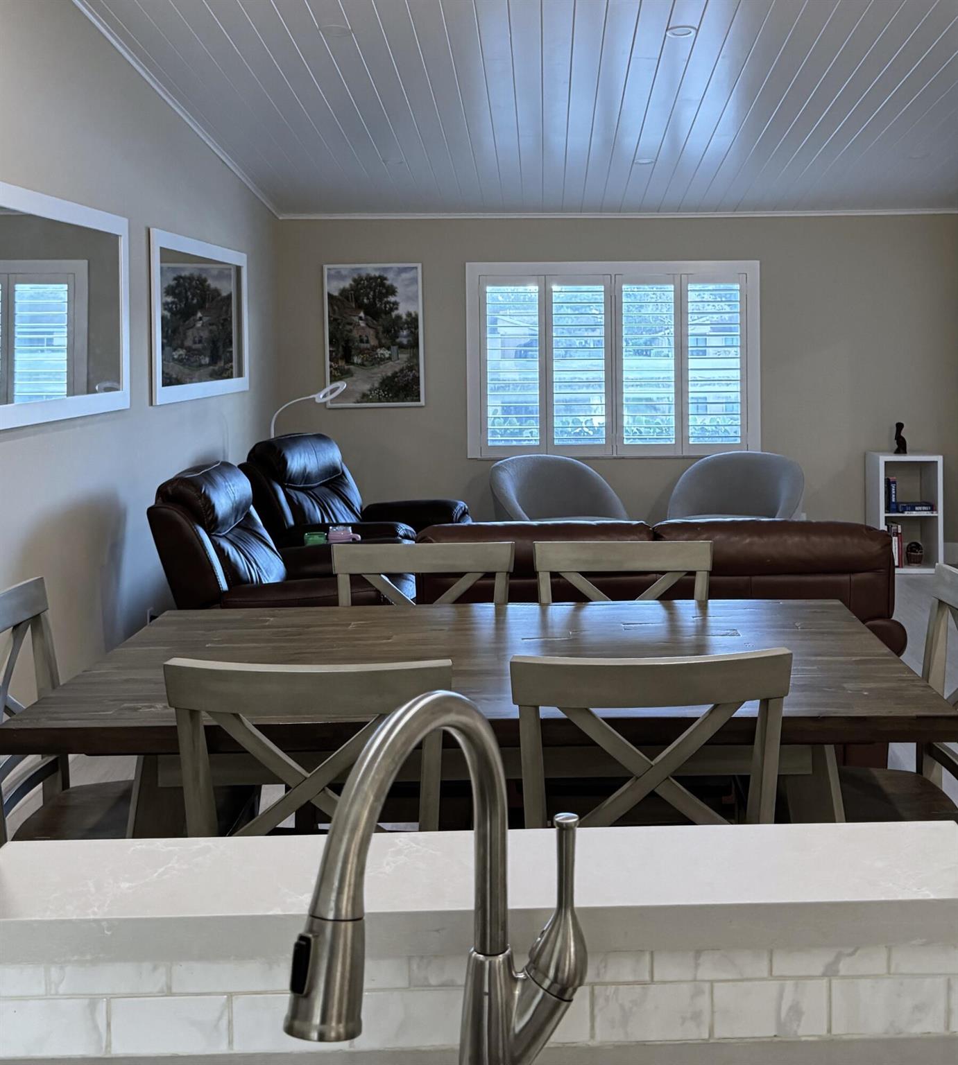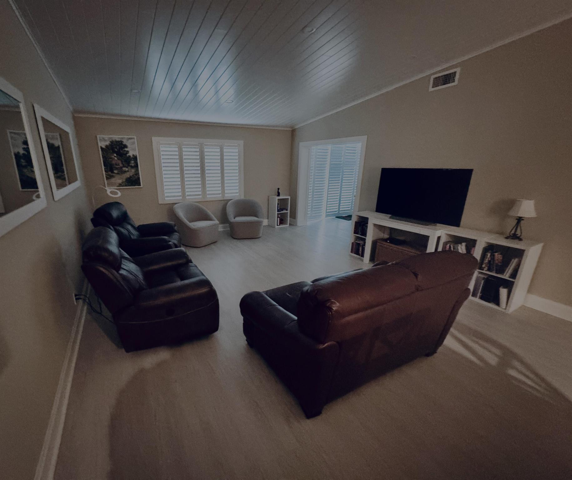 Turnkey furnished option. Designer style upgraded Chateau villa end unit with water view. New fully paid roof and gutters (11/2024). New 3-ton 15.2 SEER2 HVAC system (8/2024). New hot water heater (2023). The villa is secured with complete high impact doors and windows, including the floor-to-ceiling Florida room sliders and garage door. The original exterior sunroom was legally enclosed creating an interior air-conditioned Florida room with a PBC building permit. The villa is now 1409sf under air, the largest in Eastgate! With the revision, the villa is now stepless from the driveway, throughout the interior to the backyard brick pavers patio overlooking the water. The end-unit wall faces east, avoiding the hot afternoon sun, with 4 windows, one for each bedroom and bath.