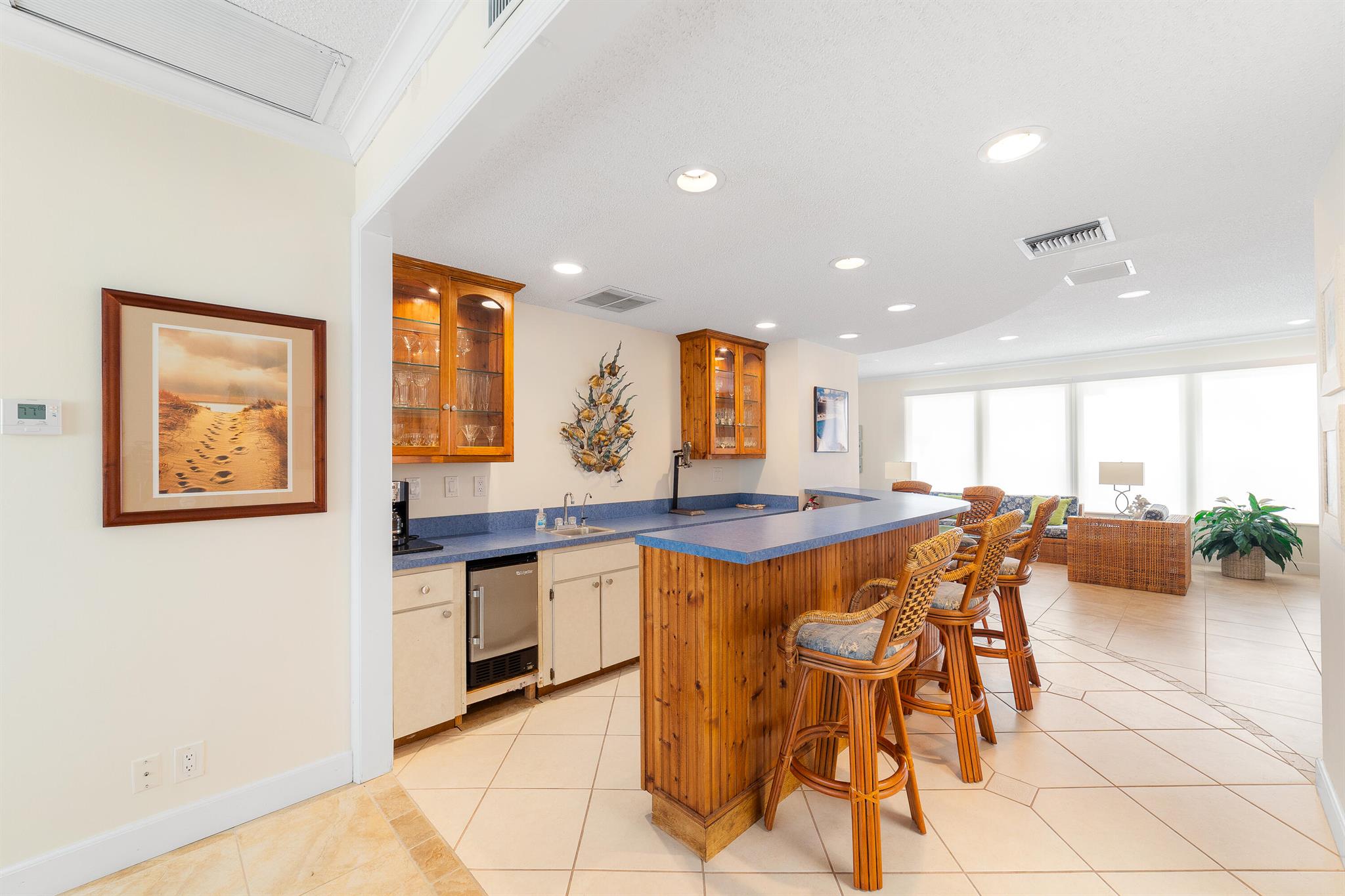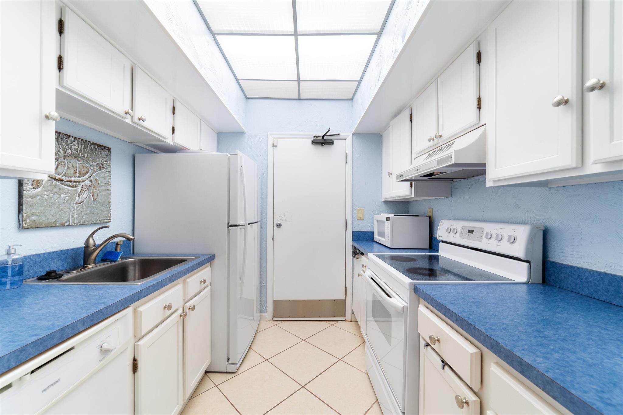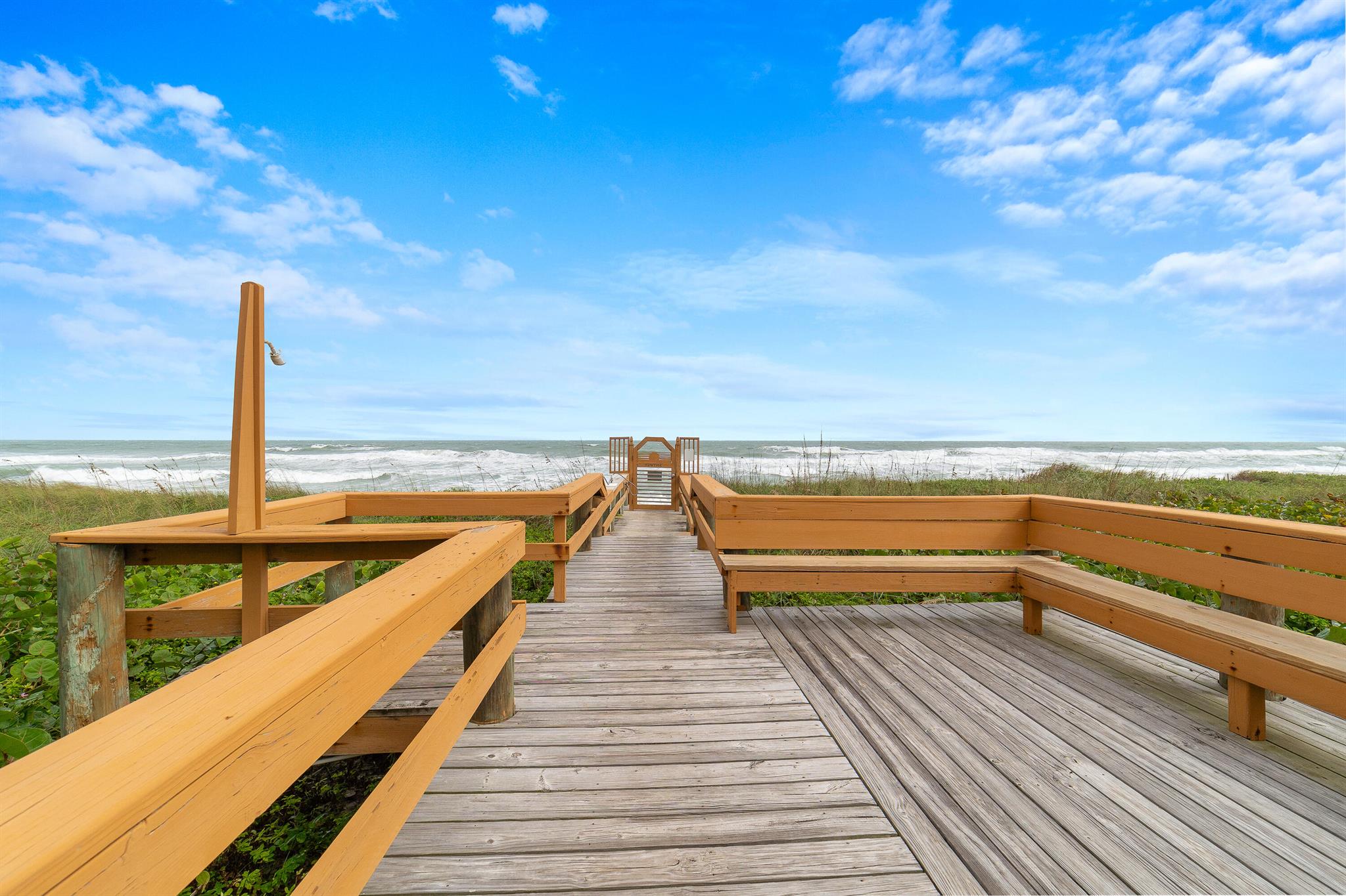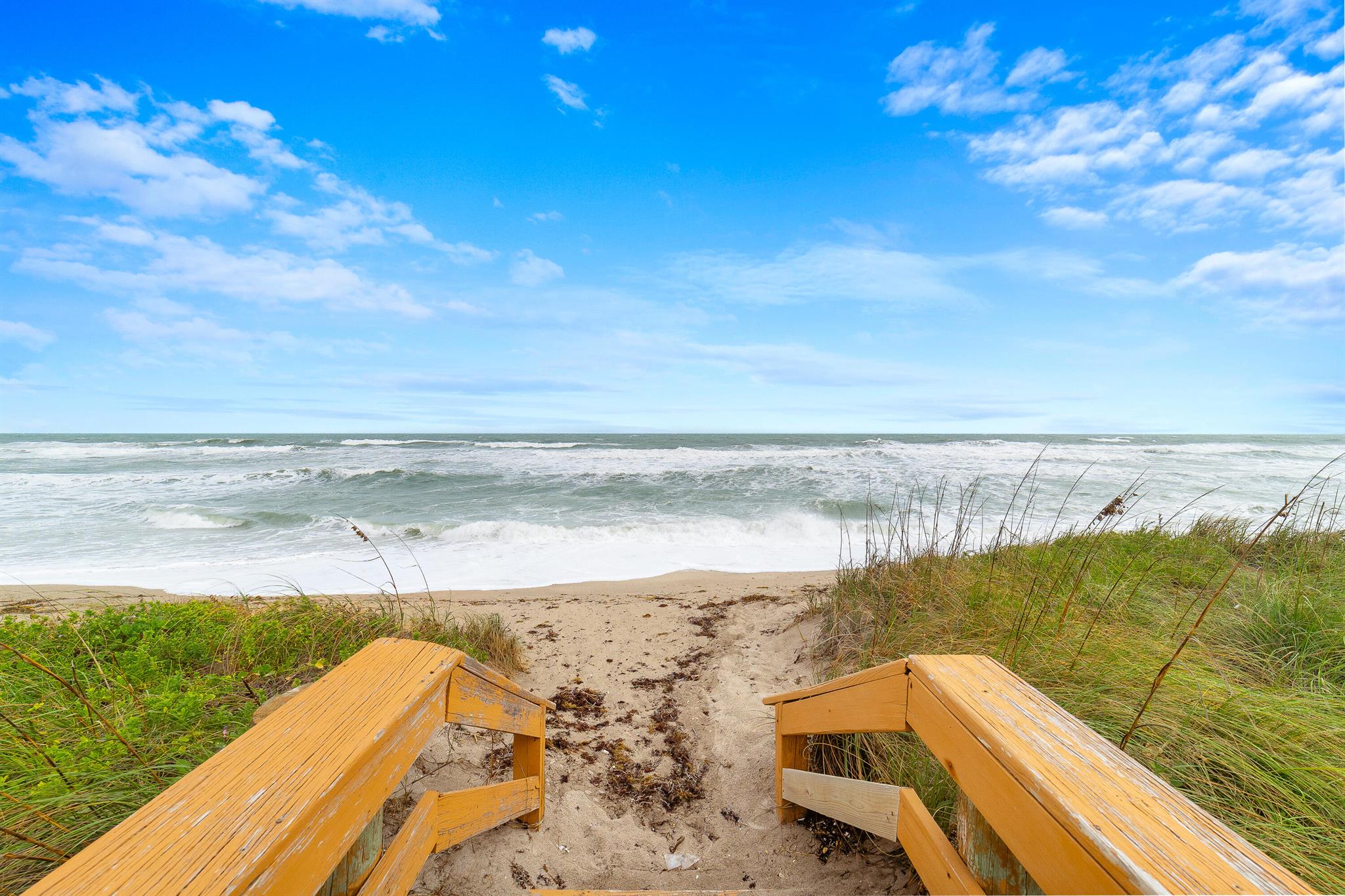 Welcome home to this immaculate 2 bedroom 2 bathroom opportunity in the highly sought after Suntide building of Stuart, offering gorgeous direct private walk out beach access! As soon as you enter the unit, you immediately notice the open floor plan and abundant natural light. Your kitchen has been fully updated with modern cabinetry, reverse osmosis water treatment, quartz countertops, updated appliances and beautiful raised backsplash. The home boasts wood themed tile flooring throughout and a split bedroom floor plan for convenience and privacy. The primary bedroom offers tons of space, walk in closet and large primary bath featuring dual vanities, modern finishes, large shower and mosaic tiling. The primary also opens out into an open seating room which could be used for an