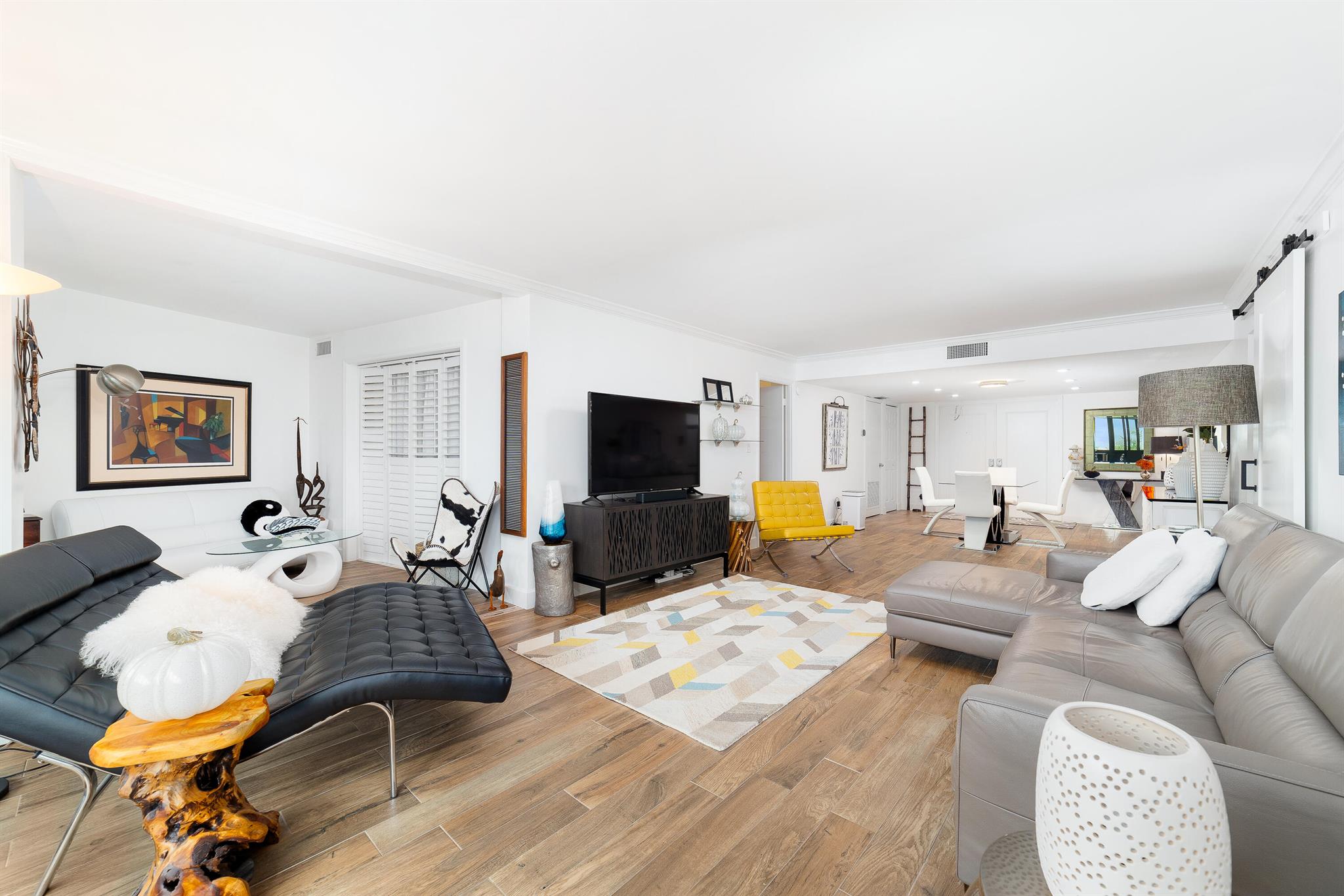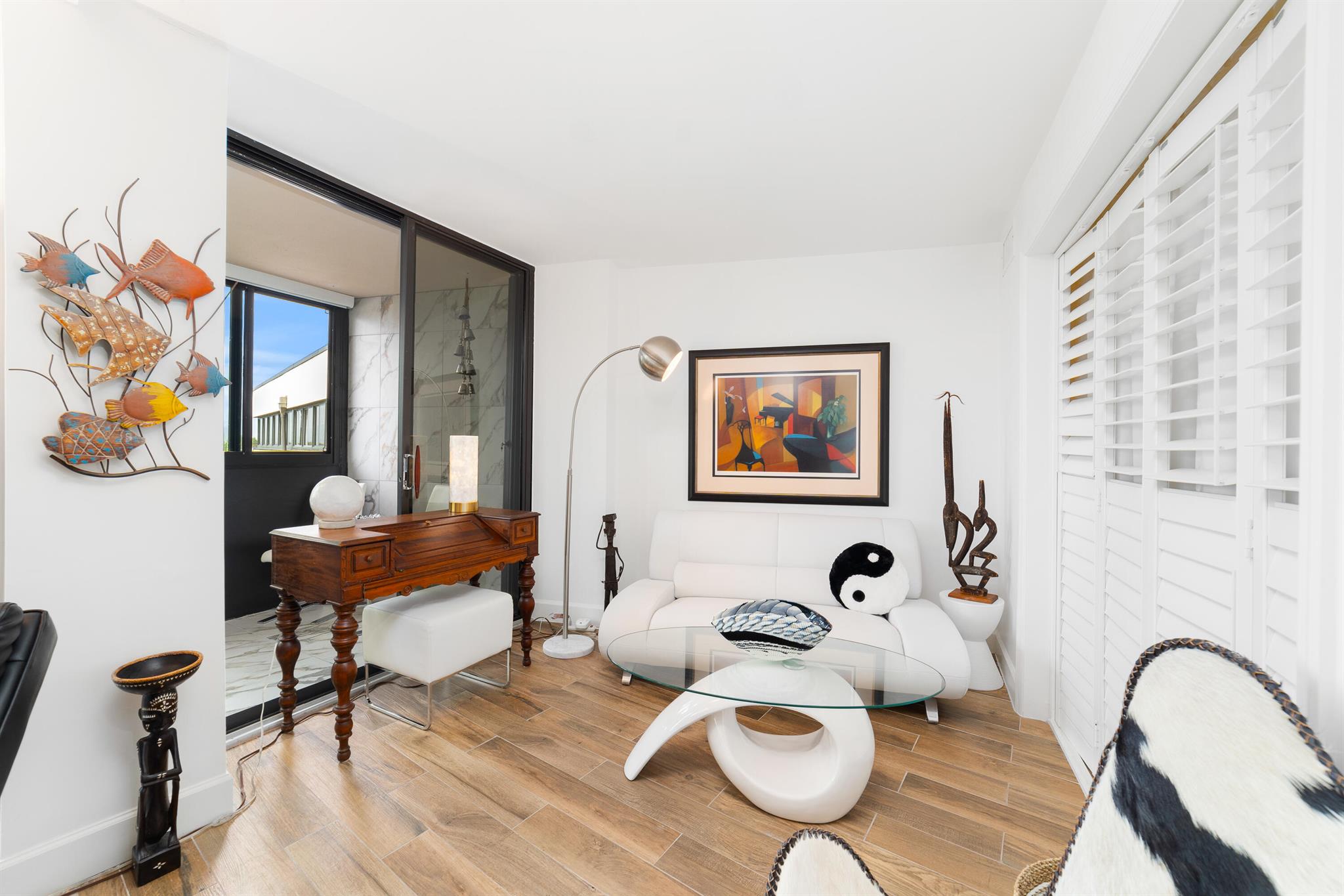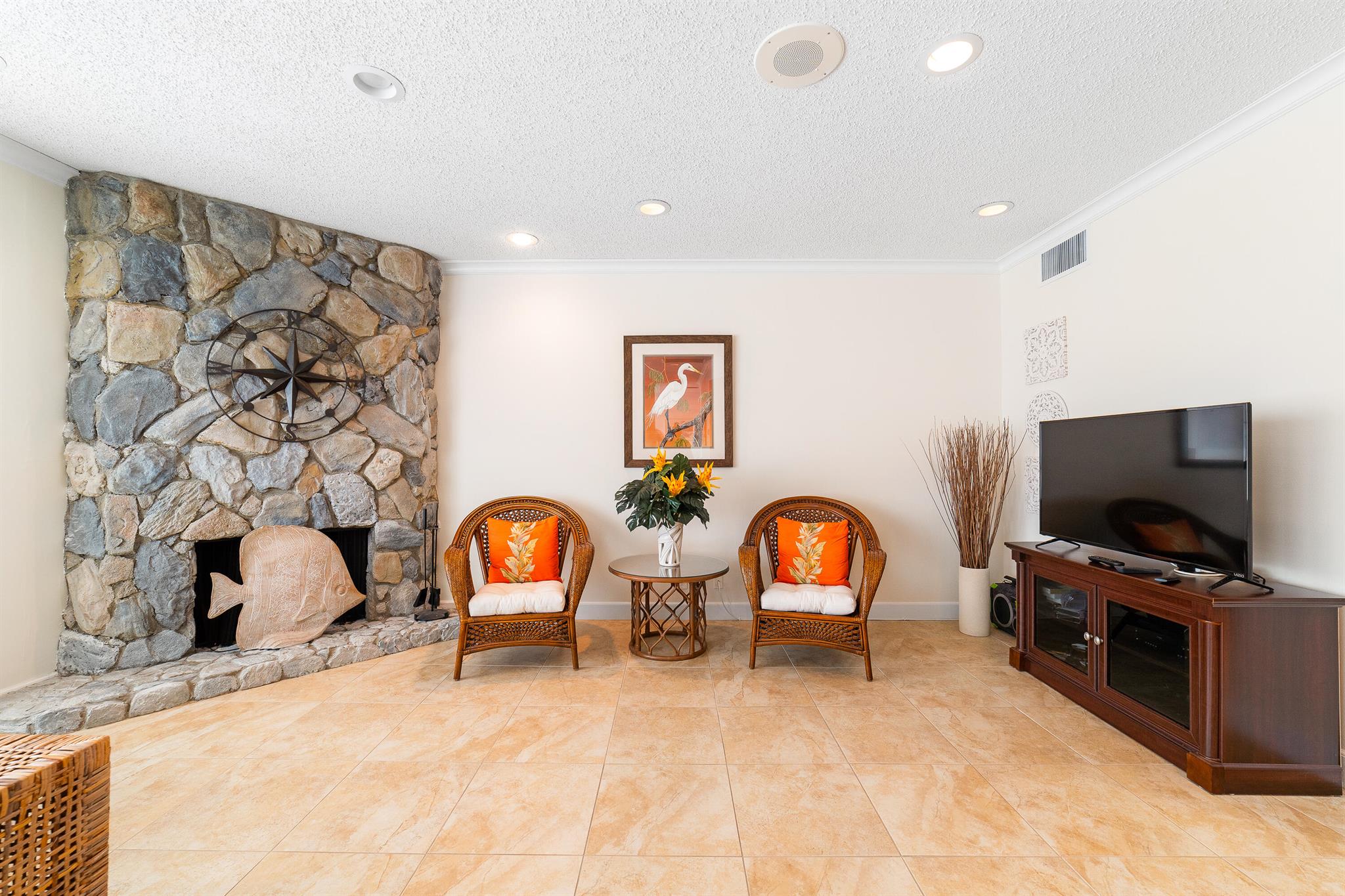 Welcome home to this immaculate 2 bedroom 2 bathroom opportunity in the highly sought after Suntide building of Stuart, offering gorgeous direct private walk out beach access! As soon as you enter the unit, you immediately notice the open floor plan and abundant natural light. Your kitchen has been fully updated with modern cabinetry, reverse osmosis water treatment, quartz countertops, updated appliances and beautiful raised backsplash. The home boasts wood themed tile flooring throughout and a split bedroom floor plan for convenience and privacy. The primary bedroom offers tons of space, walk in closet and large primary bath featuring dual vanities, modern finishes, large shower and mosaic tiling. The primary also opens out into an open seating room which could be used for an