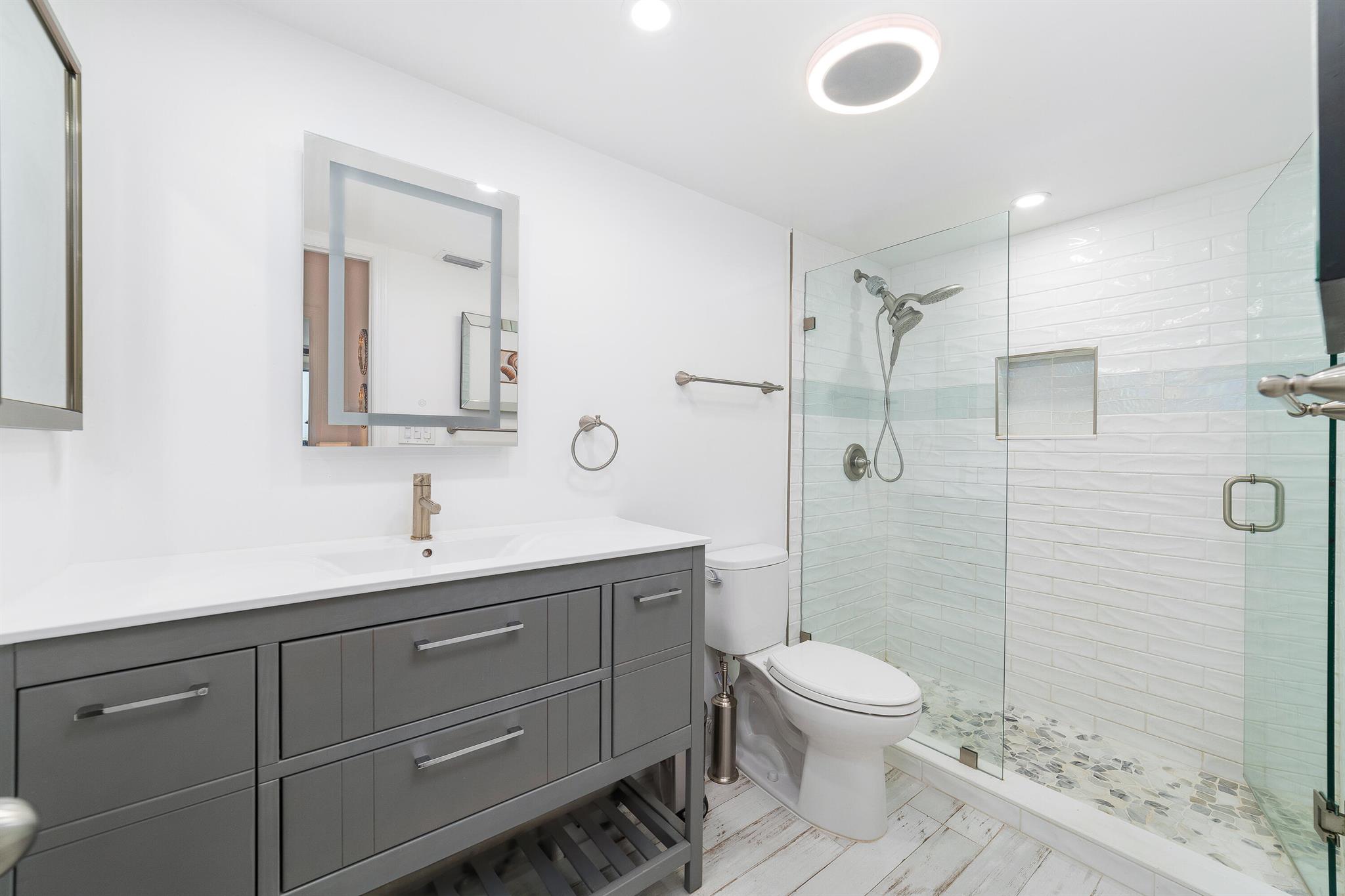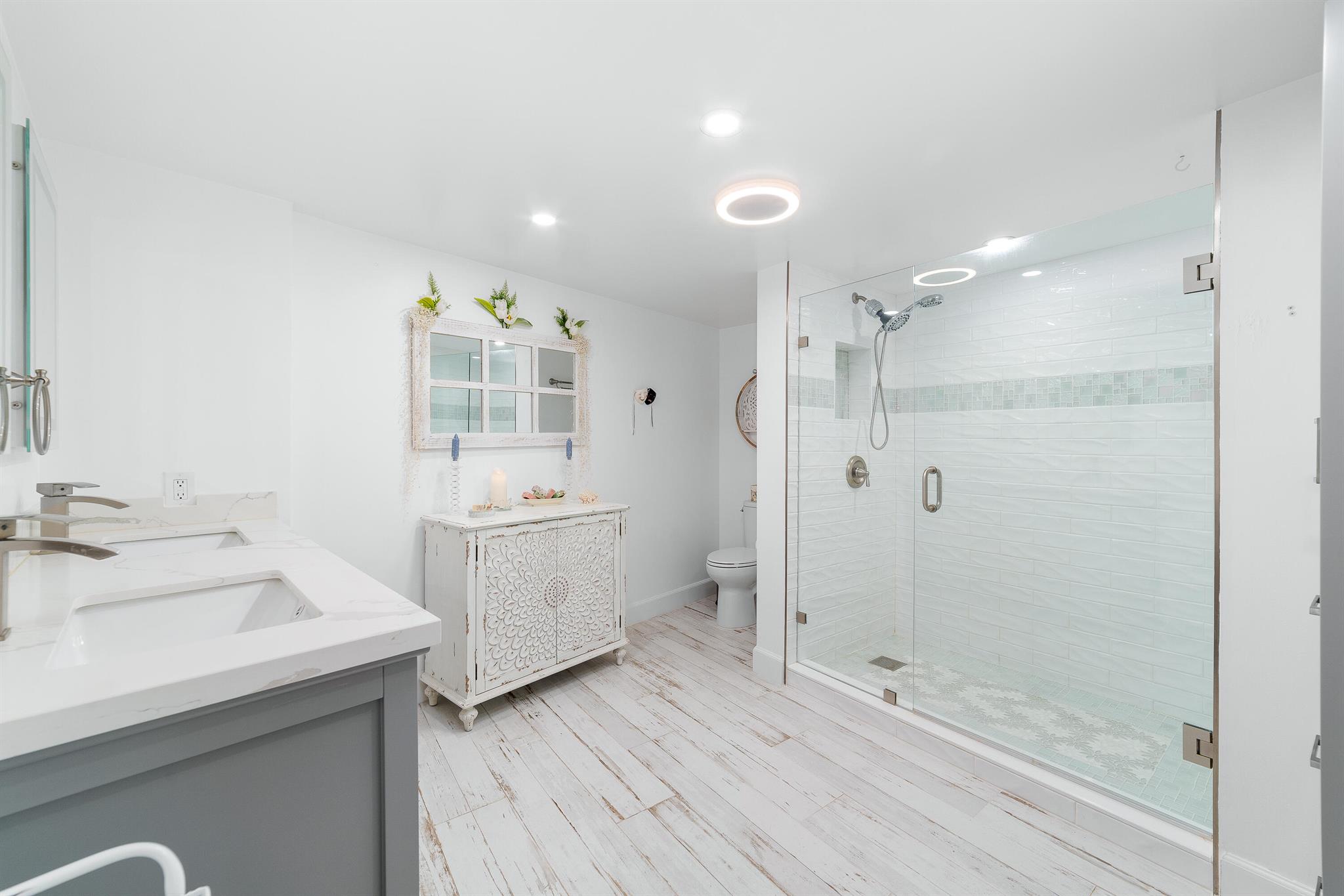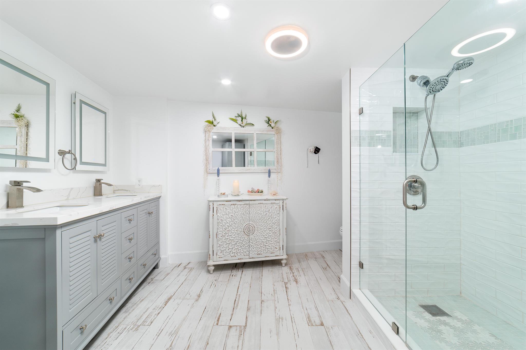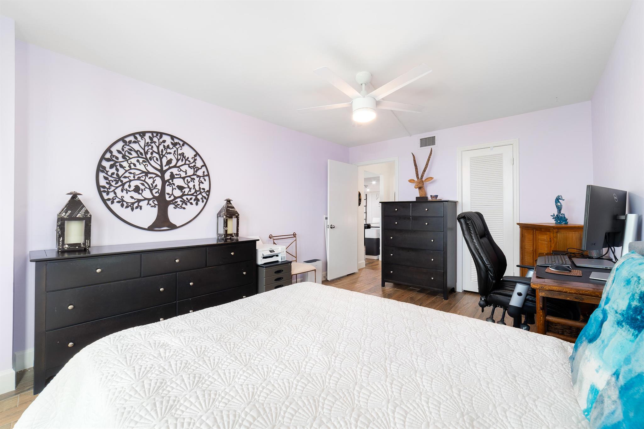 Welcome home to this immaculate 2 bedroom 2 bathroom opportunity in the highly sought after Suntide building of Stuart, offering gorgeous direct private walk out beach access! As soon as you enter the unit, you immediately notice the open floor plan and abundant natural light. Your kitchen has been fully updated with modern cabinetry, reverse osmosis water treatment, quartz countertops, updated appliances and beautiful raised backsplash. The home boasts wood themed tile flooring throughout and a split bedroom floor plan for convenience and privacy. The primary bedroom offers tons of space, walk in closet and large primary bath featuring dual vanities, modern finishes, large shower and mosaic tiling. The primary also opens out into an open seating room which could be used for an