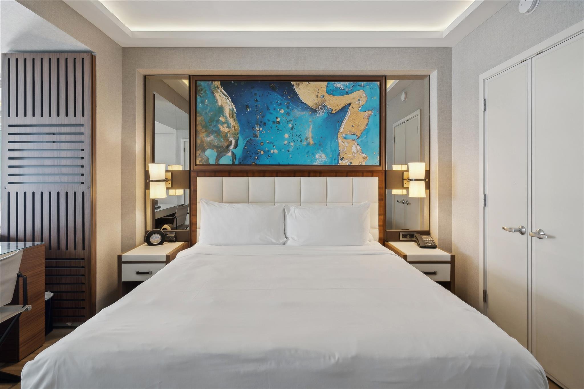 Experience the epitome of a lavish resort lifestyle at the Ocean Resort Residences, situated next to the Four Seasons and offering stunning vistas of the beachfront. Unit H1712 features a spacious south/east facing studio layout, elegantly furnished by "Arte facto," and boasts luxurious marble bathrooms, a compact kitchen equipped with Subzero and Wolf appliances, and a cozy living space with a convertible sofa bed. This seaside retreat includes amenities: fitness center, spa, heated pool, beachside chair/towel services, valet parking, daily maid service, bi-weekly laundry, in-room dining, and pet friendly. Owners have the flexibility to self- manage daily rentals or participate in the hotel's rental program. CURRENTLY CONRAD MANAGED GUARANTEED MANAGEMENT AGREEMENT OF $40,400 ANNUALLY.