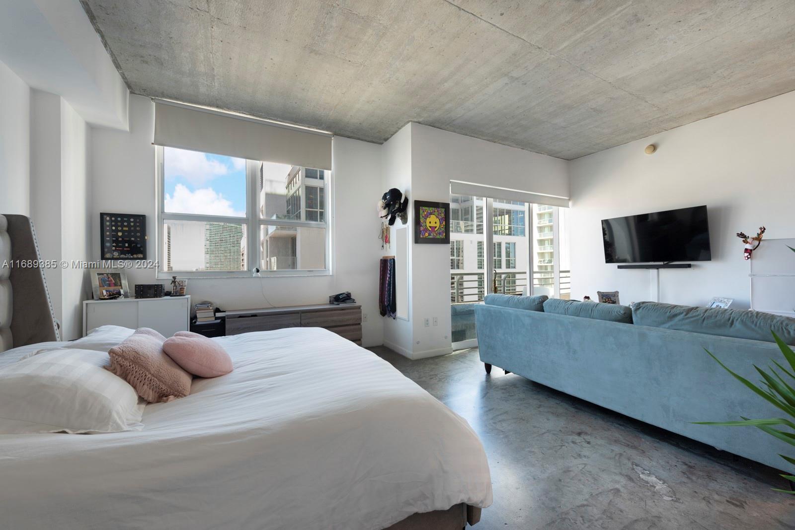 Welcome to our modern loft-style apartment in the heart of Miami. Unit features 10-foot ceiling, impact-resistant windows, and sliding glass doors that offer stunning skyline views. The finished concrete and tile flooring give a sleek and contemporary feel, while the fully-equipped kitchen with granite countertops and stainless-steel appliances make cooking a breeze. Enjoy the convenience of a private balcony and in-unit washer/dryer. Stay active in our state-of-the-art gym with a 180-degree view, or relax by the pool on sunny days. Experience luxury living at its finest in our Miami apartment. Contact us today to schedule a tour!